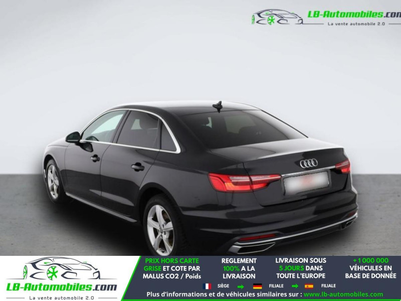 Référence : 1179022 Vos Avantages chez LB-AUTOMOBILES.com / Prix affiché TTC Livré hors carte grise / Livraison sous 10 jours dans toute la France hors 31 / Pas d?avance de frais paiement du véhicule 100% à la livraison par virement. Audi A4 Neuf remisée, Audi A4 Occasion Toulouse Beaupuy 31850, Audi A4 Véhicule sorti de réseau collaborateur, Audi A4 import, Audi A4 importateur, Audi A4 Livraison possible dans toute la France sous 5 jours, Audi A4, Audi A4 Location Option Achat, Audi A4 LLD, Audi A4 Longue Durée, Audi A4 TVA récupérable. Possibilité d'extension de garantie 12, 24,36 mois, Pour tout autres voitures import neufs ou occasions collaborateur fortement remisée, Mandataire Audi, Mandataire BMW, Mandataire Volkswagen, Mandataire Mercedes, Mandataire Peugeot Espagne, Mandataire Renault Espagne, Porsche import, Mandataire Citroën Espagne, Mandataire Seat Espagne, n'hésitez pas à nous contacter. « Sous réserve de vente préalable et erreur de saisie » Principaux équipements : - ABS - Accoudoir - Android Auto - Antidémarrage - Apple CarPlay - Assistance au freinage d'urgence - Assistance de démarrage en côte - Assistant feux de route - Bluetooth - Boîte de vitesses robotisée - Capteur de lumière - Capteur de pluie - Carnet d'entretien - Cockpit numérique - Commande vocale - Contrôle de la pression des pneus - Diesel avec filtre à particules - Direction assistée - Éclairage route non éblouissant - Écran tactile - ESP - Fermeture centralisée - Feux de jour LED - Garantie - GPS - Hayon électrique - Isofix - Jantes alliage - Kit de réparation d'urgence des pneus - Kit mains libres - Lecteur CD - Ordinateur de bord - Phares LED - Port USB - Radio DAB - Régulateur de vitesse - Rétroviseur extérieur électrique - Rétroviseur intérieur anti-éblouissement automatique - Sièges chauffants - Sièges sport - Streaming musical intégré - Support lombaire - Système antipatinage - Système d'appel d'urgence - Système de détection de la fatigue - Système de limitation de la vitesse - Système de sonorisation - Système Stop & Start - Traction avant - Tuner/radio - Véhicule non-fumeur - Verrouillage centralisé sans clé - Vitres électriques - Volant en cuir - Volant multifonction - WLAN / point d'accès Wi-Fi