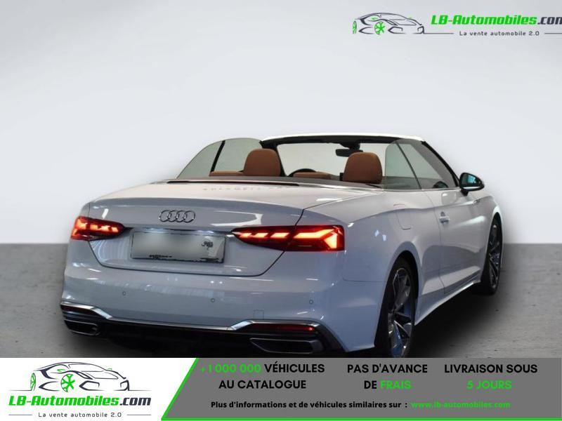 Référence : 1002109 Vos Avantages chez LB-AUTOMOBILES.com / Prix affiché TTC Livré hors carte grise / Livraison sous 10 jours dans toute la France hors 31 / Pas d?avance de frais paiement du véhicule 100% à la livraison par virement. Audi A5 Cabriolet Neuf remisée, Audi A5 Cabriolet Occasion Toulouse Beaupuy 31850, Audi A5 Cabriolet Véhicule sorti de réseau collaborateur, Audi A5 Cabriolet import, Audi A5 Cabriolet importateur, Audi A5 Cabriolet Livraison possible dans toute la France sous 5 jours, Audi A5 Cabriolet, Audi A5 Cabriolet Location Option Achat, Audi A5 Cabriolet LLD, Audi A5 Cabriolet Longue Durée, Audi A5 Cabriolet TVA récupérable. Possibilité d'extension de garantie 12, 24,36 mois, Pour tout autres voitures import neufs ou occasions collaborateur fortement remisée, Mandataire Audi, Mandataire BMW, Mandataire Volkswagen, Mandataire Mercedes, Mandataire Peugeot Espagne, Mandataire Renault Espagne, Porsche import, Mandataire Citroën Espagne, Mandataire Seat Espagne, n'hésitez pas à nous contacter. « Sous réserve de vente préalable et erreur de saisie » Principaux équipements : - ABS - Accoudoir - Airbags frontaux et latéraux et autres - Antidémarrage - Assistance au freinage d'urgence - Assistance de démarrage en côte - Assistant feux de route - Bluetooth - Boîte de vitesses robotisée - Capteur de lumière - Capteur de pluie - Carnet d'entretien - Climatisation automatique 3 zones - Cockpit numérique - Commande vocale - Contrôle automatique de la pression des pneus - Direction assistée - Éclairage adaptatif de virage - Éclairage d'ambiance - Éclairage route non éblouissant - Écran tactile - ESP - Fermeture centralisée - Feux de jour LED - Garantie - Grille de protection pour coffre - Isofix - Jantes alliage - Kit de réparation d'urgence des pneus - Lecteur CD - Ordinateur de bord - Package hiver - Pack sport - Phares LED - Pneus été - Point Isofix siège passager - Port USB - Rétroviseur extérieur électrique - Rétroviseur intérieur anti-éblouissement automatique - Siège passager rabattable - Sièges chauffants - Sièges sport - Support lombaire - Suspension sport - Système antipatinage - Système d'alarme - Système d'appel d'urgence - Système de limitation de la vitesse - Système de sonorisation - Système Stop & Start - Traction avant - Tuner/radio - Véhicule non-fumeur - Vitres électriques - Vitres teintées - Volant en cuir - Volant multifonction - Radar de recul : Arrière - Première main : Non