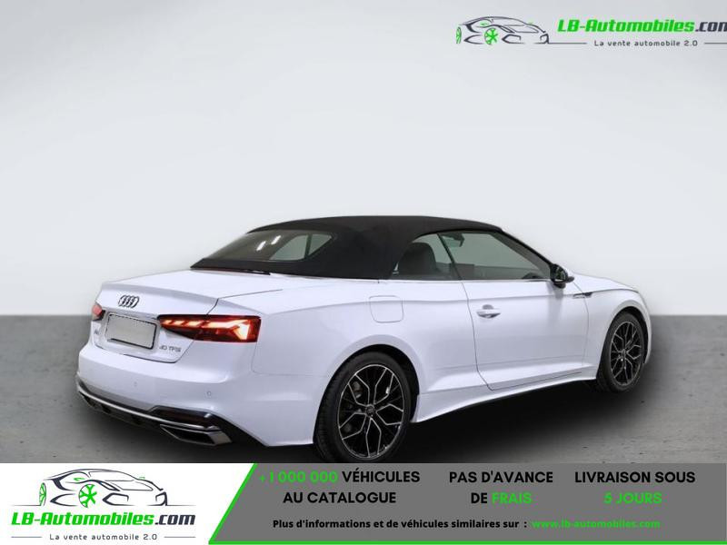 Référence : 1011148 Vos Avantages chez LB-AUTOMOBILES.com / Prix affiché TTC Livré hors carte grise / Livraison sous 10 jours dans toute la France hors 31 / Pas d?avance de frais paiement du véhicule 100% à la livraison par virement. Audi A5 Cabriolet Neuf remisée, Audi A5 Cabriolet Occasion Toulouse Beaupuy 31850, Audi A5 Cabriolet Véhicule sorti de réseau collaborateur, Audi A5 Cabriolet import, Audi A5 Cabriolet importateur, Audi A5 Cabriolet Livraison possible dans toute la France sous 5 jours, Audi A5 Cabriolet, Audi A5 Cabriolet Location Option Achat, Audi A5 Cabriolet LLD, Audi A5 Cabriolet Longue Durée, Audi A5 Cabriolet TVA récupérable. Possibilité d'extension de garantie 12, 24,36 mois, Pour tout autres voitures import neufs ou occasions collaborateur fortement remisée, Mandataire Audi, Mandataire BMW, Mandataire Volkswagen, Mandataire Mercedes, Mandataire Peugeot Espagne, Mandataire Renault Espagne, Porsche import, Mandataire Citroën Espagne, Mandataire Seat Espagne, n'hésitez pas à nous contacter. « Sous réserve de vente préalable et erreur de saisie » Principaux équipements : - ABS - Accoudoir - Airbags frontaux et latéraux et autres - Android Auto - Antidémarrage - Apple CarPlay - Assistance au freinage d'urgence - Assistance de démarrage en côte - Assistant d'angle mort - Assistant feux de route - Avertisseur de franchissement de ligne - Bluetooth - Boîte de vitesses robotisée - Carnet d'entretien - Chargement par induction pour smartphones - Climatisation automatique 3 zones - Cockpit numérique - Contrôle de la pression des pneus - Direction assistée - Éclairage adaptatif - Éclairage route non éblouissant - Écran tactile - Fermeture centralisée - Feux de jour LED - Garantie - GPS - Hayon électrique - Isofix - Jantes alliage - Kit mains libres - Ordinateur de bord - Phares LED - Port USB - Radio DAB - Régulateur de vitesse adaptatif - Rétroviseur extérieur électrique - Rétroviseur intérieur anti-éblouissement automatique - Sièges chauffants - Sièges massants - Sièges sport - Streaming musical intégré - Support lombaire - Suspension sport - Système d'appel d'urgence - Système d'avertissement de la distance - Système de limitation de la vitesse - Système de reconnaissance des panneaux de signalisation - Système Stop & Start - Traction avant - Tuner/radio - Véhicule non-fumeur - Volant en cuir - Volant multifonction - Radar de recul : Appareil photo, Arrière, Avant - Première main : Oui