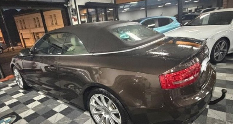Audi A5 CABRIOLET 3.0 TDI Quattro (176kW) S-tronic, première mise en circulation 26/04/2011. OPTIONS ET ÉQUIPEMENTS : Audio - Télécommunications : - Bluetooth - Changeur-CD à/au/dans/en Boite à gants - GPS - Interface universelle Bluetooth - Sound-System DSP / Audi Sound-System Conduite : - Allumage automatique des feux - Contrôle dynamique de stabilité (ESP) - Détecteur de pluie - Limiteur de vitesse - Régulateur de vitesse - Stop & start - Système Start/Stop Couleur : - Peinture métallisée Extérieur : - Aide au stationnement AV et AR, visuel (APS Plus) - Carrosserie: 2 portes - Feux AR. LED - Filtre à particules (FAP) - Jantes 20 pouces - Jantes alliage léger - Lave-phares (Lave-projecteurs) - Pack brillance - Phares à LED - Radar arrière de détection d’obstacles - Rétroviseur ext couleur caisse - Rétroviseurs rabattables - Rétroviseurs électriques - Toit ouvrant électrique - éclairage diurne Intérieur : - Accoudoir central - Accoudoir central AV - Chauffage zone tête - Climatisation automatique - Climatisation automatique Confort 3 zones - Colonne de direction (Volant de direction) Mécanique Réglage de hauteur / profondeur - Combiné d'instruments avec Montre - Direction assistée - Direction assistée à commande électronique - Fermeture centralisée - Indicateur de température Ext. - Intérieur cuir - Lève-vitre électrique AV + AR - Miroir de courtoisie éclairé(e) - Pack Eclairage/Vision/Lumière - Rétroviseur Int avec fonction électrochrome - Siège chauffant AV - Sièges AV à réglages électriques - Système d'information du conducteur (FIS) avec écran couleur - Verrouillage automatiques des portes en roulant - Verrouillage centralisé avec Cde à distance - Vitrage athermique teinté vert - Vitres électriques - Volant cuir Pack : - Accès-/démarrage sans clé Advanced Key (clé confort) - Dispositif d'attelage à boule amovible - Mode de transmission Traction intégrale permanente - Multi-Media-Interface MMI Navigation Plus - Norme de dépollution Euro 5 - Rétroviseur ext à réglages électriques, dégivrant et rabattable - Siège électriques - Sièges confort AV climatisé - Système d'assistance de conduite: Assistance au démarrage (hold assist) - Volant multifonctions - Volant réglable Sellerie : - Sellerie : Cuir Milano Sécurité : - Abs - Aide au freinage d’urgence - Airbag conducteur et passager - Airbag lat AV - Airbags frontaux - Alarme - Antidémarrage (électronique) - Contrôle pression des pneus - ESP - Phares antibrouillard - Projecteurs antibrouillard intégré(e) - Roue de secours galette - Supports Isofix pour siège enfant - Témoin contrôle pneumatiques Autres équipements et informations : - Afficheur monochrome (6,5 Pouces) - Aide à l'accès Easy-Entry - Alarme antivol + Protection d'habitacle / protection anti-soulèvement/ anti-remorquage - Boîte de vitesses 7 rapports - Boîte automatique à double embrayage S-tronic - Capote insonorisante - Commande de capote entièrement automatique - Dossier AR fractionné - Equipement Int. avec inserts finition Bois Laurel, marron muscade - Gicleurs de lave-vitre chauffant(e)/dégivrant(e) - Kilométrage garantie - Moteur 3,0 litre(s) - 176 kW V6 24V TDI - Projecteurs au Xénon Plus (Feux de croisement et de route) - Protecteurs de bas de marche avec revêtement aluminium - Reprise possible - Rétroviseur ext Asphérique, droit - Rétroviseur ext Asphérique, gauche - Support à boissons AR - Support à boissons au Console centrale - Système d'antiblocage de frein (ABS) - Système d'assistance de conduite: Régulateur de vitesse adaptatif (Adaptive Cruise Control) avec régulateur de distance - Système d'assistance de conduite: assistant changement de file et maintien de trajectoire (Side Assist et Lane Assist) - Volant de direction (Sport/cuir - 3 branches) avec multifonctions