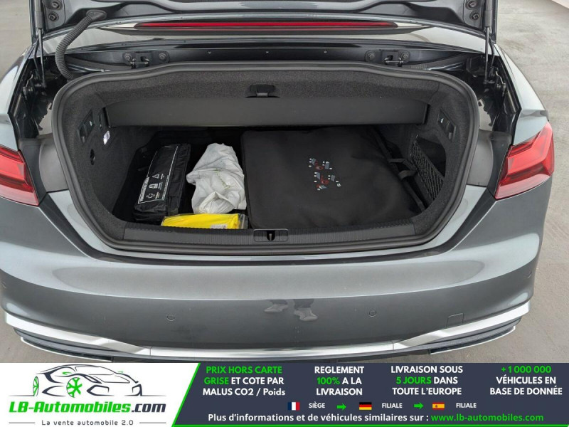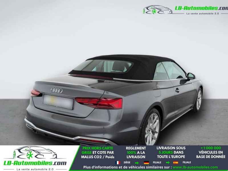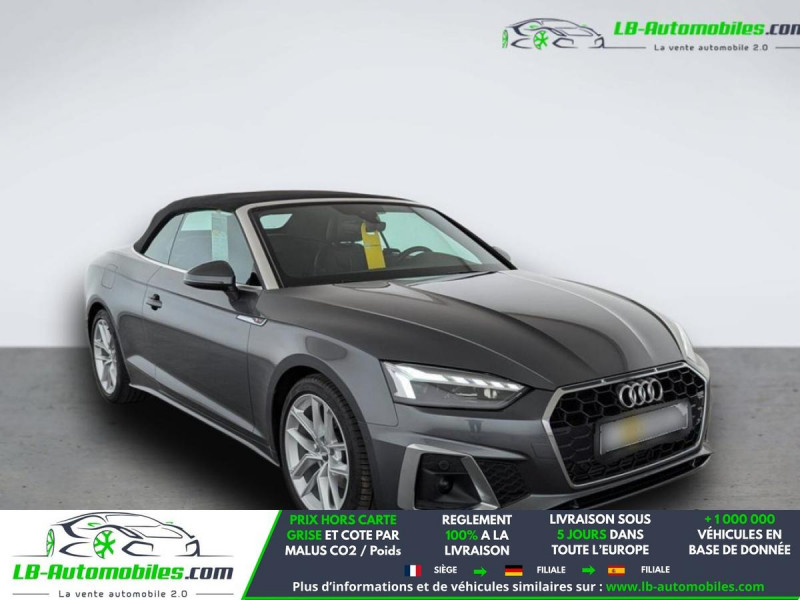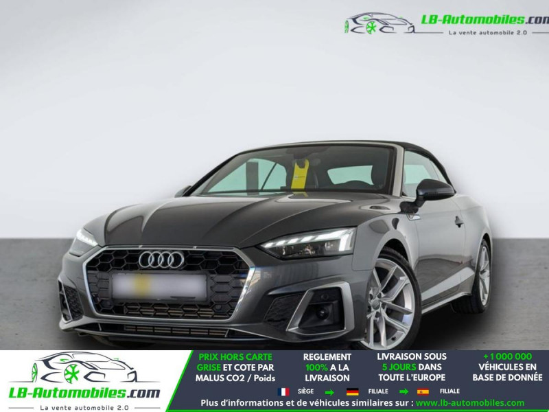 Référence : 1179642 Vos Avantages chez LB-AUTOMOBILES.com / Prix affiché TTC Livré hors carte grise / Livraison sous 10 jours dans toute la France hors 31 / Pas d?avance de frais paiement du véhicule 100% à la livraison par virement. Audi A5 Cabriolet Neuf remisée, Audi A5 Cabriolet Occasion Toulouse Beaupuy 31850, Audi A5 Cabriolet Véhicule sorti de réseau collaborateur, Audi A5 Cabriolet import, Audi A5 Cabriolet importateur, Audi A5 Cabriolet Livraison possible dans toute la France sous 5 jours, Audi A5 Cabriolet, Audi A5 Cabriolet Location Option Achat, Audi A5 Cabriolet LLD, Audi A5 Cabriolet Longue Durée, Audi A5 Cabriolet TVA récupérable. Possibilité d'extension de garantie 12, 24,36 mois, Pour tout autres voitures import neufs ou occasions collaborateur fortement remisée, Mandataire Audi, Mandataire BMW, Mandataire Volkswagen, Mandataire Mercedes, Mandataire Peugeot Espagne, Mandataire Renault Espagne, Porsche import, Mandataire Citroën Espagne, Mandataire Seat Espagne, n'hésitez pas à nous contacter. « Sous réserve de vente préalable et erreur de saisie » Principaux équipements : - ABS - Accoudoir - Antidémarrage - Assistance de démarrage en côte - Bluetooth - Boîte de vitesses robotisée - Capteur de lumière - Capteur de pluie - Cockpit numérique - Contrôle de la pression des pneus - Diesel avec filtre à particules - Direction assistée - Écran tactile - ESP - Fermeture centralisée - Feux de jour LED - Garantie - GPS - Hayon électrique - Isofix - Jantes alliage - Kit de réparation d'urgence des pneus - Kit mains libres - Ordinateur de bord - Package hiver - Pack sport - Phares LED - Pneus été - Port USB - Radio DAB - Réglage électrique des sièges - Régulateur de vitesse - Rétroviseur extérieur électrique - Rétroviseur intérieur anti-éblouissement automatique - Rétroviseurs extérieurs rabattables électriquement - Sièges chauffants - Sièges massants - Sièges sport - Streaming musical intégré - Support lombaire - Suspension sport - Système antipatinage - Système de limitation de la vitesse - Système de sonorisation - Système Stop & Start - Traction avant - Tuner/radio - Véhicule non-fumeur - Vitres électriques - Volant en cuir - Volant multifonction