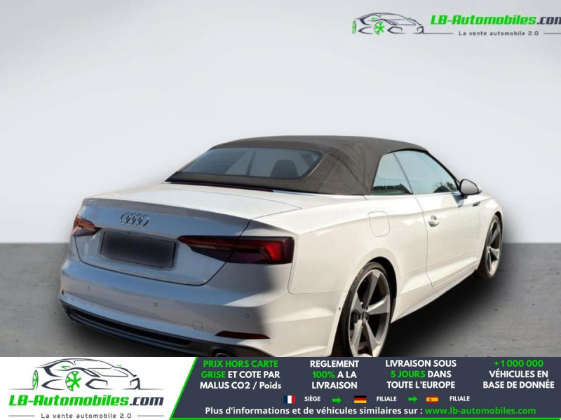 Référence : 1189977 Vos Avantages chez LB-AUTOMOBILES.com / Prix affiché TTC Livré hors carte grise / Livraison sous 10 jours dans toute la France hors 31 / Pas d?avance de frais paiement du véhicule 100% à la livraison par virement. Audi A5 Cabriolet Neuf remisée, Audi A5 Cabriolet Occasion Toulouse Beaupuy 31850, Audi A5 Cabriolet Véhicule sorti de réseau collaborateur, Audi A5 Cabriolet import, Audi A5 Cabriolet importateur, Audi A5 Cabriolet Livraison possible dans toute la France sous 5 jours, Audi A5 Cabriolet, Audi A5 Cabriolet Location Option Achat, Audi A5 Cabriolet LLD, Audi A5 Cabriolet Longue Durée, Audi A5 Cabriolet TVA récupérable. Possibilité d'extension de garantie 12, 24,36 mois, Pour tout autres voitures import neufs ou occasions collaborateur fortement remisée, Mandataire Audi, Mandataire BMW, Mandataire Volkswagen, Mandataire Mercedes, Mandataire Peugeot Espagne, Mandataire Renault Espagne, Porsche import, Mandataire Citroën Espagne, Mandataire Seat Espagne, n'hésitez pas à nous contacter. « Sous réserve de vente préalable et erreur de saisie » Principaux équipements : - ABS - Accoudoir - Android Auto - Antidémarrage - Apple CarPlay - Assistance au freinage d'urgence - Assistance de démarrage en côte - Assistant d'angle mort - Assistant de man?uvre avec remorque - Assistant de sortie de stationnement - Assistant feux de route - Attache remorque pivotante - Avertisseur de franchissement de ligne - Bluetooth - Boîte de vitesses robotisée - Capteur de lumière - Capteur de pluie - Carnet d'entretien - Chargement par induction pour smartphones - Cockpit numérique - Commande vocale - Contrôle de la pression des pneus - Direction assistée - Éclairage adaptatif de virage - Éclairage d'ambiance - Éclairage route non éblouissant - Écran tactile - ESP - Fermeture centralisée - Feux de jour - Garantie - GPS - Grille de protection pour coffre - Hayon électrique - Isofix - Jantes alliage - Kit mains libres - Lecteur CD - Ordinateur de bord - Package hiver - Pack sport - Phare antibrouillard - Phares LED - Pneus été - Point Isofix siège passager - Port USB - Radio DAB - Réglage électrique des sièges - Réglage électrique des sièges avec fonction mémoire - Régulateur de vitesse adaptatif - Rétroviseur extérieur électrique - Rétroviseur intérieur anti-éblouissement automatique - Rétroviseurs extérieurs rabattables électriquement - Révision complète - Sièges arrières chauffants électriques - Sièges chauffants - Sièges massants - Sièges sport - Streaming musical intégré - Support lombaire - Suspension adaptative - Suspension sport - Système antipatinage - Système d'alarme - Système d'appel d'urgence - Système d'avertissement de la distance - Système de détection de la fatigue - Système de limitation de la vitesse - Système de reconnaissance des panneaux de signalisation - Système de sonorisation - Système Stop & Start - Traction avant - Tuner/radio - Véhicule non-fumeur - Verrouillage centralisé sans clé - Vitres électriques - Volant en cuir - Volant multifonction - WLAN / point d'accès Wi-Fi