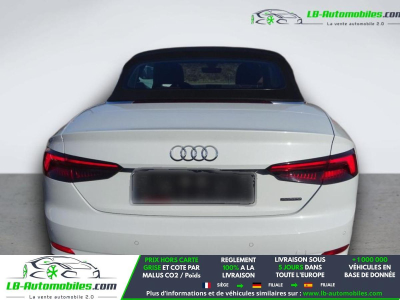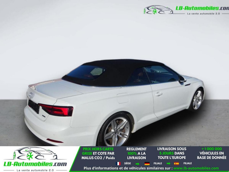 Référence : 1209752 Vos Avantages chez LB-AUTOMOBILES.com / Prix affiché TTC Livré hors carte grise / Livraison sous 10 jours dans toute la France hors 31 / Pas d?avance de frais paiement du véhicule 100% à la livraison par virement. Audi A5 Cabriolet Neuf remisée, Audi A5 Cabriolet Occasion Toulouse Beaupuy 31850, Audi A5 Cabriolet Véhicule sorti de réseau collaborateur, Audi A5 Cabriolet import, Audi A5 Cabriolet importateur, Audi A5 Cabriolet Livraison possible dans toute la France sous 5 jours, Audi A5 Cabriolet, Audi A5 Cabriolet Location Option Achat, Audi A5 Cabriolet LLD, Audi A5 Cabriolet Longue Durée, Audi A5 Cabriolet TVA récupérable. Possibilité d'extension de garantie 12, 24,36 mois, Pour tout autres voitures import neufs ou occasions collaborateur fortement remisée, Mandataire Audi, Mandataire BMW, Mandataire Volkswagen, Mandataire Mercedes, Mandataire Peugeot Espagne, Mandataire Renault Espagne, Porsche import, Mandataire Citroën Espagne, Mandataire Seat Espagne, n'hésitez pas à nous contacter. « Sous réserve de vente préalable et erreur de saisie » Principaux équipements : - 4x4 - ABS - Accoudoir - Antidémarrage - Apple CarPlay - Assistance au freinage d'urgence - Assistance de démarrage en côte - Assistant feux de route - Bluetooth - Capteur de pluie - Carnet d'entretien - Commande vocale - Contrôle de la pression des pneus - Diesel avec filtre à particules - Direction assistée - Éclairage adaptatif de virage - Éclairage d'ambiance - ESP - Fermeture centralisée - Feux de jour LED - GPS - Hayon électrique - Isofix - Jantes alliage - Kit mains libres - Lecteur CD - Ordinateur de bord - Phare antibrouillard - Phares LED - Pneus toutes saisons - Port USB - Radio DAB - Régulateur de vitesse - Rétroviseur extérieur électrique - Rétroviseur intérieur anti-éblouissement automatique - Rétroviseurs extérieurs rabattables électriquement - Sièges chauffants - Sièges sport - Support lombaire - Système antipatinage - Système d'appel d'urgence - Système d'avertissement de la distance - Système de détection de la fatigue - Système de sonorisation - Système Stop & Start - Véhicule non-fumeur - Vitres électriques - Vitres teintées - Volant en cuir - Volant multifonction - WLAN / point d'accès Wi-Fi