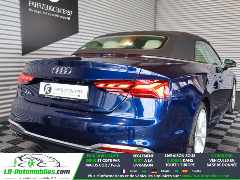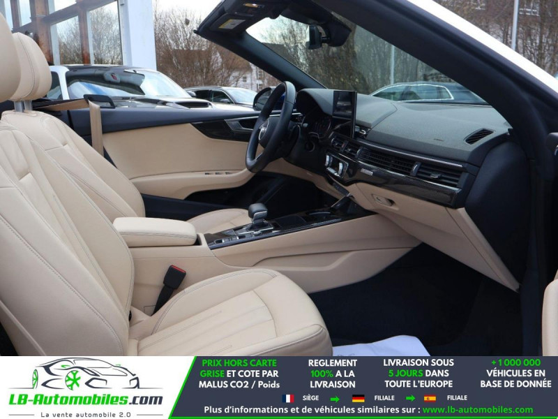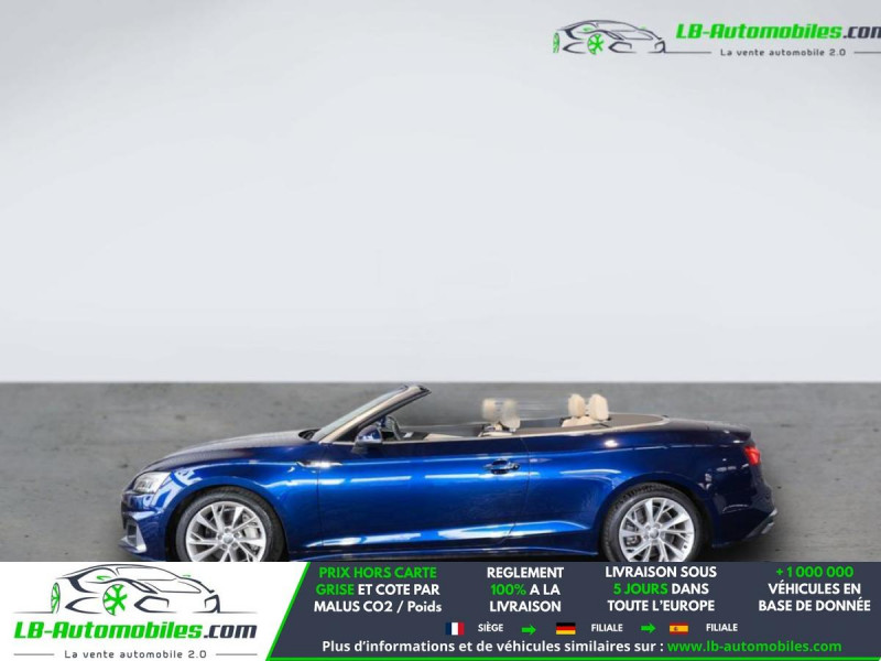 Référence : 1189994 Vos Avantages chez LB-AUTOMOBILES.com / Prix affiché TTC Livré hors carte grise / Livraison sous 10 jours dans toute la France hors 31 / Pas d?avance de frais paiement du véhicule 100% à la livraison par virement. Audi A5 Cabriolet Neuf remisée, Audi A5 Cabriolet Occasion Toulouse Beaupuy 31850, Audi A5 Cabriolet Véhicule sorti de réseau collaborateur, Audi A5 Cabriolet import, Audi A5 Cabriolet importateur, Audi A5 Cabriolet Livraison possible dans toute la France sous 5 jours, Audi A5 Cabriolet, Audi A5 Cabriolet Location Option Achat, Audi A5 Cabriolet LLD, Audi A5 Cabriolet Longue Durée, Audi A5 Cabriolet TVA récupérable. Possibilité d'extension de garantie 12, 24,36 mois, Pour tout autres voitures import neufs ou occasions collaborateur fortement remisée, Mandataire Audi, Mandataire BMW, Mandataire Volkswagen, Mandataire Mercedes, Mandataire Peugeot Espagne, Mandataire Renault Espagne, Porsche import, Mandataire Citroën Espagne, Mandataire Seat Espagne, n'hésitez pas à nous contacter. « Sous réserve de vente préalable et erreur de saisie » Principaux équipements : - 4x4 - ABS - Accoudoir - Android Auto - Antidémarrage - Apple CarPlay - Assistance au freinage d'urgence - Assistance de démarrage en côte - Assistant d'angle mort - Assistant feux de route - Avertisseur de franchissement de ligne - Bluetooth - Boîte de vitesses robotisée - Capteur de lumière - Capteur de pluie - Carnet d'entretien - Chargement par induction pour smartphones - Commande vocale - Contrôle de la pression des pneus - Direction assistée - Éclairage adaptatif de virage - Éclairage d'ambiance - Éclairage route non éblouissant - Écran tactile - ESP - Fermeture centralisée - Feux de jour LED - Garantie - GPS - Hayon électrique - Isofix - Jantes alliage - Kit de réparation d'urgence des pneus - Kit mains libres - Ordinateur de bord - Pack sport - Phares LED - Pneus été - Port USB - Réglage électrique des sièges - Réglage électrique des sièges avec fonction mémoire - Régulateur de vitesse - Rétroviseur extérieur électrique - Rétroviseur intérieur anti-éblouissement automatique - Rétroviseurs extérieurs rabattables électriquement - Siège passager rabattable - Sièges chauffants - Support lombaire - Suspension adaptative - Système antipatinage - Système d'alarme - Système d'appel d'urgence - Système d'avertissement de la distance - Système de détection de la fatigue - Système de limitation de la vitesse - Système de reconnaissance des panneaux de signalisation - Système de sonorisation - Système Stop & Start - Toit pliant - Trappe à skis - Tuner/radio - Véhicule non-fumeur - Verrouillage centralisé sans clé - Vitres électriques - Vitres teintées - Volant chauffant - Volant en cuir - Volant multifonction