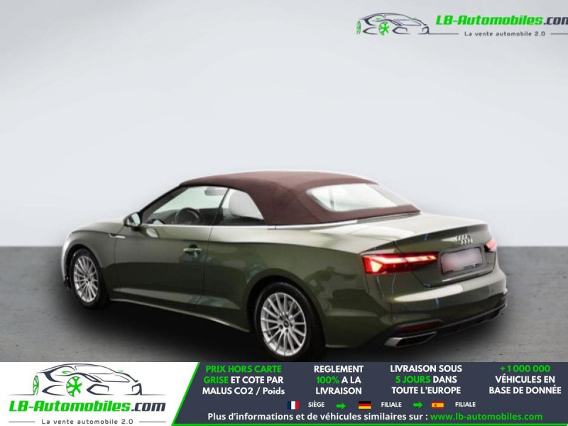 Référence : 1182472 Vos Avantages chez LB-AUTOMOBILES.com / Prix affiché TTC Livré hors carte grise / Livraison sous 10 jours dans toute la France hors 31 / Pas d?avance de frais paiement du véhicule 100% à la livraison par virement. Audi A5 Cabriolet Neuf remisée, Audi A5 Cabriolet Occasion Toulouse Beaupuy 31850, Audi A5 Cabriolet Véhicule sorti de réseau collaborateur, Audi A5 Cabriolet import, Audi A5 Cabriolet importateur, Audi A5 Cabriolet Livraison possible dans toute la France sous 5 jours, Audi A5 Cabriolet, Audi A5 Cabriolet Location Option Achat, Audi A5 Cabriolet LLD, Audi A5 Cabriolet Longue Durée, Audi A5 Cabriolet TVA récupérable. Possibilité d'extension de garantie 12, 24,36 mois, Pour tout autres voitures import neufs ou occasions collaborateur fortement remisée, Mandataire Audi, Mandataire BMW, Mandataire Volkswagen, Mandataire Mercedes, Mandataire Peugeot Espagne, Mandataire Renault Espagne, Porsche import, Mandataire Citroën Espagne, Mandataire Seat Espagne, n'hésitez pas à nous contacter. « Sous réserve de vente préalable et erreur de saisie » Principaux équipements : - 4x4 - ABS - Accoudoir - Antidémarrage - Assistance au freinage d'urgence - Assistance de démarrage en côte - Bluetooth - Boîte de vitesses robotisée - Contrôle de la pression des pneus - Diesel avec filtre à particules - Direction assistée - Éclairage d'ambiance - Écran tactile - ESP - Fermeture centralisée - Feux de jour LED - Garantie - GPS - Hayon électrique - Isofix - Jantes alliage - Kit mains libres - Ordinateur de bord - Pack fumeur - Phares LED - Pneus été - Radio DAB - Réglage électrique des sièges - Régulateur de vitesse - Rétroviseur extérieur électrique - Rétroviseur intérieur anti-éblouissement automatique - Sièges chauffants - Sièges sport - Support lombaire - Système antipatinage - Système d'alarme - Système d'appel d'urgence - Système d'avertissement de la distance - Système de limitation de la vitesse - Système de sonorisation - Système Stop & Start - Tuner/radio - Vitres électriques - Volant en cuir - Volant multifonction
