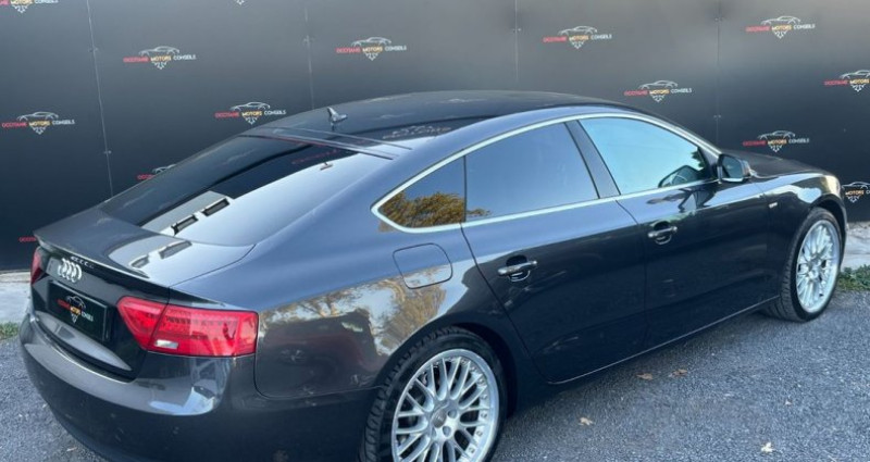 Audi A5 SPORTBACK 3.0 TDI 245ch quattro S-Line S-Tronic, première mise en circulation 08/12/2011. OPTIONS ET ÉQUIPEMENTS : Audio - Télécommunications : - Bluetooth - GPS Conduite : - Allumage automatique des feux - Audi Drive Select - Détecteur de pluie - Limiteur de vitesse - Régulateur de vitesse - Stop & start Extérieur : - Filtre à particule - Jantes 18 pouces - Pack Extérieur S line - Radar arrière de détection d’obstacles - Rétroviseurs électriques - Toit ouvrant électrique Intérieur : - Accoudoir central - Climatisation automatique - Direction assistée - Fermeture centralisée - Ordinateur de bord - Siège chauffant AV - Sièges AV à réglages électriques - Sièges réglables en hauteur - Verrouillage automatiques des portes en roulant - Vitre surteintées - Volant cuir Pack : - Anti-démarrage Sécurité : - Abs - Airbags frontaux - Anti-patinage - Contrôle pression des pneus - ESP - Fixation ISOFIX - Phares antibrouillard - Radar avant de détection d’obstacles Autres équipements et informations : - Boîte de vitesses 7 rapports - Boîte automatique à double embrayage S-tronic - FRAIS DE DOSSIER ET DE MISE A DISPOSITION DE 349€ - Kilométrage garantie - Moteur 3,0 litre(s) - 180 kW V6 24V TDI - Reprise possible - Sellerie : Alcantara / Cuir avec logo en relief dans accoudoirs sièges AV - Volant de direction (Sport/cuir - 3 branches) avec multifonctions et palettes changement vitesse