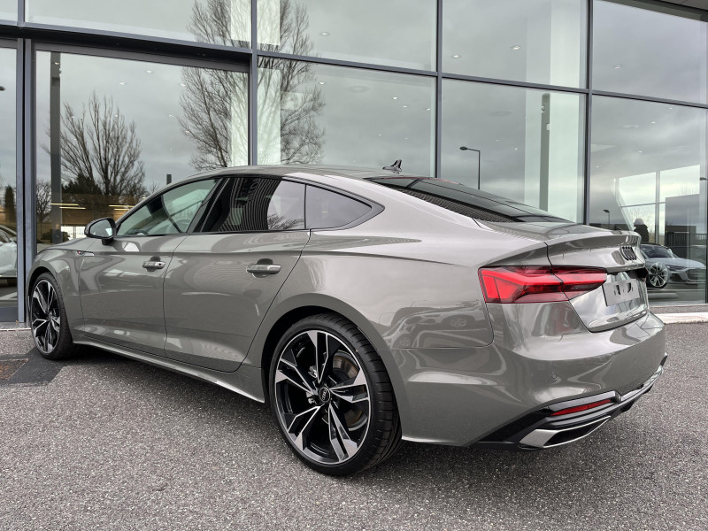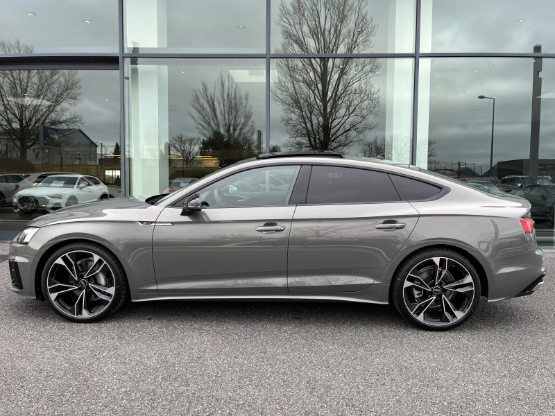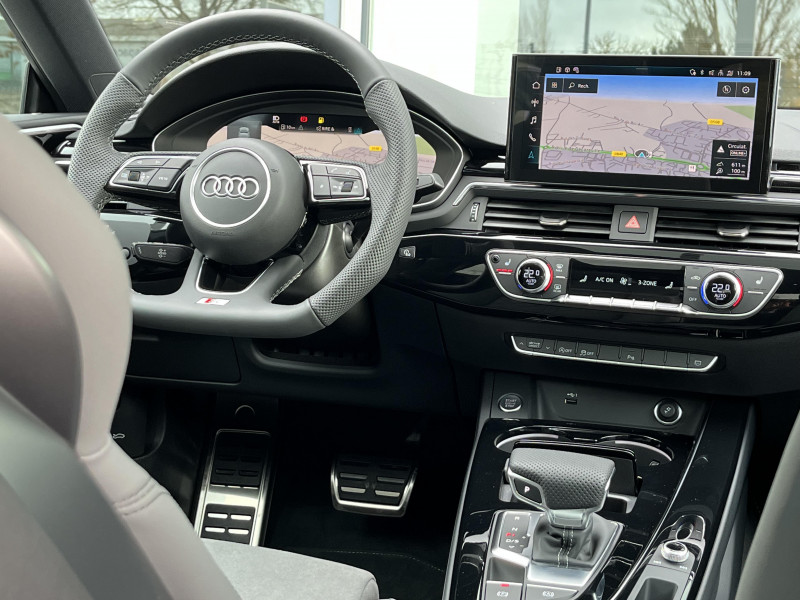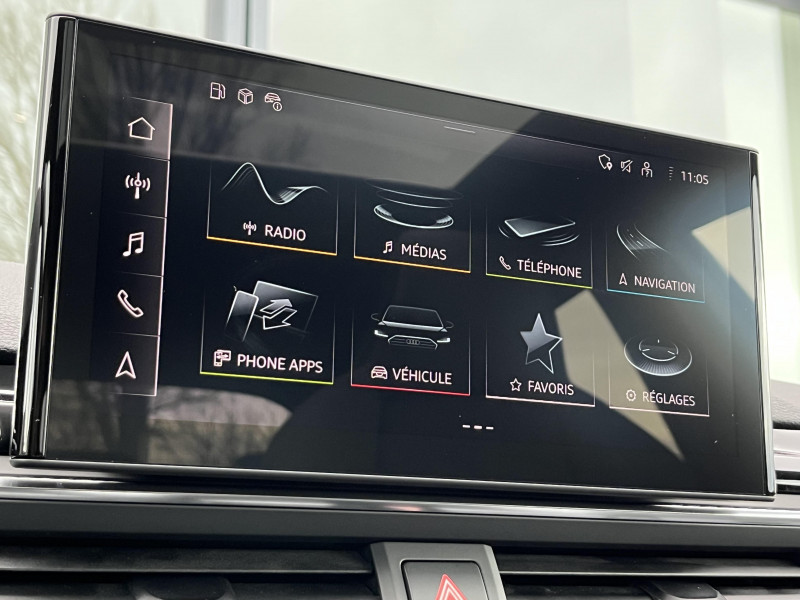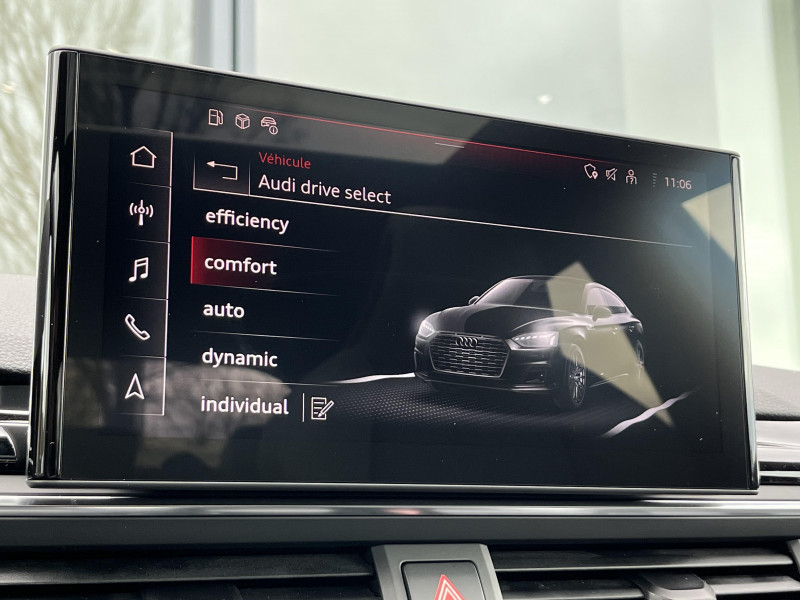 Applications décoratives en Aluminium brossé mat / Audi Connect avec carte SIM intégrée (e-SIM) et licence d'utilisation pour 3 ans comprend les fonctions suivantes: Points d?intérêt en ligne - Informations routières en ligne - Informations sur les dangers - Informations sur les panneaux de circulation en ligne - Informations météorologiques - Hotspot WiFi - Navigation avec Google Earth? - Recherche en ligne de destinations - Commande vocale en ligne - Représentation des villes ultra-détaillée en 3D - On-street Parking - Radio en ligne - Radio hybride - Profils personnels / Audi Virtual Cockpit Plus / Ceintures de sécurité, automatiques à 3 points pour tous les sièges, contrôle de port de ceinture AV / Eléments de l'habitacle en simili-cuir / Feux AR à LED, clignotants, feux stop, feux AR, feux de recul et feux de plaque AR à LED / Frein de stationnement électromécanique / Jantes en aluminium coulé Audi Sport en style étoile à 10 branches, polies brillant 8,5J x 19'', pneus 255/35 R 19 / Moulures de seuil avec insert en aluminium AV, éclairées, avec inscription S / Navigation MMI plus avec MMI touch / Pack Brillance Extérieur / Phares AV à LED (feux de croisement, feux de route, feux diurnes et feux de position LED, clignotants à ampoule, avec éclairage tout-temps) / Projecteurs Matrix LED et feux AR à LED avec clignotants dynamiques / Préparation pour crochet d'attelage / Préparation pour l'activation de la fonction de navigation / Rétroviseur intérieur sans encadrement jour/nuit automatique / Rétroviseurs extérieurs réglables et escamotables électriquement, jour/nuit automatique, dégivrants des deux côtés et buses de lave-glaces dégivrantes / Volant en cuir style 3 branches avec multifonctions / Volant Sport contour en cuir style 3 branches, aplati en bas, avec multifonction plus avec palettes de changement de vitesse et avec logo S line et poignées de volant en cuir perforé / 8 HP passifs / Accoudoir central AV confort avec inclinaison réglable et coulissant en longueur / Airbags latéraux à l'AV et système d'airbags de tête / Anti-patinage ASR pour une motricité optimale, empêche le patinage des roues motrices / Appel d'urgence et service Audi connect avec commande du véhicule / Appui lombaire à 4 axes pour les sièges AV: réglages électrique, horizontal et vertical / Appuie-tête à l'AV sans réglages de distance de l'appuie-tête / Audi Drive Select Permet de sélectionner différents modes de conduite: Efficiency, Confort, Dynamic, Lift, Individual. Les systèmes et équipements du véhicules s'adaptent suivant le mode sélectionné / Audi Hold Assist / Audi Parking System Plus / Audi phone box light / Audi Pre Sense city / Audi smartphone interface (Apple CarPlay ou Google Android Auto) / Audi Sound System / Avertissement de sortie de voie / Banquette AR 3 places avec appuie-tête en L réglables en hauteur / Blocage électronique de différentiel EDS / Ciel de pavillon en tissu noir / Clé Audi connect / Clé confort (Keyless entry) / Coffre à ouverture et fermeture électriques / Colonne de direction de sécurité / Commande de désactivation de l'airbag passager AV / Contrôle électronique de stabilisation (ESC) / Coques de rétroviseurs noir brillant / Câbles de recharge pour téléphone portable, compatibles iPhone et Android / Diffuseur avec finition symétrique des sorties d?échappement de style en chrome à gauche et à droite / Direction assistée électromécanique / Détecteur de pluie et de luminosité / Eclairage intérieur Module de pavillon avant et arrière incluant spots de lecture, commande capacitive à l?avant, éclairage d?ambiance de la console centrale, boîte à gants éclairée, éclairage passif des portières, éclairage du coffre à gauche. / Ecrous de roues antivol / Finition extérieure S Line / Fixation pour sièges enfants ISOFIX et Top Tether pour les places AR extérieures / Identification du modèle selon le nouveau marquage de puissance / Interface Bluetooth / Interfaces de charge USB pour les passagers AR / Keyless Go: démarrage et arrêt du moteur par touche moteur Start/Stop sur la console centrale / Limitation de la vitesse maximale à 210 km/h / MMI Radio Plus - Écran couleur 10,1 pouces (1 540 × 720) incluant commande MMI touch - Diversité de phases AM/FM - Volume sonore asservi à la vitesse - Système de dialogue vocal avec langage naturel pour commander les fonctions d?infotainment et fonctions du véhicule / Pédalier et repose-pieds en acier inoxydable / Recommandation de repos / Réception radio numérique (DAB) ajoute à l'offre de radios analogiques la réception de stations numériques selon le standard DAB, incluant DAB+ et DMB Audio / Récupération Permet de réaliser des économies de carburant en récupérant l'énergie de décélération et de freinage / Régulateur de vitesse avec limitateur de vitesse réglable / S tronic, boîte séquentielle 7 vitesses à double embrayage avec commande électrohydraulique / Sièges AV avec fonction massage / Suppression de la limitation de vitesse à 210 km/h / Surfaces d?accentuation façon verre en noir pour le tableau de bord, les caches des rebords de portière et l?insert de la console centrale / Système d'information du conducteur (affichage d'un grand nombre d'informations utiles sur un écran TFT monochrome de 5") / Système de lecture des panneaux de signalisation par caméra / Sécurité enfants / Tapis complémentaires AV/AR / Technologie hybride léger - Mild-Hybrid / Tire Mobility System Compresseur et produit de colmatage en cas de crevaison / Vide-poches dans les contre-portes à l'AV et à l'AR / Vitrage Privacy (vitres surteintées)