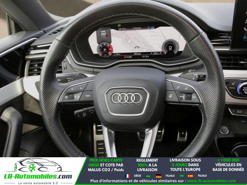 Référence : 1190069 Vos Avantages chez LB-AUTOMOBILES.com / Prix affiché TTC Livré hors carte grise / Livraison sous 10 jours dans toute la France hors 31 / Pas d?avance de frais paiement du véhicule 100% à la livraison par virement. Audi A5 Sportback Neuf remisée, Audi A5 Sportback Occasion Toulouse Beaupuy 31850, Audi A5 Sportback Véhicule sorti de réseau collaborateur, Audi A5 Sportback import, Audi A5 Sportback importateur, Audi A5 Sportback Livraison possible dans toute la France sous 5 jours, Audi A5 Sportback, Audi A5 Sportback Location Option Achat, Audi A5 Sportback LLD, Audi A5 Sportback Longue Durée, Audi A5 Sportback TVA récupérable. Possibilité d'extension de garantie 12, 24,36 mois, Pour tout autres voitures import neufs ou occasions collaborateur fortement remisée, Mandataire Audi, Mandataire BMW, Mandataire Volkswagen, Mandataire Mercedes, Mandataire Peugeot Espagne, Mandataire Renault Espagne, Porsche import, Mandataire Citroën Espagne, Mandataire Seat Espagne, n'hésitez pas à nous contacter. « Sous réserve de vente préalable et erreur de saisie » Principaux équipements : - 4x4 - ABS - Accoudoir - Affichage tête haute - Android Auto - Antidémarrage - Apple CarPlay - Assistance au freinage d'urgence - Assistant d'angle mort - Assistant feux de route - Attache remorque pivotante - Avertisseur de franchissement de ligne - Bluetooth - Carnet d'entretien - Chargement par induction pour smartphones - Chauffage auxiliaire - Cockpit numérique - Contrôle de la pression des pneus - Direction assistée - Éclairage d'ambiance - Éclairage route non éblouissant - ESP - Fermeture centralisée - Feux de jour LED - GPS - Hayon électrique - Isofix - Jantes alliage - Kit mains libres - Ordinateur de bord - Package hiver - Pack sport - Phares LED - Port USB - Radio DAB - Régulateur de vitesse adaptatif - Rétroviseur extérieur électrique - Rétroviseur intérieur anti-éblouissement automatique - Sièges arrières chauffants électriques - Sièges chauffants - Sièges sport - Streaming musical intégré - Suspension sport - Système antipatinage - Système d'avertissement de la distance - Système de limitation de la vitesse - Système de reconnaissance des panneaux de signalisation - Système de sonorisation - Système Stop & Start - Tuner/radio - Véhicule non-fumeur - Vitre chauffante - Vitres teintées - Volant chauffant - Volant en cuir - Volant multifonction