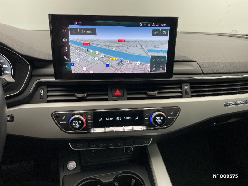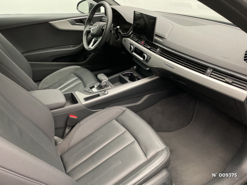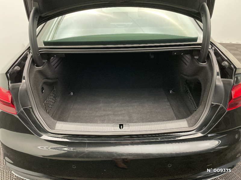 Audi Drive Select Permet de sélectionner différents modes de conduite: Efficiency, Confort, Dynamic, Lift, Individual. Les systèmes et équipements du véhicules s'adaptent suivant le mode sélectionné / Audi Parking System: Signal acoustique d'aide au stationnement AR / Audi phone box light / Audi Pre Sense city / Audi smartphone interface (Apple CarPlay ou Google Android Auto) / Accoudoir central AV confort avec inclinaison réglable et coulissant en longueur / Airbags latéraux à l'AV et système d'airbags de tête / Anti-patinage ASR pour une motricité optimale, empêche le patinage des roues motrices / Appel d'urgence et service Audi connect avec commande du véhicule / Applications décoratives en Aluminium Ellipse Argent / Limitation de la vitesse maximale à 210 km/h / MMI Radio Plus / Moulures de seuil avec insert en aluminium dans les ouvertures des portières AV / Pack Audi Smartphone interface / Pack Brillance Extérieur / Pack Eclairage / Pack Rangement et Coffre / Phares AV à LED (feux de croisement, feux de route, feux diurnes et feux de position LED, clignotants à ampoule, avec éclairage tout-temps) / Pneus à roulage optimisé (faible résistance au roulement), 245/40 R 18 - Vmax = 210 km/h / Préparation pour crochet d'attelage / Préparation pour l'activation de la fonction de navigation / Quattro: transmission intégrale permanente avec répartition asymétrique et dynamique de couple par le biais d'un différentiel central autobloquant et d'une commande de couple à sélection de roue.Le système intégré dans le contrôle électronique de stabilisation (ESC) répartit les couples d'entraînement sur toutes les roues motrices selon la situation de conduite par des interventions de freinage ciblées. Lors des virages, il rectifie activement le cours du véhicule. Cela se traduit par une traction et / Réception radio numérique (DAB) ajoute à l'offre de radios analogiques la réception de stations numériques selon le standard DAB, incluant DAB+ et DMB Audio / Recommandation de repos / Récupération Permet de réaliser des économies de carburant en récupérant l'énergie de décélération et de freinage / Réservoir AdBlue à capacitéétendue (24 litres) / Rétroviseur intérieur sans encadrement jour/nuit automatique / Rétroviseurs extérieurs avec feux clignotants à LED intégrés et dans la teinte du véhicule / Rétroviseurs extérieurs réglables et escamotables électriquement, jour/nuit automatique, dégivrants des deux côtés et buses de lave-glaces dégivrantes / S tronic, boîte séquentielle 7 vitesses à double embrayage avec commande électrohydraulique / Sellerie tissu Index / Sièges AV réglables manuellement en hauteur et en profondeur ; réglage manuel des appuie-tête en hauteur / Système d'information du conducteur (affichage d'un grand nombre d'informations utiles sur un écran TFT monochrome de 5") / Volant en cuir style 3 branches avec multifonctions plus avec palettes de changement de vitesse / 8 HP passifs / Appui lombaire à 4 axes pour les sièges AV: réglages électrique, horizontal et vertical / Appuie-têtes variables pour les sièges AV avec réglage manuel de la hauteur et de la distance de l'appuie-tête / Banquette AR avec vide-poches central / Blocage électronique de différentiel EDS / Câbles de recharge pour téléphone portable, compatibles iPhone et Android / Capot de coffre à ouverture automatique / Ceintures de sécurité, automatiques à 3 points pour tous les sièges, contrôle de port de ceinture AV / Châssis : pour une bonne dynamique de conduite couplée à un confort de conduite souverain / Ciel de pavillon en tissu selon la couleur intérieure choisie / Colonne de direction de sécurité / Commande de désactivation de l'airbag passager AV / Contrôle électronique de stabilisation (ESC) / Détecteur de pluie et de luminosité / Diffuseur avec finition symétrique des sorties d¿échappement de style en chrome à gauche et à droite / Direction assistée électromécanique / Dispositif anti-erreur de carburant / Ecrous de roues antivol / Eléments de l'habitacle en simili-cuir / Feux AR à LED, clignotants, feux stop, feux AR, feux de recul et feux de plaque AR à LED / Finition extérieure Design / Fixation pour sièges enfants ISOFIX et Top Tether pour les places AR extérieures / Frein de stationnement électromécanique / Identification du modèle selon le nouveau marquage de puissance / Interface Bluetooth / Interfaces de charge USB pour les passagers AR / Jantes en aluminium coulé en style Y à 5 branches en V, 8,5J x 18'' pneus 245/40 R18 / Keyless Go: démarrage et arrêt du moteur par touche moteur Start/Stop sur la console centrale / Tapis complémentaires AV/AR / Technologie hybride léger - Mild-Hybrid / Tire Mobility System Compresseur et produit de colmatage en cas de crevaison / Vide-poches dans les contre-portes à l'AV et à l'AR / "ATTENTION" - Equipements en cours de saisie