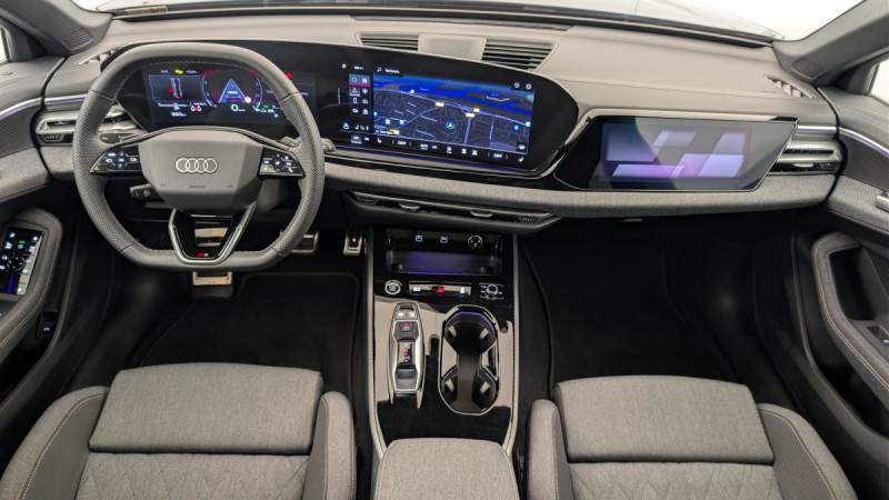 Audi phone box light / Dossier de banquette AR rabattable à distance et en trois parties 40 : 20 : 40 ou complètement / Audi Drive Select Permet de sélectionner différents modes de conduite: Efficiency, Confort, Dynamic, Lift, Individual. Les systèmes et équipements du véhicules s'adaptent suivant le mode sélectionné / Navigation MMI avec MMI touch Le système de navigation MMI plus avec MMI touch offre : - l'écran panoramique MMI avec technologie OLED, comprenant l'Audi virtual cockpit plus avec écran de 11,9 pouces ainsi que l'écran MMI touch de14,5" - système de navigation avec affichage des cartes et guidage routier sur l'écran couleur haute résolution de 14,5" - mise à jour des cartes en ligne - Affichage de cartes en 3D montrant de nombreux sites d'intérêt - informations routières en ligne - MMI search - MMI touch / Vitrage Privacy : lunette AR, vitres de portières AR et vitres latérales AR surteintées / Hayon de coffre à ouverture et fermeture électrique / Audi Virtual Cockpit Plus / Airbag conducteur et passager avec désactivation de l'airbag du siège passager / Pédalier et repose-pieds en acier inoxydable / Audi connect Navigation & Infotainment / Assistant d'évitement et assistant de braquage / Sécurité enfant commandée électrique / Volant multifonction S en cuir à trois branches avec palettes / Jantes style à 5 branches doubles en V, Gris Graphite, tournées brillantes 8,0J x 19, pneus 245/40 R19 / Réglage du volant manuel / Limiteur de vitesse basé sur la détection de signalisation routière / Assistant d'intersection AV Surveille la zone située devant et sur le côté du véhicule aux intersections et aux sorties de route à l'aide des capteurs radar intégrés à l'AV du véhicule. Dans les limites du système, il détecte les objets en mouvement tels que les voitures qui s'approchent. Le système fonctionne dans une plage de vitesse allant jusqu'à 65 km/h. Dans les situations jugées critiques, le système émet des messages d'avertissement en plusieurs étapes. Tout d'abord, un avertissement visuel et sonore est émis. / Assistance au freinage d'urgence à l'AV Scanne la zone située devant le véhicule et peut, en fonction de la situation et de la vitesse, avertir de l'imminence d'une collision et déclencher les mesures de freinage appropriées. Les piétons et les cyclistes peuvent être détectés jusqu'à une vitesse d'environ 85 km/h et les véhicules jusqu'à la vitesse maximale. Si une collision frontale imminente est détectée, le système émet un avertissement visuel, acoustique et haptique. Afin de réduire la vitesse ou d'éviter une collision. / Fixation de siège pour enfant i-Size côté passager AV et i-Size et Top Tether pour les sièges AR extérieurs / Préparation pour dispositif d'attelage / Châssis Sport Meilleure dynamique de conduite, une tenue de route agile et une allure sportive (Châssis abaissé de 20mm) / Pack extérieur S line / Sièges Sport avec monogramme S / Eléments de la console centrale Noir Brillant / Garniture du tableau de bord, des contre-portes et des accoudoirs de portes en tissu Kaskade / Indicateur de perte de pression des pneumatiques / Pack Tech : Alerte de sortie de voie Climatisation automatique 3 zones Rétroviseur intérieur à réglage jour/nuit automatique Rétroviseurs extérieurs réglables dégivrants et rabattables électriquement à réglage jour/nuit automatique des 2 côtés Projection de logo dans les rétroviseurs extérieurs Audi Application Store et smartphone interface Téléchargez des applications via l'Audi Application Store ou utilisez les application de votre smartphone via la Smartphone interface (prend en charge Android Auto et Apple Car Play) Audi Sound System 10 HPs incluant un HP central et un subwoofer ; amplificateur à 6 canaux avec une puissance totale de 180 watts Projecteurs a LED plus Assistant de feux de route Système d'aide au stationnement plus avec indicateur de distance Aide à entrer et sortir des places de stationnement et à manoeuvrer en AV et en AR grâce à des signaux acoustiques et à un affichage visuel de la trajectoire de conduite virtuelle Park assist plus Le système d'assistance contrôle la direction, l'accélération et le freinage et coupe le moteur afin d'offrir un stationnement en toute sérénité Caméra de recul Assistant de vitesse adaptatif Le régulateur de vitesse adaptatif aide le conducteur en maintenant la vitesse et la distance par rapport au véhicule qui le précède Bloc de feux AR à LED pro Clignotants dynamiques et séquences lumineuses / Pack intérieur S line : Sièges AV chauffants Appui lombaires Application intérieures en style aluminium Sellerie tissu Kascade Eclairage d'ambiance plus 30 couleurs disponibles Inserts décoratifs en aluminium mat brossé Sièges AV à réglage manuel / Ciel de pavillon en tissu noir /