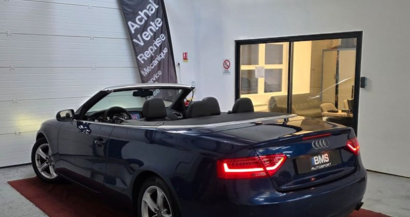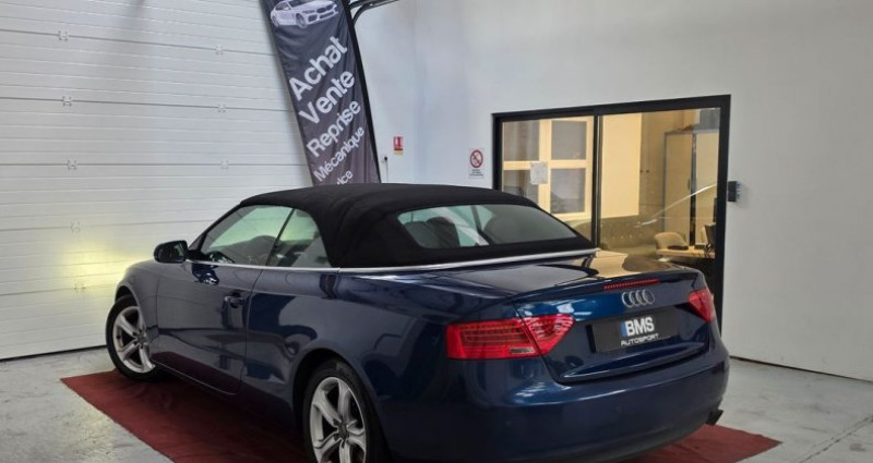 BMS Auto Sport vous propose : Audi A5 Cabriolet 2.0 TFSI Quattro 211 ch - Boîte S-Tronic - 2012 - 143 000 km Superbe cabriolet premium de première main, alliant élégance, sportivité et confort. Version Quattro associée à la boîte S-Tronic, configuration rare Bleu S9 / intérieur cuir, capote électrique et options premium. ?? MOTEUR & TRANSMISSION Moteur essence 2.0 TFSI - 211 ch (CDNC) Boîte automatique Tiptronic 8 rapports (code NHL) Transmission intégrale Quattro (1X1) Norme Euro 5 - Crit’Air 1 0-100 km/h en 7,5 s Consommation mixte env. 7,1 L/100 km ? DESIGN & EXTÉRIEUR Couleur extérieure Bleu S9 - code X5Q Capote électrique (3FT) Jantes alliage 17’’ (CD7 / 225/50 R17) Xénon Plus (8BP + PX1) avec lave-phares et feux diurnes LED Feux arrière LED (8SK) Antibrouillards (8WB) Rétroviseurs rabattables et dégivrants (6XE) Pare-brise athermique (4GF) ?? CONFORT & HABITACLE Sellerie cuir intégral (N5W) Sièges sport avant (Q1D) avec chauffage (4A3) Appui lombaire électrique (7P1) Accoudoir central avant (6E3) Volant sport cuir multifonction (1XW) Baguettes de seuil métal (7M1) Filet anti-remous fourni (7S1) Climatisation automatique Climatronic (9AK) Banquette arrière rabattable (3NZ) ? TECHNOLOGIE & CONNECTIVITÉ Navigation MID (7T6) Radio HIGH (8YQ) Lecteur DVD (7D5) Pré-équipement téléphone Bluetooth (9ZX) Ordinateur de bord multifonction (9Q8) Radars de stationnement arrière (7X1) Détecteur pluie/lumière (8N7) Régulateur de vitesse (8T1) Prises 12V (7B3) ?? AIDES À LA CONDUITE & SÉCURITÉ ESP / ABS / AFU (1AS) Airbags frontaux + latéraux (4UE + 4X1) Isofix arrière (3B4) Alarme antivol (7AL) Freins avant/arrière disques ventilés (1LA / 1KW) Régulation auto de portée des phares (8Q3) Véhicule propre, très bien équipé - aucun frais à prévoir ? Historique d’entretien disponible VISITES UNIQUEMENT SUR RENDEZ-VOUS ? LIVRAISON POSSIBLE PARTOUT EN FRANCE Concurrentes : BMW 320i 325i 330i 335i Cabriolet E93, Mercedes Classe C Cabriolet, Volvo C70. TT - Les informations de cette annonce sont données à titre indicatif et non contractuel.