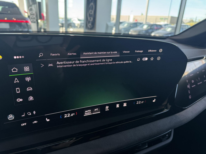 Appel d'urgence et service Audi connect avec Audi connect Remote & Control Audi connect appel d'urgence & service permet, par exemple, dans le cas d'un accident grave, un appel d'urgence est automatiquement généré au centre d'appels d'urgence Audi. Un service d'aide est également disponible en cas de panne ou d'accident léger grâce aux services Assistance en ligne et Service dommages Audi.Audi connect remote & control permet de connecter le véhicule à votre smartphone. Grâce à l'application myAudi, il est possible d'accéder à de nombreuses informations du véhicule / Application intérieures en style aluminium / Assistant d'intersection AV Surveille la zone située devant et sur le côté du véhicule aux intersections et aux sorties de route à l'aide des capteurs radar intégrés à l'AV du véhicule. Dans les limites du système, il détecte les objets en mouvement tels que les voitures qui s'approchent. Le système fonctionne dans une plage de vitesse allant jusqu'à 65 km/h. Dans les situations jugées critiques, le système émet des messages d'avertissement en plusieurs étapes. Tout d'abord, un avertissement visuel et sonore est émis. / Assistant de vitesse adaptatif Le régulateur de vitesse adaptatif aide le conducteur en maintenant la vitesse et la distance par rapport au véhicule qui le précède / Audi Application Store et smartphone interface Téléchargez des applications via l'Audi Application Store ou utilisez les application de votre smartphone via la Smartphone interface (prend en charge Android Auto et Apple Car Play) / Audi connect Navigation & Infotainment / Audi Virtual Cockpit Plus / Blocs de feux AR à LED / Inserts décoratifs en aluminium mat brossé / Inserts décoratifs en aluminium mat brossé / Jantes style à 5 branches doubles en V, Gris Graphite, tournées brillantes 8,0J x 19, pneus 245/40 R19 / Navigation MMI avec MMI touch Le système de navigation MMI plus avec MMI touch offre : - l'écran panoramique MMI avec technologie OLED, comprenant l'Audi virtual cockpit plus avec écran de 11,9 pouces ainsi que l'écran MMI touch de14,5" - système de navigation avec affichage des cartes et guidage routier sur l'écran couleur haute résolution de 14,5" - mise à jour des cartes en ligne - Affichage de cartes en 3D montrant de nombreux sites d'intérêt - informations routières en ligne - MMI search - MMI touch / Pack extérieur S line / Pack intérieur S line tissu Appuis lombaires.Sièges AV chauffants. Sièges AV à réglage manuel. Eclairage d'ambiance Plus. Inserts décoratifs en aluminium mat brossé avec marquage linéaire anthracite. Application intérieures style aluminium. / Pack style brillant / Pack Tech Caméra de recul. Régulateur de vitesse adaptatif. Park assist plus.Système d'aide au stationnement plus.Alerte de sortie de voie.Projecteurs à LED plus. Assistant feux de route.Climatisation automatique 3 zones. Rétroviseur intérieur à réglage jour/nuit automatique. Rétroviseurs ext. réglables dégivrants et rabattables électriquement à réglage jour/nuit automatique des 2 côtés.Projection de logo sur le sol depuis les rétroviseurs extérieurs. Audi sound system.Audi Application Store / Park assist plus Le système d'assistance contrôle la direction, l'accélération et le freinage et coupe le moteur afin d'offrir un stationnement en toute sérénité / Projecteurs a LED plus / Préparation pour dispositif d'attelage / Préparation pour dispositif d'attelage / Rétroviseur intérieur à réglage jour/nuit automatique / Rétroviseurs extérieurs réglables dégivrants et rabattables électriquement à réglage jour/nuit automatique des 2 côtés / Seuils de porte avec inserts en aluminium à l'AV, éclairés, avec monogramme S / Système d'aide au stationnement plus avec indicateur de distance Aide à entrer et sortir des places de stationnement et à manoeuvrer en AV et en AR grâce à des signaux acoustiques et à un affichage visuel de la trajectoire de conduite virtuelle / Volant multifonction S en cuir à trois branches avec palettes / Airbag conducteur et passager avec désactivation de l'airbag du siège passager / Appui lombaires / Assistance au freinage d'urgence à l'AV Scanne la zone située devant le véhicule et peut, en fonction de la situation et de la vitesse, avertir de l'imminence d'une collision et déclencher les mesures de freinage appropriées. Les piétons et les cyclistes peuvent être détectés jusqu'à une vitesse d'environ 85 km/h et les véhicules jusqu'à la vitesse maximale. Si une collisionfrontale imminente est détectée, le système émet un avertissement visuel, acoustique et haptique. Afin de réduire la vitesse ou d'éviter une collision. / Assistant d'évitement et assistant de braquage / Assistant de feux de route / Audi Drive Select Permet de sélectionner différents modes de conduite: Efficiency, Confort, Dynamic, Individual. Les systèmes et équipements du véhicules s'adaptent suivant le mode sélectionné / Audi phone box / Audi phone box / Audi phone box light Connexion Bluetooth et compartiment de téléphone avec chargeur à induction au refroidissement actif / Audi Sound System 10 haut-parleurs incluant un haut-parleur central et un subwoofer ; amplificateur à 6 canaux avec une puissance totale de 180 watts / Avertissement de contrôle de la banquette AR / Avertisseur de sortie du véhicule / Boîtiers de rétroviseurs dans la teinte du véhicule / Châssis Sport Meilleure dynamique de conduite, une tenue de route agile et une allure sportive (Châssis abaissé de 20mm) / Châssis Sport Meilleure dynamique de conduite, une tenue de route agile et une allure sportive (Châssis abaissé de 20mm) / Ciel de pavillon en tissu noir / Cléà fréquence radio (sans safelock) / Eclairage d'ambiance plus 30 couleurs disponibles / Ecrous de roues antivol / Eléments d'équipement intérieur en haut et en bas avec couture contrastée / Eléments de la console centrale noir brill