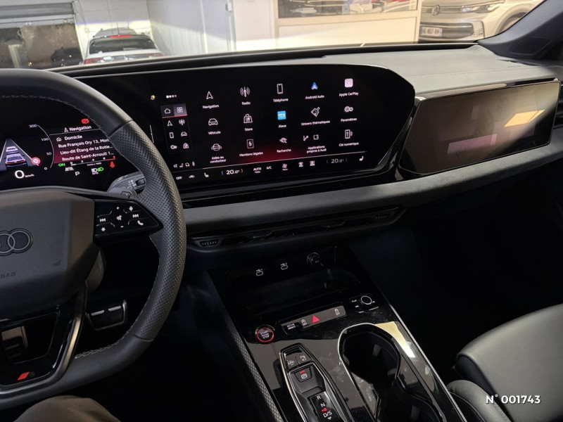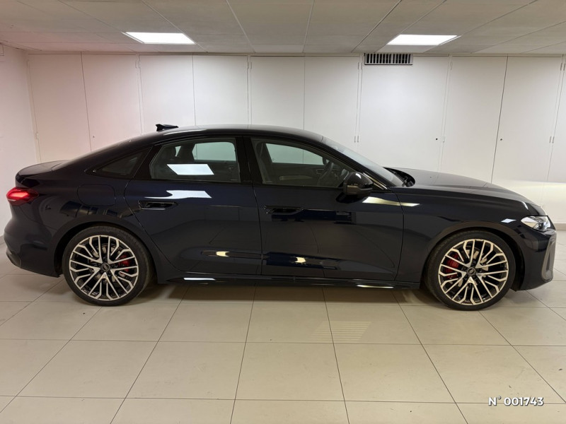 Bloc de feux AR à LED pro Clignotants dynamiques et séquences lumineuses / Audi phone box / Assistant de vitesse adaptatif Le régulateur de vitesse adaptatif aide le conducteur en maintenant la vitesse et la distance par rapport au véhicule qui le précède / Volant multifonction S en cuir à trois branches avec palettes / Sièges AV à réglage manuel / Audi Application Store et smartphone interface Téléchargez des applications via l'Audi Application Store ou utilisez les application de votre smartphone via la Smartphone interface (prend en charge Android Auto et Apple Car Play) / Assistant de feux de route / Rétroviseur intérieur à réglage jour/nuit automatique / Projecteurs a LED plus / Système d'aide au stationnement plus avec indicateur de distance Aide à entrer et sortir des places de stationnement et à manoeuvrer en AV et en AR grâce à des signaux acoustiques et à un affichage visuel de la trajectoire de conduite virtuelle / Rétroviseurs extérieurs réglables dégivrants et rabattables électriquement à réglage jour/nuit automatique des 2 côtés / Audi Sound System 10 HPs incluant un HP central et un subwoofer ; amplificateur à 6 canaux avec une puissance totale de 180 watts / Park assist plus Le système d'assistance contrôle la direction, l'accélération et le freinage et coupe le moteur afin d'offrir un stationnement en toute sérénité / Rampes de pavillon en aluminium / Pédalier et repose-pieds en acier inoxydable / Réglage du volant manuel / Sellerie tissu Kaskade / Sécurité enfant commandée électrique / Seuils de porte avec inserts en aluminium à l'AV, éclairés, avec monogramme S / Vitrage Privacy : lunette AR, vitres de portières AR et vitres latérales AR surteintées / Tapis de sol AV/AR / Projection de logo dans les rétroviseurs extérieurs / Sièges Sport avec monogramme S / Garniture du tableau de bord, des contre-portes et des accoudoirs de portes en tissu Kaskade / Filet de séparation / Jantes style à 5 branches doubles en V, Gris Graphite, tournées brillantes 8,0J x 19, pneus 245/40 R19 / Limiteur de vitesse basé sur la détection de signalisation routière / Pack extérieur S line / Pack intérieur S line tissu / Navigation MMI avec MMI touch Le système de navigation MMI plus avec MMI touch offre : - l'écran panoramique MMI avec technologie OLED, comprenant l'Audi virtual cockpit plus avec écran de 11,9 pouces ainsi que l'écran MMI touch de14,5" - système de navigation avec affichage des cartes et guidage routier sur l'écran couleur haute résolution de 14,5" - mise à jour des cartes en ligne - Affichage de cartes en 3D montrant de nombreux sites d'intérêt - informations routières en ligne - MMI search - MMI touch / Pack style brillant / Préparation pour dispositif d'attelage / Avertissement de contrôle de la banquette AR / Boîtiers de rétroviseurs dans la teinte du véhicule / Ciel de pavillon en tissu noir / Châssis Sport Meilleure dynamique de conduite, une tenue de route agile et une allure sportive (Châssis abaissé de 20mm) / Cléà fréquence radio (sans safelock) / Eclairage d'ambiance plus 30 couleurs disponibles / Ecrous de roues antivol / Eléments de la console centrale Noir Brillant / Fixation de siège pour enfant i-Size côté passager AV et i-Size et Top Tether pour les sièges AR extérieurs / Eléments d'équipement intérieur en haut et en bas avec couture contrastée / Inserts décoratifs en aluminium mat brossé / Hayon de coffre à ouverture et fermeture électrique / Indicateur de perte de pression des pneumatiques / Airbag conducteur et passager avec désactivation de l'airbag du siège passager / Alerte de sortie de voie / Appui lombaires / Application intérieures en style aluminium / Appel d'urgence et service Audi connect avec Audi connect Remote & Control Audi connect appel d'urgence & service permet, par exemple, dans le cas d'un accident grave, un appel d'urgence est automatiquement généré au centre d'appels d'urgence Audi. Un service d'aide est également disponible en cas de panne ou d'accident léger grâce aux services Assistance en ligne et Service dommages Audi.Audi connect remote & control permet de connecter le véhicule à votre smartphone. Grâce à l'application myAudi, il est possible d'accéder à de nombreuses informations du véhicule / Assistant d'évitement et assistant de braquage / Assistance au freinage d'urgence à l'AV Scanne la zone située devant le véhicule et peut, en fonction de la situation et de la vitesse, avertir de l'imminence d'une collision et déclencher les mesures de freinage appropriées. Les piétons et les cyclistes peuvent être détectés jusqu'à une vitesse d'environ 85 km/h et les véhicules jusqu'à la vitesse maximale. Si une collision frontale imminente est détectée, le système émet un avertissement visuel, acoustique et haptique. Afin de réduire la vitesse ou d'éviter une collision. / Assistant d'intersection AV Surveille la zone située devant et sur le côté du véhicule aux intersections et aux sorties de route à l'aide des capteurs radar intégrés à l'AV du véhicule. Dans les limites du système, il détecte les objets en mouvement tels que les voitures qui s'approchent. Le système fonctionne dans une plage de vitesse allant jusqu'à 65 km/h. Dans les situations jugées critiques, le système émet des messages d'avertissement en plusieurs étapes. Tout d'abord, un avertissement visuel et sonore est émis. / Audi Drive Select Permet de sélectionner différents modes de conduite: Efficiency, Confort, Dynamic, Lift, Individual. Les systèmes et équipements du véhicules s'adaptent suivant le mode sélectionné / Audi connect Navigation & Infotainment / Audi Virtual Cockpit Plus