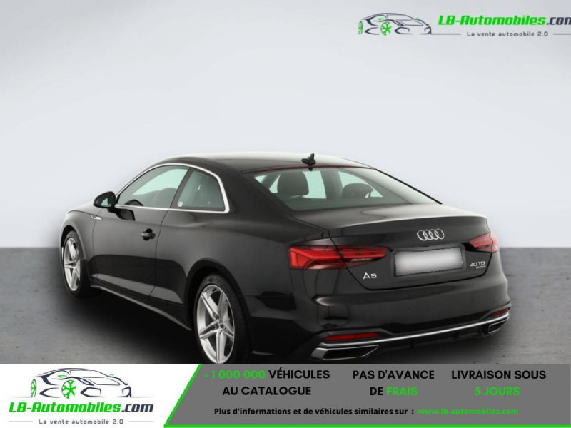 Référence : 1051029 Vos Avantages chez LB-AUTOMOBILES.com / Prix affiché TTC Livré hors carte grise / Livraison sous 10 jours dans toute la France hors 31 / Pas d?avance de frais paiement du véhicule 100% à la livraison par virement. Audi A5 Neuf remisée, Audi A5 Occasion Toulouse Beaupuy 31850, Audi A5 Véhicule sorti de réseau collaborateur, Audi A5 import, Audi A5 importateur, Audi A5 Livraison possible dans toute la France sous 5 jours, Audi A5, Audi A5 Location Option Achat, Audi A5 LLD, Audi A5 Longue Durée, Audi A5 TVA récupérable. Possibilité d'extension de garantie 12, 24,36 mois, Pour tout autres voitures import neufs ou occasions collaborateur fortement remisée, Mandataire Audi, Mandataire BMW, Mandataire Volkswagen, Mandataire Mercedes, Mandataire Peugeot Espagne, Mandataire Renault Espagne, Porsche import, Mandataire Citroën Espagne, Mandataire Seat Espagne, n'hésitez pas à nous contacter. « Sous réserve de vente préalable et erreur de saisie » Principaux équipements : - 4x4 - ABS - Accoudoir - Android Auto - Antidémarrage - Apple CarPlay - Assistance de démarrage en côte - Bluetooth - Boîte de vitesses robotisée - Capteur de lumière - Capteur de pluie - Carnet d'entretien - Cockpit numérique - Commande vocale - Contrôle de la pression des pneus - Diesel avec filtre à particules - Direction assistée - Écran tactile - ESP - Fermeture centralisée - Feux de jour LED - Garantie - GPS - Isofix - Jantes alliage - Kit mains libres - Ordinateur de bord - Phare antibrouillard - Phares LED - Port USB - Radio DAB - Réglage électrique des sièges - Réglage électrique des sièges avec fonction mémoire - Régulateur de vitesse - Rétroviseur extérieur électrique - Rétroviseur intérieur anti-éblouissement automatique - Sièges chauffants - Support lombaire - Système antipatinage - Système d'avertissement de la distance - Système de limitation de la vitesse - Système Stop & Start - Tuner/radio - Véhicule non-fumeur - Verrouillage centralisé sans clé - Vitres électriques - Volant en cuir - Volant multifonction