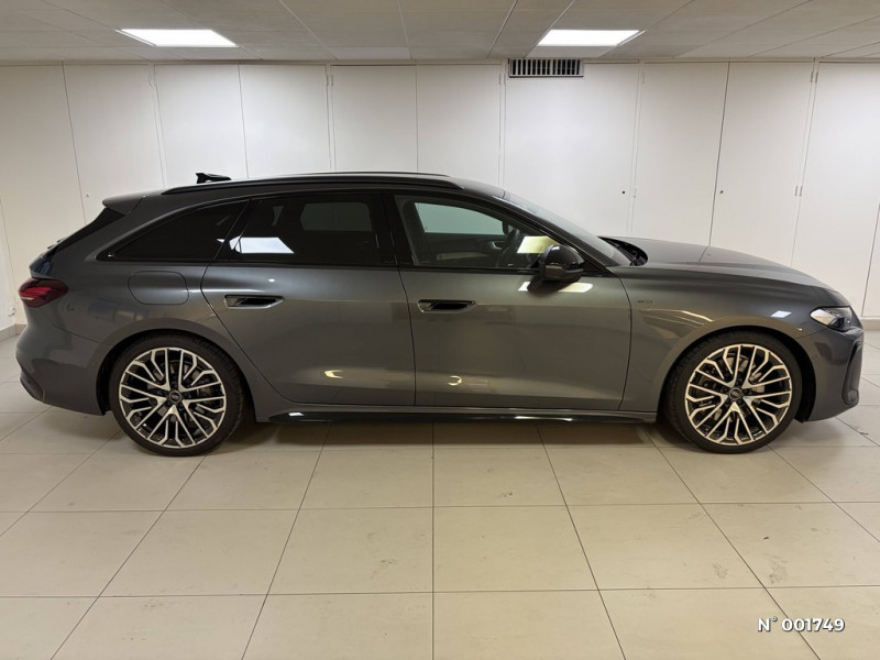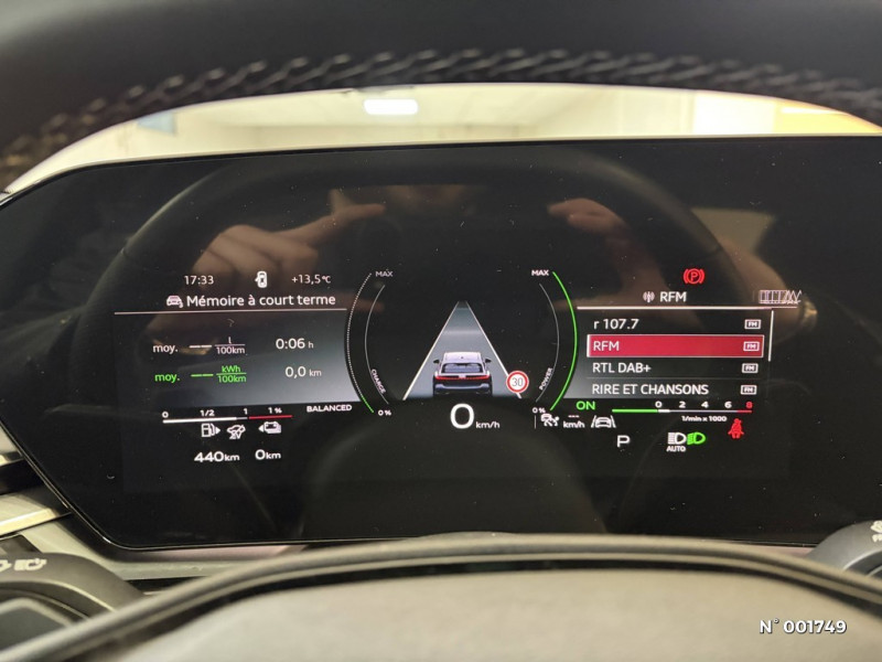 Boîte automatique S Tronic 7 vitesses / Avertissement de contrôle de la banquette AR / Châssis Sport Meilleure dynamique de conduite, une tenue de route agile et une allure sportive (Châssis abaissé de 20mm) / Airbags latéraux à l'AV avec système d'airbags rideaux et airbag central à l'AV / Airbag conducteur et passager avec désactivation de l'airbag du siège passager / Appel d'urgence et service Audi connect avec Audi connect Remote & Control Audi connect appel d'urgence & service permet, par exemple, dans le cas d'un accident grave, un appel d'urgence est automatiquement généré au centre d'appels d'urgence Audi. Un service d'aide est également disponible en cas de panne ou d'accident léger grâce aux services Assistance en ligne et Service dommages Audi.Audi connect remote & control permet de connecter le véhicule à votre smartphone. Grâce à l'application myAudi, il est possible d'accéder à de nombreuses informations du véhicule / Alerte de sortie de voie / Assistant d'évitement et assistant de braquage / Assistance au freinage d'urgence à l'AV Scanne la zone située devant le véhicule et peut, en fonction de la situation et de la vitesse, avertir de l'imminence d'une collision et déclencher les mesures de freinage appropriées. Les piétons et les cyclistes peuvent être détectés jusqu'à une vitesse d'environ 85 km/h et les véhicules jusqu'à la vitesse maximale. Si une collision frontale imminente est détectée, le système émet un avertissement visuel, acoustique et haptique. Afin de réduire la vitesse ou d'éviter une collision. / Audi connect Navigation & Infotainment 3 ans / Assistant d'intersection AV Surveille la zone située devant et sur le côté du véhicule aux intersections et aux sorties de route à l'aide des capteurs radar intégrés à l'AV du véhicule. Dans les limites du système, il détecte les objets en mouvement tels que les voitures qui s'approchent. Le système fonctionne dans une plage de vitesse allant jusqu'à 65 km/h. Dans les situations jugées critiques, le système émet des messages d'avertissement en plusieurs étapes. Tout d'abord, un avertissement visuel et sonore est émis. / Rétroviseurs extérieurs réglables dégivrants et rabattables électriquement à réglage jour/nuit automatique des 2 côtés / Projection de logo dans les rétroviseurs extérieurs / Rétroviseur intérieur à réglage jour/nuit automatique / Assistant de feux de route / Assistant de vitesse adaptatif Le régulateur de vitesse adaptatif aide le conducteur en maintenant la vitesse et la distance par rapport au véhicule qui le précède / Audi Sound System 10 HPs incluant un HP central et un subwoofer ; amplificateur à 6 canaux avec une puissance totale de 180 watts / Audi Application Store et smartphone interface Téléchargez des applications via l'Audi Application Store ou utilisez les application de votre smartphone via la Smartphone interface (prend en charge Android Auto et Apple Car Play) / Eclairage d'ambiance plus 30 couleurs disponibles / Application intérieures en style aluminium / Volant multifonction S en cuir à trois branches avec palettes / Appui lombaires / Inserts décoratifs en aluminium mat brossé avec marquage linéaire Anthracite / Système d'aide au stationnement plus avec indicateur de distance Aide à entrer et sortir des places de stationnement et à manoeuvrer en AV et en AR grâce à des signaux acoustiques et à un affichage visuel de la trajectoire de conduite virtuelle / Sellerie tissu Kaskade / Sièges AV à réglage manuel / Bloc de feux AR à LED pro Clignotants dynamiques et séquences lumineuses / Park assist plus Le système d'assistance contrôle la direction, l'accélération et le freinage et coupe le moteur afin d'offrir un stationnement en toute sérénité / Projecteurs a LED plus / Sécurité enfant commandée électrique / Trousse de secours avec triangle de présignalisation et veste de signalisation / Tapis de sol AV/AR / Seuils de porte avec inserts en aluminium à l'AV, éclairés, avec monogramme S / Sonorité extérieure Système acoustique permettant de produire un avertissement sonore à l'extérieur du véhicule à faible vitesse dans le but d'accroître la sécurité routière / Sièges Sport avec monogramme S / Kit anti-crevaison / Filet de séparation / Indicateur de perte de pression des pneumatiques / Motorisations avec technologie hybride rechargeable e-hybrid / Limiteur de vitesse basé sur la détection de signalisation routière / Rampes de pavillon en aluminium / Pack extérieur S line / Navigation MMI avec MMI touch Le système de navigation MMI plus avec MMI touch offre : - l'écran panoramique MMI avec technologie OLED, comprenant l'Audi virtual cockpit plus avec écran de 11,9 pouces ainsi que l'écran MMI touch de14,5" - système de navigation avec affichage des cartes et guidage routier sur l'écran couleur haute résolution de 14,5" - mise à jour des cartes en ligne - Affichage de cartes en 3D montrant de nombreux sites d'intérêt - informations routières en ligne - MMI search - MMI touch / Pack style brillant / Pédalier et repose-pieds en acier inoxydable / Quattro avec technologie ultra / Réglage du volant manuel / Eléments d'équipement intérieur en haut et en bas avec couture contrastée / Eclairage intérieur / Eléments de la console centrale Noir Brillant / ESC / Fixation de siège pour enfant i-Size côté passager AV et i-Size et Top Tether pour les sièges AR extérieurs / Garniture du tableau de bord, des contre-portes et des accoudoirs de portes en tissu Kaskade / Jantes style à 5 branches doubles en V, Gris Graphite, tournées brillantes 8,0J x 19, pneus 245/40 R19 / Hayon de coffre à ouverture et fermeture électrique / Câble de recharge mode 3 pour recharge publique 22 kW / Cléà fréquence radio (sans safelock) / Ciel de pavillon en tissu noir / Climatisation stationnaire Les fonctions de climatisation peuvent être programmées ou activées