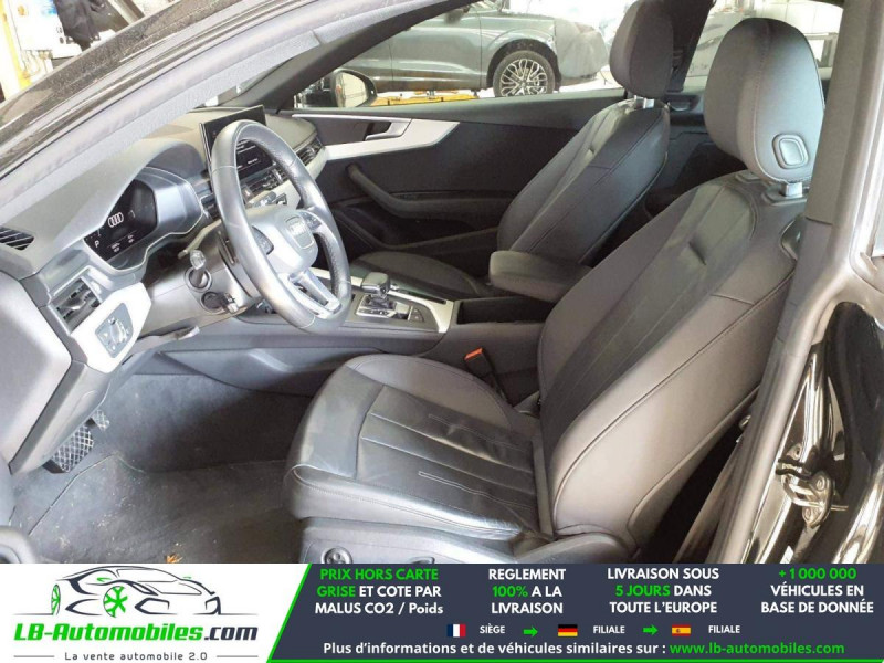 Référence : 1164904 Vos Avantages chez LB-AUTOMOBILES.com / Prix affiché TTC Livré hors carte grise / Livraison sous 10 jours dans toute la France hors 31 / Pas d?avance de frais paiement du véhicule 100% à la livraison par virement. Audi A5 coupé Neuf remisée, Audi A5 coupé Occasion Toulouse Beaupuy 31850, Audi A5 coupé Véhicule sorti de réseau collaborateur, Audi A5 coupé import, Audi A5 coupé importateur, Audi A5 coupé Livraison possible dans toute la France sous 5 jours, Audi A5 coupé, Audi A5 coupé Location Option Achat, Audi A5 coupé LLD, Audi A5 coupé Longue Durée, Audi A5 coupé TVA récupérable. Possibilité d'extension de garantie 12, 24,36 mois, Pour tout autres voitures import neufs ou occasions collaborateur fortement remisée, Mandataire Audi, Mandataire BMW, Mandataire Volkswagen, Mandataire Mercedes, Mandataire Peugeot Espagne, Mandataire Renault Espagne, Porsche import, Mandataire Citroën Espagne, Mandataire Seat Espagne, n'hésitez pas à nous contacter. « Sous réserve de vente préalable et erreur de saisie » Principaux équipements : - 4x4 - ABS - Accoudoir - Android Auto - Antidémarrage - Apple CarPlay - Assistance au freinage d'urgence - Assistance de démarrage en côte - Assistant d'angle mort - Assistant feux de route - Avertisseur de franchissement de ligne - Bluetooth - Boîte de vitesses robotisée - Capteur de lumière - Carnet d'entretien - Chargement par induction pour smartphones - Cockpit numérique - Commande vocale - Contrôle de la pression des pneus - Diesel avec filtre à particules - Direction assistée - Éclairage adaptatif - Éclairage d'ambiance - Éclairage route non éblouissant - Écran tactile - ESP - Fermeture centralisée - Feux de jour LED - Garantie - GPS - Hayon électrique - Isofix - Jantes alliage - Kit de réparation d'urgence des pneus - Kit mains libres - Ordinateur de bord - Pack sport - Phares LED - Pneus été - Point Isofix siège passager - Port USB - Radio DAB - Réglage électrique des sièges - Réglage électrique des sièges avec fonction mémoire - Régulateur de vitesse adaptatif - Rétroviseur extérieur électrique - Rétroviseur intérieur anti-éblouissement automatique - Rétroviseurs extérieurs rabattables électriquement - Sièges chauffants - Streaming musical intégré - Support lombaire - Suspension sport - Système antipatinage - Système d'appel d'urgence - Système d'avertissement de la distance - Système de reconnaissance des panneaux de signalisation - Système de sonorisation - Système Stop & Start - Tuner/radio - Véhicule non-fumeur - Verrouillage centralisé sans clé - Vitres électriques - Volant en cuir - Volant multifonction