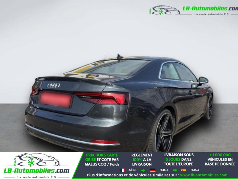 Référence : 1182511 Vos Avantages chez LB-AUTOMOBILES.com / Prix affiché TTC Livré hors carte grise / Livraison sous 10 jours dans toute la France hors 31 / Pas d?avance de frais paiement du véhicule 100% à la livraison par virement. Audi A5 Neuf remisée, Audi A5 Occasion Toulouse Beaupuy 31850, Audi A5 Véhicule sorti de réseau collaborateur, Audi A5 import, Audi A5 importateur, Audi A5 Livraison possible dans toute la France sous 5 jours, Audi A5, Audi A5 Location Option Achat, Audi A5 LLD, Audi A5 Longue Durée, Audi A5 TVA récupérable. Possibilité d'extension de garantie 12, 24,36 mois, Pour tout autres voitures import neufs ou occasions collaborateur fortement remisée, Mandataire Audi, Mandataire BMW, Mandataire Volkswagen, Mandataire Mercedes, Mandataire Peugeot Espagne, Mandataire Renault Espagne, Porsche import, Mandataire Citroën Espagne, Mandataire Seat Espagne, n'hésitez pas à nous contacter. « Sous réserve de vente préalable et erreur de saisie » Principaux équipements : - ABS - Accoudoir - Antidémarrage - Assistance au freinage d'urgence - Assistance de démarrage en côte - Bluetooth - Capteur de lumière - Carnet d'entretien - Contrôle de la pression des pneus - Diesel avec filtre à particules - Direction assistée - ESP - Fermeture centralisée - Feux de jour LED - Garantie - GPS - Hayon électrique - Isofix - Jantes alliage - Kit de réparation d'urgence des pneus - Kit mains libres - Lecteur CD - Ordinateur de bord - Pack fumeur - Phares bi-xénon - Rétroviseur extérieur électrique - Révision complète - Sièges chauffants - Sièges sport - Support lombaire - Suspension adaptative - Système antipatinage - Système d'appel d'urgence - Système d'avertissement de la distance - Système de limitation de la vitesse - Système Stop & Start - Traction avant - Tuner/radio - Vitres électriques - Volant en cuir - Volant multifonction