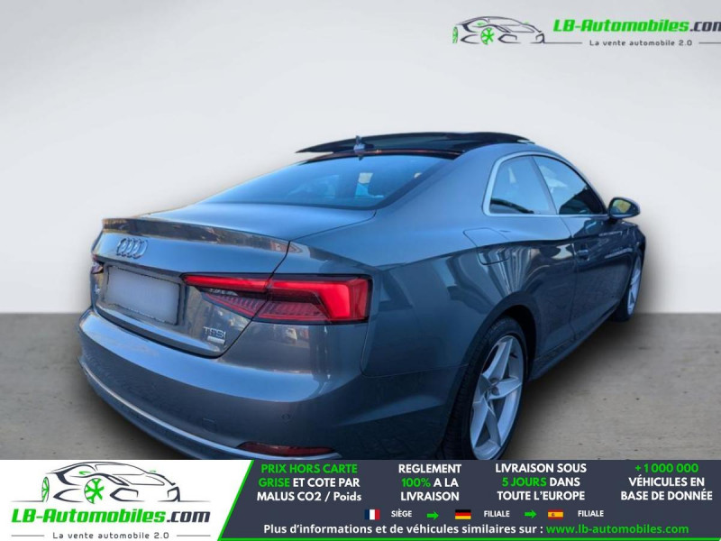 Référence : 1189960 Vos Avantages chez LB-AUTOMOBILES.com / Prix affiché TTC Livré hors carte grise / Livraison sous 10 jours dans toute la France hors 31 / Pas d?avance de frais paiement du véhicule 100% à la livraison par virement. Audi A5 Neuf remisée, Audi A5 Occasion Toulouse Beaupuy 31850, Audi A5 Véhicule sorti de réseau collaborateur, Audi A5 import, Audi A5 importateur, Audi A5 Livraison possible dans toute la France sous 5 jours, Audi A5, Audi A5 Location Option Achat, Audi A5 LLD, Audi A5 Longue Durée, Audi A5 TVA récupérable. Possibilité d'extension de garantie 12, 24,36 mois, Pour tout autres voitures import neufs ou occasions collaborateur fortement remisée, Mandataire Audi, Mandataire BMW, Mandataire Volkswagen, Mandataire Mercedes, Mandataire Peugeot Espagne, Mandataire Renault Espagne, Porsche import, Mandataire Citroën Espagne, Mandataire Seat Espagne, n'hésitez pas à nous contacter. « Sous réserve de vente préalable et erreur de saisie » Principaux équipements : - ABS - Accoudoir - Antidémarrage - Assistant feux de route - Bluetooth - Capteur de lumière - Capteur de pluie - Carnet d'entretien - Cockpit numérique - Contrôle de la pression des pneus - Direction assistée - Éclairage d'ambiance - ESP - Fermeture centralisée - Feux de jour LED - GPS - Grille de protection pour coffre - Isofix - Jantes alliage - Kit mains libres - Ordinateur de bord - Pack sport - Phares LED - Pneus été - Port USB - Préparation de l'attache remorque - Réglage électrique des sièges - Rétroviseur extérieur électrique - Révision complète - Sièges chauffants - Sièges sport - Support lombaire - Système antipatinage - Système de limitation de la vitesse - Système de sonorisation - Système Stop & Start - Toit panoramique - Traction avant - Tuner/radio - Véhicule non-fumeur - Vitres électriques - Volant chauffant - Volant en cuir - Volant multifonction