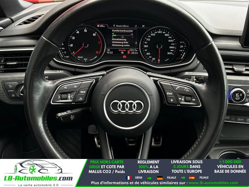 Référence : 1209736 Vos Avantages chez LB-AUTOMOBILES.com / Prix affiché TTC Livré hors carte grise / Livraison sous 10 jours dans toute la France hors 31 / Pas d?avance de frais paiement du véhicule 100% à la livraison par virement. Audi A5 Neuf remisée, Audi A5 Occasion Toulouse Beaupuy 31850, Audi A5 Véhicule sorti de réseau collaborateur, Audi A5 import, Audi A5 importateur, Audi A5 Livraison possible dans toute la France sous 5 jours, Audi A5, Audi A5 Location Option Achat, Audi A5 LLD, Audi A5 Longue Durée, Audi A5 TVA récupérable. Possibilité d'extension de garantie 12, 24,36 mois, Pour tout autres voitures import neufs ou occasions collaborateur fortement remisée, Mandataire Audi, Mandataire BMW, Mandataire Volkswagen, Mandataire Mercedes, Mandataire Peugeot Espagne, Mandataire Renault Espagne, Porsche import, Mandataire Citroën Espagne, Mandataire Seat Espagne, n'hésitez pas à nous contacter. « Sous réserve de vente préalable et erreur de saisie » Principaux équipements : - ABS - Accoudoir - Antidémarrage - Bluetooth - Capteur de lumière - Capteur de pluie - Carnet d'entretien - Commande vocale - Contrôle de la pression des pneus - Direction assistée - ESP - Fermeture centralisée - Feux de jour LED - Galerie de toit - Garantie - GPS - Isofix - Jantes alliage - Kit de réparation d'urgence des pneus - Kit mains libres - Lecteur CD - Ordinateur de bord - Package hiver - Pack sport - Phares LED - Pneus été - Point Isofix siège passager - Port USB - Radio DAB - Régulateur de vitesse - Rétroviseur extérieur électrique - Sièges chauffants - Sièges sport - Streaming musical intégré - Support lombaire - Système antipatinage - Système d'alarme - Système de détection de la fatigue - Système de limitation de la vitesse - Système de sonorisation - Système Stop & Start - Traction avant - Tuner/radio - Véhicule non-fumeur - Verrouillage centralisé sans clé - Vitres électriques - Vitres teintées - Volant en cuir - Volant multifonction - WLAN / point d'accès Wi-Fi