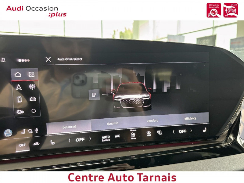 Assistant aux manoeuvres de stationnement plus / Assistant aux manoeuvres de stationnement plus / Assistant d'intersection AV Surveille la zone située devant et sur le côté du véhicule aux intersections et aux sorties de route à l'aide des capteurs radar intégrés à l'AV du véhicule. Dans les limites du système, il détecte les objets en mouvement tels que les voitures qui s'approchent. Le système fonctionne dans une plage de vitesse allant jusqu'à 65 km/h. Dans les situations jugées critiques, le système émet des messages d'avertissement en plusieurs étapes. Tout d'abord, un avertissement visuel et sonore est émis. / Assistant d'intersection AV Surveille la zone située devant et sur le côté du véhicule aux intersections et aux sorties de route à l'aide des capteurs radar intégrés à l'AV du véhicule. Dans les limites du système, il détecte les objets en mouvement tels que les voitures qui s'approchent. Le système fonctionne dans une plage de vitesse allant jusqu'à 65 km/h. Dans les situations jugées critiques, le système émet des messages d'avertissement en plusieurs étapes. Tout d'abord, un avertissement visuel et sonore est émis. / Audi connect Navigation & Infotainment / Audi connect Navigation & Infotainment / Audi hold assist: Système d'aide au stationnement plus avec indicateur de distance / Audi Virtual cockpit plus Combiné d'instruments entièrement numérique de 11,9" avec technologie OLED / Audi Virtual cockpit plus Combiné d'instruments entièrement numérique de 11,9" avec technologie OLED / Boîte automatique S Tronic 7 vitesses / Boîte automatique S Tronic 7 vitesses / Eclairage intérieur Module de toit à LED AV et AR, y compris liseuses, Miroirs de courtoisie côté conducteur et passager, éclairés, Eclairage du compartiment de rangement sous l'accoudoir central, Eclairage de la boîte à gants, Eclairage de la zone des pieds AV, Eclairage du compartiment à bagages, Éclairage de courtoisie du hayon / Eclairage intérieur Module de toit à LED AV et AR, y compris liseuses, Miroirs de courtoisie côté conducteur et passager, éclairés, Eclairage du compartiment de rangement sous l'accoudoir central, Eclairage de la boîte à gants, Eclairage de la zone des pieds AV, Eclairage du compartiment à bagages, Éclairage de courtoisie du hayon / Jantes, style à 5 bras, Gris Platine 8,5J x 19, pneumatiques 245/45 R19 / Jantes, style à 5 bras, Gris Platine 8,5J x 19, pneumatiques 245/45 R19 / Pack extérieur Advanced / Pack extérieur Advanced / Pack Extérieur S line / Pack style brillant / Pack style brillant / Pack Tech Climatisation 4 zones Rétroviseur intérieur à réglage jour/nuit automatique, Rétroviseurs extérieurs réglables, dégivrants et rabattables, Projection de logo dans les rétroviseurs extérieurs, Matrix LED, Fonction Matrix, Lave projecteurs, Bloc de feux arrière à LED pro, Caméras périmétriques / Rampes de pavillon en aluminium / Rampes de pavillon en aluminium / Seuils de porte avec inserts en aluminium à l'AV, éclairés, avec monogramme S / Seuils de porte avec inserts en aluminium à l'AV, éclairés, avec monogramme S / Système d'aide au stationnement plus avec indicateur de distance Aide à entrer et sortir des places de stationnement et à manoeuvrer en AV et en AR grâce à des signaux acoustiques et à un affichage visuel de la trajectoire de conduite virtuelle / Volant sport multifonction en cuir avec palettes / Volant sport multifonction en cuir avec palettes / Airbags latéraux à l'AV avec système d'airbags rideaux et airbag central à l'AV / Airbags latéraux à l'AV avec système d'airbags rideaux et airbag central à l'AV / Airbags à l'AV, airbag du passager AV désactivable / Airbags à l'AV, airbag du passager AV désactivable / Alerte de sortie de voie / Alerte de sortie de voie / Appui lombaires / Assistance au freinage d'urgence à l'AV Scanne la zone située devant le véhicule et peut, en fonction de la situation et de la vitesse, avertir de l'imminence d'une collision et déclencher les mesures de freinage appropriées. / Assistance au freinage d'urgence à l'AV Scanne la zone située devant le véhicule et peut, en fonction de la situation et de la vitesse, avertir de l'imminence d'une collision et déclencher les mesures de freinage appropriées. Les piétons et les cyclistes peuvent être détectés jusqu'à une vitesse d'environ 85 km/h et les véhicules jusqu'à la vitesse maximale. Si une collision frontale imminente est détectée, le système émet un avertissement visuel, acoustique et haptique. Afin de réduire la vitesse ou d'éviter une collision. / Assistant d'évitement et assistant de braquage / Assistant d'évitement et assistant de braquage / Audi Application Store et smartphone interface / Audi Application Store et smartphone interface / Audi connect appel d'urgence & service avec Audi connect remote & control / Audi connect appel d'urgence & service avec Audi connect remote & control / Audi Drive Select / Audi Drive Select / Audi Hold Assist / Audi Sound System / Audi Sound System / Avertissement de contrôle de la banquette AR / Avertissement de contrôle de la banquette AR / Boîtiers de rétroviseurs dans la teinte du véhicule / Boîtiers de rétroviseurs dans la teinte du véhicule / Clé confort (sans SAFELOCK) / Clé confort (sans SAFELOCK) / Clé digitale / Clé digitale / Contrôle de la traction (TCS) / Contrôle de la traction (TCS) / Dossier de banquette AR rabattable en 3 parties 40:20 :40 ou complètement / Dossier de banquette AR rabattable en 3 parties 40:20 :40 ou complètement / Détection de l'attention et de la fatigue / Ecrous de roues antivol / Ecrous de roues antivol / Extérieur S line / Extérieur S line / Filet de séparation / Filet de séparation / Fixation de siège pour enfant i-Size côté passager AV et i-Size et Top Tether pour les sièges AR extérieurs / Fixation de siège pour enfant i-Size côté passager AV et i-Size et To