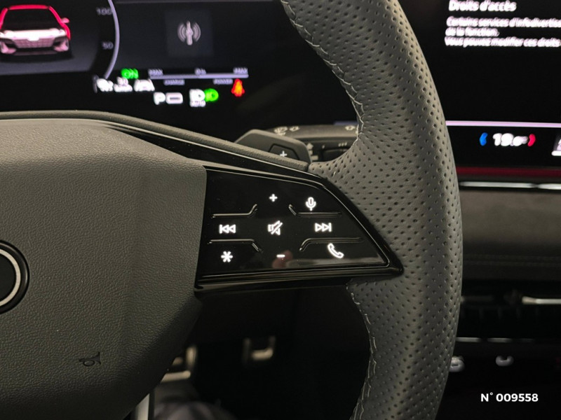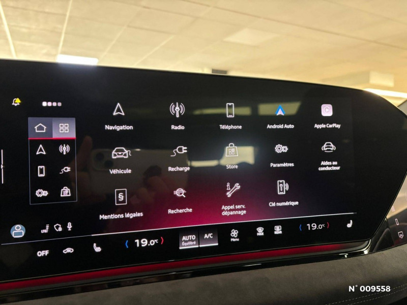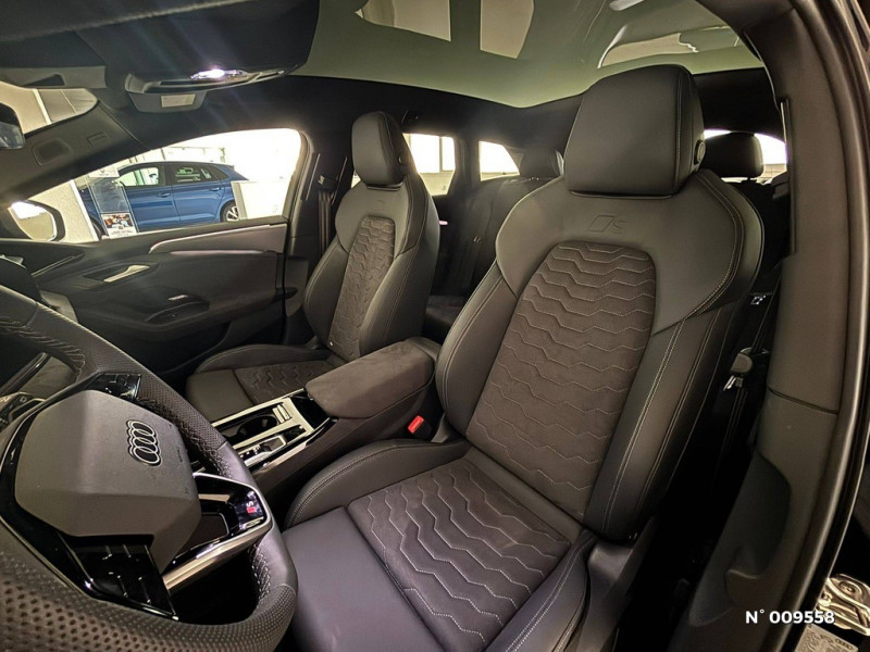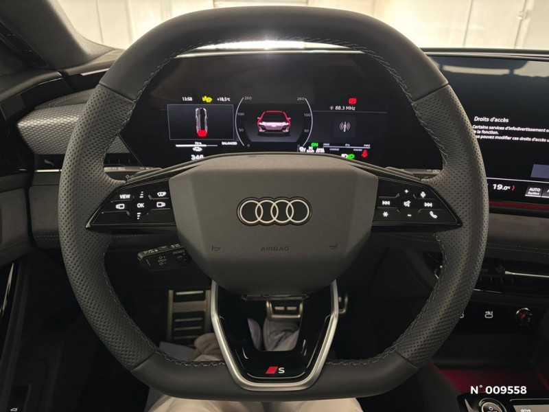 Anneaux Audi illuminés à l'AR / Alerte de sortie de voie / Airbags à l'AV, airbag du passager AV désactivable / Audi Smartphone interface avec accès au store d'applications / Audi Sound System / Audi phone box / Audi Drive Select / Audi connect appel d'urgence & service avec Audi connect remote & control / Audi connect Navigation & Infotainment / Assistant d'évitement et assistant de braquage / Assistant de sortie de stationnement AV / Câble de recharge mode 3 type 2 3 32A / Châssis standard / Bloc de feux AR à LED pro / Boîtiers de rétroviseurs dans la teinte du véhicule / Audi Virtual cockpit plus / Avertissement de contrôle de la banquette AR / Frunk / Fixation de siège pour enfant i-Size côté passager AV et i-Size et Top Tether pour les sièges AR extérieurs / Inserts décoratifs en aluminium mat brossé avec marquage linéaire Anthracite / Hayon de coffre à ouverture et fermeture électrique / Filet de séparation / Ecrous de roues antivol / Chargeur embarqué 11kW AC / Pack extérieur S line / Limiteur de vitesse basé sur la détection de signalisation routière / Préparation pour dispositif d'attelage / Réglage du volant manuel / Pack style brillant / MMI Experience Plus / Jantes Audi Sport, style tripode à 5 branches, Noir Métallisé, tournées brillantes 8,0J/9,0J x 20, pneus 235/45-265/40 R20 / Volant sport multifonction en cuir à 3 branches, aplati en haut et en bas, avec palettes / Seuils de porte avec inserts en aluminium à l'AV, éclairés, avec monogramme S / Vitrage Privacy : lunette AR, vitres de portières AR et vitres latérales AR surteintées / Rétroviseurs extérieurs réglables dégivrants et rabattables électriquement à réglage jour/nuit automatique des 2 côtés / Rétroviseur intérieur à réglage jour/nuit automatique / Sécurité enfant commandée électrique / Volant sport multifonction en cuir à 3 branches, aplati en haut et en bas, avec palettes / Pavillon en tissu noir / Sellerie combinaison tissu "Kaskade"/similicuir avec surpiqûres en cascade / Sièges Sport avec monogramme S / Pédalier et repose-pieds en acier inoxydable / Eléments de la console centrale noir brillant / Assistant de changement de voie et avertissement d'ouverture de porte, assistance de circuit transversal AR et assistant de braquage AR / Assistant de conduite adaptatif plus / Ecran MMI pour passager AV / Alerte de sortie de voie avec pilotage semi-automatique du véhicule en cas d'urgence médicale / Fonction mémoire pour le siège du conducteur et les rétroviseurs extérieurs / Fonction mémoire pour le siège du conducteur et les rétroviseurs extérieurs / Inserts décoratifs en aluminium mat brossé avec marquage linéaire Anthracite / Pack Tech - Système de vision périmétrique - Régulateur de vitesse adaptatif - Park assist plus - Système d'aide au stationnementplus - Projecteurs à LED plus - Assistant feux de route - Assistance au freinage d'urgence - Clé Confort - Clé mobile / Eléments d'équipement intérieur en haut et en bas avec couture contrastée / Airbags latéraux AV et AR avec système d'airbags rideaux et airbag central à AV / Signatures lumineuses numériques / Sonoritééxtérieur sportive e-tron