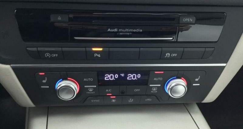 Cylindrée : 1968 cm3 EQUIPEMENTS ABS avec EBV et système d'assistance au freinage d'urgence, Airbag de tête, Airbags frontaux conducteur et passager grand volume à 2 niveaux de de gonflement suivant la gravité du choc airbags latéraux AV et AR intégrés aux dossiers des sièges, Accoudoir central AV pour conducteur et passager avant avec 2 porte/boissons intégrés, ASR : antipatinage, ESP, Supports lombaires sur les sièges AV réglables électriquement, Télécommande de verrouillage centralisé à fréquence radio avec ouverture/fermeture confort pour vitres électriques le coffre et la trappe à carburant, Capacité du réservoir 73 litres, Chauffage des sièges conducteur et passager AV, Essuie/glace AR, Pare/brise en verre feuilleté athermique, Détecteur de pluie activation automatique des essuie/glace en cas d'averse ou autre humidité sur le pare/brise (manette d'essuie/glace en position automatique) adaptation automatique de l'intervalle de balayage à l'intensité de l'averse réglable, Rétroviseurs extérieurs dégivrants et escamotables électriquement, Climatisation automatique confort 4 zones, Appuis/tête AV et AR intégraux, Sièges AV sport à réglages manuels et supports lombaires réglables électriquement., Vitres surteintées : lunette AR custodes et vitres latérales AR, Navigation MMI Plus avec MMI touch, Parking System Plus avec caméra de recul, Sellerie cuir de haute qualité Valcona, Rétroviseurs extérieurs couleur carrosserie, Audi Parking System Plus AV et AR, Rétroviseur intérieur jour/nuit automatique et capteur de pluie et de luminosité, Rétroviseurs extérieurs électriques dégivrants, Projecteurs Xénon Plus incluant lave/phares feux de jour LED, Sorties d'echappement chromées doubles de forme trapézoïdale une à gauche et une à droite, Eclairage intérieur à temporisation à l AV et à l AR avec contacteurs sur toutes les portières configurable MMI, Eclaireurs et catadioptres actifs sur toutes les portières, Ordinateur de bord monochrome, Coffre à bagages à ouverture et fermeture automatiques et assistés électriquement, Pack Brillance, Vitres AV et AR électriques avec fonction d ouverture/fermeture par impulsion sur toutes les vitres es et protection anti/pincement à l AV et à l AR, Ciel de pavillon en tissu assorti à la couleur intérieure, Filet de séparation vertical anti/intrusion coffre/habitacle, EDS: blocage électronique de différentiel, Fixations pour sièges enfants norme ISOFIX aux places latérales AR, Détecteur de luminosité: allume et éteint automatiquement les feux de croisements suivant les conditions de luminosité inclus fonction Coming Home/Leaving Home: allumage automatique/extinction temporisée des phares lorsqu'on arrête et ouvre le véhicule, Direction électromécanique à assistance variable, Audi Hold Assist maintien le véhicule à l'arrêt en côte comme en descente sans limite de temps. Le système est activé par pression sur une touche et permet au conducteur un redémarrage confortable sans actionner le frein à main., Fonction clignotement d'autoroute: une brève impulsion du comodo active trois cycles de clignotement, Démarrage et arrêt du moteur par simple impulsion sur le bouton Start/Stop intégré à la console centrale nécessite simplement d'avoir la clé sur soi, Feux de freinage adaptatif avec déclenchement automatique des feux de détresse, Audi Sound System amplificateur à 6 canaux 10 haut/parleurs dont un central dans le tableau de bord et subwoofer dans le logement de la roue de secours puissance totale 180 W., Vitres athermiques teintées vertes avec bande grise sur la partie supérieure du pare/brise, Jantes en aluminium forgé 10 branches 8Jx17 avec pneus 225/55 R17, Frein de stationnement électromécanique avec fonction Hold Assist désactivation automatique au démarrage et fonction frein de secours sur les 4 roues durant la marche, MMI Radio Plus avec 6.5 incluant 2 lecteurs de cartes SDHC lecteur CD compatible MP3 WMA et AAC fonction TP/Memo et interface bluetooth. Le terminal MMI permet la personnalisation du système de la voiture, Vide/poches dans les portières AV filet de rangement sur le dossier des sièges AV et tiroirs de ran gement sous les sièges AV, Volant multifonction 4 branches en cuir avec airbag grand volume permet de commander : radio télép hone commande vocale et ordinateur de bord, Banquette AR 3 places rabattable 40/60, Levier de vitesses en cuir assorti à la couleur intérieure choisie, Coffre à bagages grand volume à grande largeur de chargement avec filet sur le côté droit 4 oeilletons de fixation sur le plancher prise de courant 12V et baguette décorative style aluminium entre le pare/chocs et l'ouverture du capot du coffre, Rampes de pavillon en aluminium poli, Hayon ou coffre assisté électriquement pour l'ouverture et la fermeture, Contrôle de la pression des pneus avec signaux acoustique et visuel de perte de pression, Couvre/bagages coulissant par glissières le long du montant D, Régulateur de vitesse, Interface Bluetooth avec Bluetooth Audiostreaming,