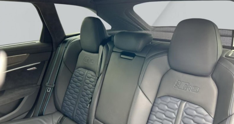 ======= OPTIONS ======= Freins céramique RS avec étriers de frein en Bleu Brillant Pack Assistance pour la ville ======= EQUIPEMENTS DE SERIE ======= Abaissement automatique du rétroviseur extérieur passager en marche arrière Accoudoirs de portes en cuir nappa fin, noir avec coutures en bleu Denim Adaptive air suspension RS Airbags latéraux à l avant et à l arrière incluant système d airbags de tête Alarme antivol Anneaux Audi à l avant et à l arrière ainsi qu inscription RS sur la calandre et sur le capot de coffre en noir brillant Appel d urgence et service Audi connect incluant commande du véhicule Applications décoratives Aluminium racing anthracite Appui lombaire à 4 axes pour les sièges avant, réglage électrique, horizontal et vertical Audi connect avec carte SIM intégrée (e-SIM) et licence d'utilisation pour 3 ans Audi Drive Select Audi music interface (avant et arrière) Audi parking system plus avec indicateur de zone environnante Audi Phone Box Audi pre sense basic Audi pre sense front Audi smartphone interface Audi virtual cockpit Augmentation de la vitesse de pointe à 280 km h Avertisseur de franchissement de ligne Badges extérieurs avec identification du modèle Bang & Olufsen Premium Sound System avec son 3D Banquette arrière 3 places 40 20 40 Boitiers de rétroviseurs extérieurs noir brillant Cache moyeu avec logo RS 25 ans Chauffage des sièges avant Ciel de pavillon en tissu noir Clé confort avec déverrouillage du coffre par capteur, avec safelock Climatisation automatique confort 4 zones Colonne de direction réglable électriquement Commande de désactivation d'airbag passager avant Contrôle de pression des pneus : Affichage sur le système d information du conducteur et le MMI des pressions et températures de chaque pneu pendant le trajet Côtés de la console centrale en Alcantara, noir avec coutures contrastantes en bleu Denim Direction intégrale dynamique Eclairage d'entrée LED avec projection logo RS 25 ans sur les portes avant Ecrous de roues antivol et indicateur de desserrage d écrous Fixation pour sièges enfants ISOFIX et Top Tether pour les places arrière extérieures Fixation pour sièges enfants ISOFIX pour le siège passager avant avec commande de sécurité enfant électrique sur les portières arrière Freins en acier RS avec étriers de frein en rouge brillant Garnitures de porte en Alcantara, noir avec emblème RS 25 ans Hayon de coffre à ouverture et fermeture électriques Jante de volant en Alcantara, coutures noires et contrastées en bleu Denim Jantes en aluminium coulé, style 5 branches trapézoïdales en V, noir anthracite brillant, polies brillant 10,5 J x 22 avec pneus 285 30 R 22 Lave-phares haute pression Motorisations avec technologie hybride léger (Mild Hybrid) Navigation MMI avec MMI touch response Outillage de bord Pack Eclairage contour ambiance multicolore Pack Non fumeur Pack Rangement Pare-Brise feuilleté Athermique Pare-soleil coulissants avec miroirs de courtoisie éclairés intégrés Pédalier et repose-pied en acier inoxydable Peinture vernie Gris Nardo Phares HD Matrix LED, feux arrière à LED, éclairage laser Audi, scénarios de lumière RS clignotants dynamiques Pommeau de changement de vitesse garni d alcantara noir, surpiqûres bleu Denim Préparation pour crochet d'attelage Rampes de pavillon noires Réception radio numérique Régulateur et limiteur de vitesse Réservoir de carburant à capacité étendue (73 litres) Rétroviseur intérieur à position nuit automatique, sans encadrement Rétroviseurs extérieurs rabattables électriquement, électrochromatiques (jour nuit), à mémoire Rétroviseurs extérieurs réglables électriquement et dégivrants avec clignotants à LED intégrés, miroir plan, convexe ou asphérique, incluant buses de lave-glace dégivrantes Set de réparations pour pneus Sièges avant Easy Access Sièges avant réglables électriquement avec fonction mémoires pour le siège conducteur Sièges Sport RS à structure alvéolée Soufflet de changement de vitesse en cuir noir, surpiqûres bleu Denim Système de localisation antivol Audi connect Tapis de sol en noir avec bordure en noir, passepoil en Alcantara, bleu cobalt et coutures contrastées en bleu Denim, broderie avec le logo RS 25 ans Toit panoramique en verre Touches de commande façon verre en noir avec réponse haptique et style aluminium étendu Transmission quattro avec différentiel sport Trousse de secours, triangle de présignalisation et veste de sécurité Vision périphérique (360°) : quatre caméras grand angle couvrent l'ensemble de la zone autour du véhicule Vitrage acoustique pour les vitres de portières avant Vitrage acoustique pour les vitres latérales Vitres surteintées (Privacy glass) : Lunette arrière, vitres de portières arrière et vitres latérales arrière surteintées Volant cuir Sport multifonctions plus 3 branches avec méplat et palettes de commande au volant Nb. Vitesses : 8 Conso Mixte : l/100