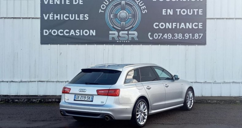 Audi A6 Avant V6 3.0 TDI DPF 204 Quattro Ambiente S tronic A break, gris clair, 12 cv, 5 portes, couleur intérieure : noir, première mise en circulation le 17/10/2013, garantie 6 mois. Disponible en stock, Véhicule en dépôt vente. Garantie 6 mois incluse. Extension possible jusqu'à 12 mois (sur devis). Rien à prévoir, suivi complet. Prix hors carte grise. Sous réserve d'erreur dans l'annonce. Chez RSR MOTORS, l'achat de votre véhicule est simplifié : nous prenons en charge toutes les formalités d'immatriculation, rapidement et gratuitement. 5 places OPTIONS ET EQUIPEMENTS : Extérieur : - rétroviseurs électriques - vitres électriques - vitres surteintées - phares xenon - phares de jour (feux diurne) - jantes 17 pouces Intérieur et confort : - accoudoir central - ordinateur de bord - volant multifonctions - volant sport - bluetooth - stop & start - radio CD MP3 - climatisation automatique - intérieur tissu Sécurité : - détecteur de pluie - fermeture centralisée - rétroviseurs dégivrants - ABS - airbags frontaux - airbags latéraux - anti-patinage - ESP - frein parking automatique - phares antibrouillard - ASR - aide au freinage d'urgence - fixation ISOFIX - régulateur de vitesse Autres équipements et informations : - consommation extra urbaine : 5,10 litres - consommation urbaine : 6,80 litres - consommation mixte : 5,80 litres - puissance réelle : 204 ch - émission CO2 : 152 g/km - Puissance kilowatt : 150 kw - roue de secours - verrouillage à distance - accoudoir central arrière - Sieges arrières rabattable - airbag coté passager - CD - essuie-glace arrière - phares halogènes - clignotants LED - lunette arrière dégivrante - tapis de sol - Protection proactive des occupants - 3eme feu stop - 3eme feu stop integre au becquet de pavillon - Accoudoir central AV coulissant et reglable en inclinaison - avec 2 porte-boissons integres - Accoudoir central AV et AR en cuir - Accoudoir central AV pour conducteur et passager avant - Airbag de tete - Applications aluminium autour des diffuseurs d'air - de l'ecran MMI - sur la commande du frein de - Applications decoratives en aluminium micrometallique - Applications decoratives en vernis retro-reflechissant - Appuis-tete AV et AR integraux - Audi Drive Select avec mode Efficiency (Permet differents reglages) - Audi Hold Assist - maintien le vehicule a l'arret en cote comme en descente - sans limite de temps. - Audi Music Interface - Audi Parking System Plus AV et AR - Audi Sound System - Augmentation de 10 Litres de la capacite du reservoir - Banquette AR 3 places rabattable 40/60 - Boite a gants grand volume - eclairee et verrouillable - Calandre Audi Singleframe chromee avec lamelles horizontales laquees noir - Calandre Singleframe laquee noir avec lamelles horizontales chromees - Capacite du reservoir : 75 litres (sauf moteur Clean diesel et hybride limites a 73 litres) - Carrosserie hybride en aluminium - Ceintures de securite 3 points a enrouleur a toutes les places avec pretensionneur reversible - Cendrier et allume-cigare a l' AV et a l' AR - Ciel de pavillon en tissu assorti a la couleur interieure - Clignotants avec fonction autoroute : une breve impulsion sur la manette active - Coffre a bagages grand volume a grande largeur de chargement avec filet sur le cote droit - Colonne de direction reglable en hauteur et profondeur - Controle de la pression des pneus avec signaux acoustique et visuel de perte de pression - Controle de pression des pneumatiques avec signaux acoustique et visuel de perte de pression - Couvre-bagages coulissant automatique par glissieres le long du montant - Couvre-bagages coulissant par glissieres le long du montant D - Detecteur de luminosite: allume et eteint automatiquement les feux de croisements suivant les - Direction electromecanique a assistance variable - Double verin pneumatique d'ouverture de hayon - Eclairage interieur a temporisation a l AV et a l AR avec contacteurs sur toutes les portieres - Eclaireurs et catadioptres actifs sur toutes les portieres - Ecrous antivol - EDS: blocage electronique de differentiel - Ergots de maintien pour sacs a provisoins - Feux de freinage adaptatif avec declenchement automatique des feux de detresse - Filet de separation vertical anti-intrusion coffre/habitacle - Fonction clignotement dautoroute: une breve impulsion du comodo active trois cycles de clignotement - Gestionnaire de batterie - Identification du modele a l' AR - inscription quattro a l'AR - sur la calandre et sur le tableau de - Jantes en aluminium forge 6 branches - 8Jx17 avec pneus 225/55 R17 - Levier de vitesses en cuir assorti a la couleur interieure choisie - Livre de bord avec etui - Livre de bord avec etui en cuir - Pare-brise en verre feuillete athermique - Pare-soleil rabattables et pivotants cote conducteur et passager AVavec miroir de courtoisie eclaire - Preparation pour crochet d'attelage - Prise AUX-IN - Projecteurs antibrouillard halogenes integres au bouclier AV - Projecteurs antibrouillards integres au bouclier AV - Protections laterale anticollision - Rampes de pavillon en aluminium poli - Recuperation d'energie - generee lors des phases de freinage ou de deceleration et systeme Start/Stop - Regulateur de vitesse - maintient constante n'importe quelle vitesse a partir d'environ 30 km/h - Retroviseur interieur jour/nuit automatique et capteur de pluie et de luminosite - Retroviseurs exterieurs electriques degivrants. - Sellerie tissu Effet - Signal sonore pour oubli d'extinction des feux - Sorties d'echappement a gauche et a droite - Sorties d'echappement chromees doubles - une a gauche une a droite - Tapis reversible pour coffre (velours et gomme) - Temoins de controle pour: Airbag - ABS - ESP - ASR - Adaptive air suspension - EDS - frein de - Triangle de secours - trousse de secours et outillage de bord - Vide-poches dans les portieres AV - filet de rangement sur le dossier des sieges AV et tiroirs de ran - Vitres athermiques teintees vertes avec bande g