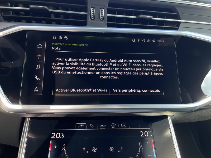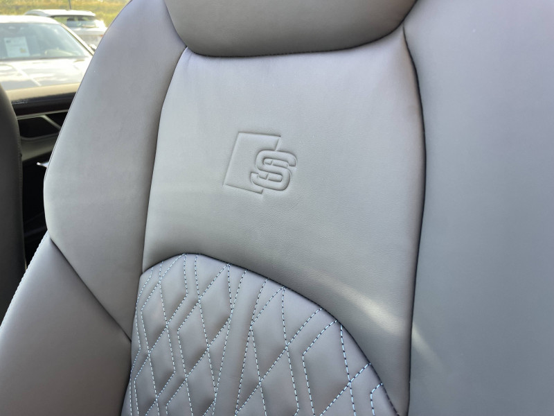 Applications décoratives en aluminium brossé mat foncé / Capot de coffre à ouverture automatique (fermeture manuelle) / Feux AR à LED avec feux de recul et feux AR de brouillard intégrés / Interface Bluetooth Connexion des téléphones portables compatibles Bluetooth via l'interface véhicule, fonction mains libres dans le véhicule via microphone de plafond et HP, possibilité de connexion de 2 téléphones (2 × HFP/PBAP), streaming audio Bluetooth (A2DP), affichage des SMS/e-mails (MAP) entrants, commande via les systèmes d'autoradio/navigation, du volant multifonction ou via la commande vocale / Jantes en aluminium coulé multibranches gris contrasté 8,5J x 19'' avec pneus 245/45 R 19 / Moulures de seuil avec insert en aluminium AV/AR, éclairées, avec inscription "S" à l'AV / Navigation MMI plus avec MMI touch response / Pack Eclairage intérieur à LED - En plus de l'éclairage intérieur de série: - Éclairage des seuils de portières AR - Éclairage d'ambiance du tissu des portières AV/AR - Éclairage périphérique dans les poignées de portières extérieures AV/AR - Éclairage d'ambiance du tableau de bord / Pack Esthétique Noir Apporte une touche extérieure noire au niveau de l'Audi singleframe, des baguettes décoratives sur les vitres latérales et du pare-chocs AV et AR / Pack extérieur Brillance - Baguette sur les appuis de vitre en aluminium anodisé - Revêtement Noir brillant sur les montants de pavillon centraux - Baguette des feux AR en chrome / Pack Non fumeur - Une prise 12 volts AV et AR / Pack Rangement - 2 porte-boissons dans l'accoudoir central AR - Filet de coffre à fixer aux oeilletons de fixation sur le plancher du coffre - 2 autres vestes de sécurité pour les passagers AR / Préparation pour crochet d'attelage / Rétroviseur intérieur jour/nuit automatique sans encadrement (Frameless) / Rétroviseurs extérieurs réglables, dégivrants et rabattables électriquement avec fonction rabat automatique pour le rétroviseur côté passager AV lors des manoeuvres, clignotants à LED intégrés / Volant Sport contour en cuir avec multifonction, palettes de changement de vitesse et méplat / Airbags latéraux à l'AV et système d'airbags de tête / Appel d'urgence et service Audi connect incluant commande de véhicule / Appui lombaire à 4 axes pour les sièges AV, réglage électrique, horizontal et vertical / Appuie-tête à AV pour sièges AV réglables manuellement en hauteur / Assistant de feux de route / Audi Connect avec carte SIM intégrée (e-SIM) et licence d'utilisation pour 3 ans / Audi Drive Select Permet de sélectionner différents modes de conduite: Efficiency, Confort, Dynamic, Lift, Individual. Les systèmes et équipements du véhicules s'adaptent suivant le mode sélectionné / Audi Music Interface à l'AV et l'AR / Audi Parking System Plus / Audi Pre Sense Basic / Audi Pre Sense front / Audi smartphone interface / Badges extérieurs avec identification du modèle et inscription de la puissance/technologie / Boîtiers de rétroviseurs extérieurs laqués Noir brillant / Buses de lave-glace degivrantes / Caméra multifonction pour système d'assistance à la conduite / Ciel de pavillon en tissu noir / Cléà fréquence radio (sans safelock) / Commande de désactivation de l'airbag passager AV / Câble de recharge pour téléphone portable / Eclairage intérieur / Ecrous de roues antivol et indicateur de desserrage d'écrous / Etriers de freins rouges / Fixation pour sièges enfants ISOFIX et Top Tether pour les places AR extérieures / Outillage de bord et cric / Pare-brise en verre de sécurité feuilleté athermique / Pédalier et repose-pieds en acier inoxydable / Rampes de pavillon anodisées / Régulateur de vitesse incluant limiteur de vitesse / Set de réparation pour pneus / Système audiophonique Audi / Tableau de bord et revêtement de porte en deux pièces et une/plusieurs couleurs / Tapis complémentaires avec double passepoil / Trousse de secours, triangle de présignalisation et veste de sécurité / Vitrage Privacy (vitres AR surteintées) / Vitres athermiques sur les côtés et à l'AR lunette AR dégivrante, avec minuterie