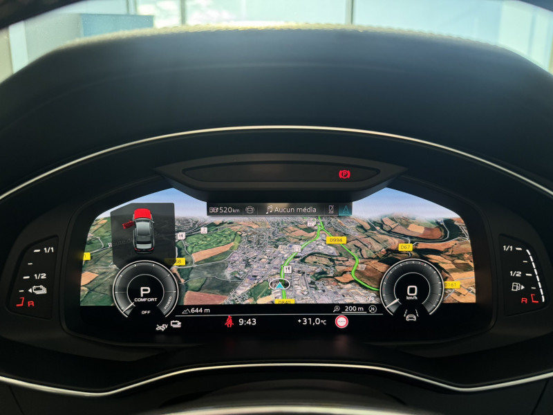 Applications décoratives en aluminium brossé mat foncé / Audi Virtual Cockpit / Capot de coffre à ouverture automatique (fermeture manuelle) / Feux AR à LED avec feux de recul et feux AR de brouillard intégrés / Interface Bluetooth Connexion des téléphones portables compatibles Bluetooth via l?interface véhicule, fonction mains libres dans le véhicule via microphone de plafond et HP, possibilité de connexion de 2 téléphones (2 × HFP/PBAP), streaming audio Bluetooth (A2DP), affichage des SMS/e-mails (MAP) entrants, commande via les systèmes d?autoradio/navigation, du volant multifonction ou via la commande vocale / Jantes, style dynamique à 5 bras, Gris Platine Pneus : 245/45 R19 / Moulures de seuil avec insert en aluminium AV/AR, éclairées, avec inscription "S" à l'AV / Navigation MMI plus avec MMI touch response / Préparation pour crochet d'attelage / Rétroviseur intérieur jour/nuit automatique sans encadrement (Frameless) / Rétroviseurs extérieurs réglables, dégivrants et rabattables électriquement avec fonction rabat automatique pour le rétroviseur côté passager AV lors des manoeuvres, clignotants à LED intégrés / Touches de commande façon verre en Noir avec réponse haptique incluant style aluminium étendu / Volant Sport contour en cuir avec multifonction, palettes de changement de vitesse et méplat / Airbags latéraux à l'AV et système d'airbags de tête / Appel d'urgence et service Audi connect incluant commande de véhicule / Appui lombaire à 4 axes pour les sièges AV, réglage électrique, horizontal et vertical / Appuie-tête à AV pour sièges AV réglables manuellement en hauteur / Assistant de feux de route / Audi Connect avec carte SIM intégrée (e-SIM) et licence d'utilisation pour 3 ans / Audi Drive Select Permet de sélectionner différents modes de conduite: Efficiency, Confort, Dynamic, Lift, Individual. Les systèmes et équipements du véhicules s'adaptent suivant le mode sélectionné / Audi Music Interface à l'AV et l'AR / Audi Parking System Plus / Audi Pre Sense Basic / Audi Pre Sense front / Audi smartphone interface / Badges extérieurs avec identification du modèle et inscription de la puissance/technologie / Boîtiers de rétroviseurs extérieurs couleur carrosserie / Buses de lave-glace degivrantes / Caméra multifonction pour système d'assistance à la conduite / Ciel de pavillon en tissu noir / Cléà fréquence radio (sans safelock) / Commande de désactivation de l'airbag passager AV / Câble de recharge pour téléphone portable / Eclairage intérieur / Ecrous de roues antivol et indicateur de desserrage d'écrous / Eléments de l?habitacle supérieurs en matériaux synthétiques Tableau de bord et rebords de portières en matériaux synthétiques / Fixation pour sièges enfants ISOFIX et Top Tether pour les places AR extérieures / Outillage de bord et cric / Pare-brise en verre de sécurité feuilleté athermique / Pédalier et repose-pieds en acier inoxydable / Rampes de pavillon anodisées / Régulateur de vitesse incluant limiteur de vitesse / Réservoir AdBlue à capacitéétendue (24 litres) / Set de réparation pour pneus / Système audiophonique Audi / Tableau de bord et revêtement de porte en deux pièces et une/plusieurs couleurs / Tapis complémentaires avec double passepoil / Technologie hybride léger - Mild-Hybrid / Trousse de secours, triangle de présignalisation et veste de sécurité / Vitres athermiques sur les côtés et à l'AR lunette AR dégivrante, avec minuterie