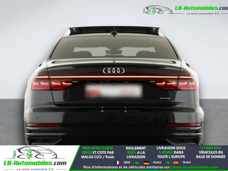 Référence : 1209911 Vos Avantages chez LB-AUTOMOBILES.com / Prix affiché TTC Livré hors carte grise / Livraison sous 10 jours dans toute la France hors 31 / Pas d?avance de frais paiement du véhicule 100% à la livraison par virement. Audi A8 Neuf remisée, Audi A8 Occasion Toulouse Beaupuy 31850, Audi A8 Véhicule sorti de réseau collaborateur, Audi A8 import, Audi A8 importateur, Audi A8 Livraison possible dans toute la France sous 5 jours, Audi A8, Audi A8 Location Option Achat, Audi A8 LLD, Audi A8 Longue Durée, Audi A8 TVA récupérable. Possibilité d'extension de garantie 12, 24,36 mois, Pour tout autres voitures import neufs ou occasions collaborateur fortement remisée, Mandataire Audi, Mandataire BMW, Mandataire Volkswagen, Mandataire Mercedes, Mandataire Peugeot Espagne, Mandataire Renault Espagne, Porsche import, Mandataire Citroën Espagne, Mandataire Seat Espagne, n'hésitez pas à nous contacter. « Sous réserve de vente préalable et erreur de saisie » Principaux équipements : - 4x4 - ABS - Accoudoir - Affichage tête haute - Android Auto - Antidémarrage - Apple CarPlay - Assistance au freinage d'urgence - Avertisseur de franchissement de ligne - Bluetooth - Boîte de vitesses robotisée - Carnet d'entretien - Chargement par induction pour smartphones - Chauffage auxiliaire - Cockpit numérique - Contrôle de la pression des pneus - Direction assistée - Éclairage adaptatif de virage - Éclairage d'ambiance - Écran tactile - ESP - Fermeture centralisée - Feux de jour LED - Garantie - GPS - Hayon électrique - Isofix - Jantes alliage - Kit de réparation d'urgence des pneus - Kit mains libres - Ordinateur de bord - Pack sport - Phares laser - Pneus été - Port USB - Radio DAB - Réglage électrique des sièges - Régulateur de vitesse adaptatif - Rétroviseur extérieur électrique - Sièges arrières chauffants électriques - Sièges chauffants - Sièges sport - Streaming musical intégré - Support lombaire - Suspension pneumatique - Système antipatinage - Système d'alarme - Système d'appel d'urgence - Système d'avertissement de la distance - Système de limitation de la vitesse - Système de nettoyage des phares - Système de reconnaissance des panneaux de signalisation - Système de sonorisation - Système Stop & Start - Toit panoramique - Tuner/radio - Véhicule non-fumeur - Ventilation du siège - Verrouillage centralisé sans clé - Vitres électriques - Volant chauffant - Volant en cuir - Volant multifonction - WLAN / point d'accès Wi-Fi