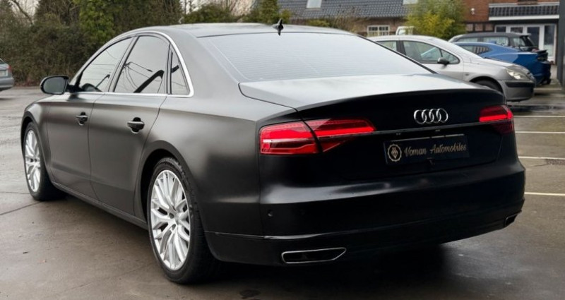 Voman Automobiles vous propose à la vente cette Audi A8 V6 3.0 TDI 262 DPF Clean Diesel Tiptronic 8 Quattro Avus Extended berline sur équipé, noir satiné covering, 16 cv, première mise en circulation le 17/01/2017 193 000 KM. 22 290 € Garantie 12 mois inclus, entretiens et nouveau contrôle technique 5 places Possibilité de retirer le covering noir satiné à vos frais, le véhicule est noir métallisée OPTIONS ET ÉQUIPEMENTS : Audio - Télécommunications : - Audi Music Interface - Audi Phone Box - Audi Premium Tracking System: Systeme d'immobilisation et de localisation par satellite - Bose Surround Sound - MMI interface multimedia - GPS - écran tactile - système de navigation Conduite : - Adaptive air suspension - Audi Drive Select - Audi Hold Assist - Audi Park Assist - EDS: blocage électronique de différentiel - Indicateur de limitation de vitesse assiste par camera - Stop & Start - affichage tête haute - clé mains-libres - détecteur de pluie - régulateur de vitesse Extérieur : - Audi Matrix LED - Capot de coffre a ouverture et fermeture electriques - Coffre a bagages a ouverture automatique - Feux diurnes - Jantes Audi Sport en aluminium - Phares AV avec technologie Audi Matrix LED - feux de stop et clignotants AR a LED - Self close - rétroviseurs électriques - toit ouvrant Intérieur : - Banquette AR 3 places - Cendrier et allume-cigare éclairés a l'AV et a l'AR - Climatisation automatique confort avec ventilation indirecte - Direction électromécanique a assistance variable - Eclairage d'ambiance intérieure et extérieur a LED : module de pavillon - Pack Coffre - Pack Eclairage - Pare-brise en verre feuilleté athermique - Rétroviseur intérieur jour/nuit automatique - Sièges AV a réglages électriques à mémoire - Sièges AV avec fonction massage - Sièges AV chauffants et refroidissant - Vide-poches dans l'accoudoir central a l'AV et a l'AR - Vitres athermiques teintées vertes - spots de lecture AV/AR - Accoudoir central AR - accoudoir central - climatisation : automatique - fermeture centralisée - intérieur : cuir - ordinateur de bord - pack cuir - rideaux pare-soleil - trappe à ski - verrouillage à distance - vitres électriques - volant cuir Pack : - Fermeture assistee du coffre - Inserts de seuils de portes en aluminium - Protections laterale anticollision - Triangle de presignalisation - frein de stationnement - trousse de secours et outillage de bord - ASR - clignotants LED - frein parking automatique - lunette arrière dégivrante - tapis de sol - volant multifonctions Sellerie : - Sellerie en cuir Valcona Sécurité : - Alarme antivol avec protection anti-demarrage électronique - Audi Pre Sense Plus - Audi Side Assist incluant Audi pre sense AR - ESC/ASR - Signal sonore pour oubli d'extinction des feux - ABS - Protection proactive des occupants - airbag coté passager - airbags frontaux - anti-patinage - fixations ISOFIX - roue de secours - répartiteur électronique de freinage Autres équipements et informations : - 2 feux de recul blancs - 5 HP a l'AV et 4 HP a l'AR et un subwoofer dans - 9Jx20 avec pneus 265/40 R20 - Applications aluminium autour des diffuseurs d'air - Applications decoratives (partie inferieure) noir brillant •? ?Polissage, vitres teintées, traitement céramique disponibles. •? ?Paiement en plusieurs fois possible. •? ?Financement et LOA disponibles pour les véhicules de moins de 5 ans. •? ?Carte grise faite sur place. ? Sous réserve d’erreurs de saisie ou d’informations incorrectes. - ? VOMAN AUTOMOBILES 9 Route Nationale 59114 Saint-Sylvestre-Cappel