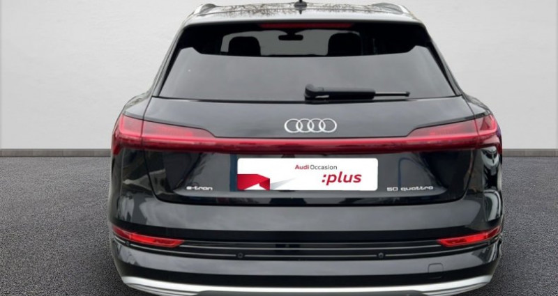 Nb. Vitesse : 1 - 2ème trappe de charge (côté passager AV) - Vitres AR surteintées (Privacy glass) - Touches de commande façon verre en noir avec retour haptique - Applications décoratives en aluminium mat Brossé Foncé - Audi Virtual cockpit Plus - Climatisation automatique confort 2 zones - Climatisation stationnaire confort - Eclairage au sol à LED avec projection du logo e-tron (sur portières AV et AR) - Eclairage contour/ambiance LED multicolore - Jantes en aluminium coulé style 5 branches, 9Jx20, Pneus 255/50 R20 - Moulures de seuil éclairées avec insert en aluminium pour portières AV et AR - Navigation & Infotainment Audi connect - Navigation MMI plus avec MMI touch response - Pack Assistance Route - Pack Assistance Stationnement - Pack Assistance Ville - Pack Brillance - Pack Non fumeur - Pack Rangement et Coffre *** Avec : 2 Porte-boissons dans l'accoudoir central a l´AR *** Avec : Revêtement de vide-poches dans le logement de la roue de secours *** Avec : Filets latéraux dans le coffre *** Avec : Filet à bagages pour le transport d'objets tendeur araignée - Partie supérieure du tableau de bord en cuir - Projecteurs à technologie LED - Préparation pour crochet d'attelage - Rampes de pavillon en Aluminium, anodisées - Rétroviseur intérieur jour/nuit automatique sans encadrement (Frameless) - Rétroviseurs extérieurs avec commutation jour/nuit automatique des deux côtés et fonction mémoires - Rétroviseurs extérieurs avec les fonctions suivantes : réglables électriquement, dégivrants, avec clignotants à LED intégrés - Sellerie Cuir Valcona - Volant en cuir à branches doubles avec multifonction et palettes de réglages - Accoudoir central AV confort avec inclinaison réglable et coulissant en longueur - Adaptive Air Suspension - Affichage de contrôle de pression des pneus - Airbags latéraux à l'AV et système d'airbags de tête - Appel d'urgence et service Audi connect incluant commande de véhicule e-tron - Applications décoratives en ronce de noyer naturel - Appui lombaire à 4 axes pour les sièges AV (réglage électrique horizontal et vertical du soutien lombaire) - Appuie-tête confort (réglables en hauteur et distance) - Assistant de feux de route - Audi Music Interface à l'AV et l'AR - Audi parking system plus avec indicateur de zone environnante - Audi phone box - Audi Pre Sense Basic - Audi Pre Sense front - Audi smartphone interface - Avertissement de franchissement de ligne - Boîtiers de rétroviseurs extérieurs dans la couleur de la carrosserie - Caméra frontale multifonction pour systèmes de sécurité active du véhicule - Capot de coffre à ouverture et fermeture électriques - Clé Audi connect - Clé confort incluant déverrouillage du coffre par capteur (poignée virtuelle) - Commande de désactivation de l'airbag passager AV - Câble de charge mode 3 / 11 kW - Direction progressive - Ecrous de roues antivol et indicateur de desserrage d'écrous - Etriers de frein laqués orange e-tron - Fixation pour sièges enfants ISOFIX et Top Tether pour les places AR extérieures - Fixation pour sièges enfants ISOFIX pour le siège passager AV - Interface Bluetooth - MMI Radio plus avec MMI touch response - Outillage de bord - Prise de recharge Combo 2 - Prise industrielle CEE 32 A / 400 V - Reconnaissance par caméra des indicateurs de limitation de vitesse/panneaux de circulation - Réception radio numérique (DAB) - Régulateur/Limiteur de vitesse - Set de réparation pour pneus - Sièges AV chauffants - Sièges AV normaux - Sièges AV Sport - Sièges AV à réglage électrique avec fonction mémoire pour le siège du conducteur et les rétroviseurs extérieurs - Système audiophonique Audi - Système de recharge e-tron compact - Tapis de sol AV/AR - Touches de commande Noir mat - Transmission intégrale e-quattro - Trousse de secours avec triangle de présignalisation - Vitres athermiques : teintées vertes, lunette AR dégivrante, avec minuterie