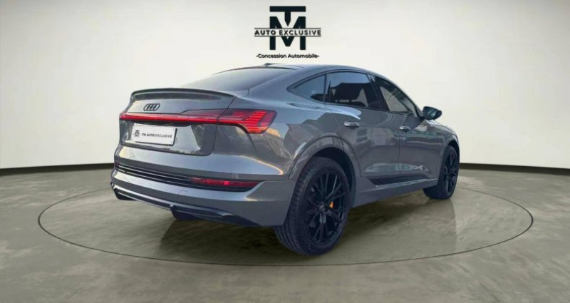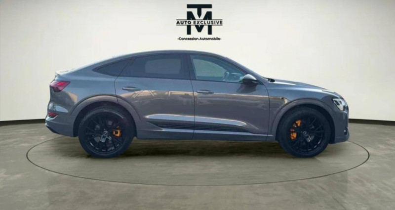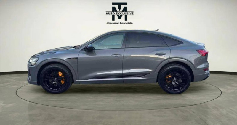 Nb. Vitesse : 1 - Accoudoir central AV confort avec inclinaison réglable et coulissant en longueur - Adaptive Air Suspension - Affichage de contrôle de pression des pneus - Affichage tête haute - Airbags latéraux à l'AV et système d'airbags de tête - Appel d'urgence et service Audi connect incluant commande de véhicule e-tron - Applications décoratives en aluminium brossé mat foncé - Appui lombaire à 4 axes pour les sièges AV (réglage électrique horizontal et vertical du soutien lombaire) - Audi Music Interface - Audi parking system plus avec indicateur de zone environnante - Audi Pre Sense Basic - Audi Pre Sense front - Audi smartphone interface - Audi Virtual Cockpit Plus - Avertissement de franchissement de ligne - Bang & Olufsen Premium Sound System avec son 3D Restitution sonore grâce à 17 HP incluant des HP au son 3D, 1 HP central et un subwoofer, ainsi qu'un amplificateur à 16 canaux d'une puissance totale de 730 watts - Boîtiers de rétroviseurs extérieurs dans la couleur de la carrosserie - Câble de recharge mode 3 pour recharge publique 22 kW - Caméra de recul - Caméra frontale multifonction pour systèmes de sécurité active du véhicule - Capot de coffre à ouverture et fermeture électriques - Ciel de pavillon en tissu noir - Clé à fréquence radio (sans safelock) - Clé Audi connect - Clé confort incluant déverrouillage du coffre par capteur (poignée virtuelle) - Climatisation automatique confort 2 zones - Commande de désactivation de l'airbag passager AV - Direction progressive - Eclairage au sol à LED avec projection du logo e-tron (sur portières AV et AR) - Ecrous de roues antivol et indicateur de desserrage d'écrous - Etriers de frein laqués Orange - Fixation pour sièges enfants ISOFIX et Top Tether pour les places AR extérieures - Fixation pour sièges enfants ISOFIX pour le siège passager AV - Interface Bluetooth - Jantes en aluminium coulé style 5 branches dynamiques gris contrasté partiellement polies, 9Jx20, Pneus 255/50 R20 - MMI Radio plus avec MMI touch response - Moulures de seuil de portes éclairées avec insert en aluminium AV/AR et inscription S à l'AV - Navigation & Infotainment Audi connect - Navigation MMI plus avec MMI touch response - Outillage de bord - Pack Brillance - Pack design intérieur S line - Pack Extérieur S line - Pack Non fumeur - Pack Rangement et Coffre - Partie supérieure du tableau de bord et éléments de l'habitacle inférieurs en similicuir - Préparation pour crochet d'attelage - Prise de recharge Combo 2 - Prise USB pour les passagers AR (prises USB embarquées au format Type C) - Projecteurs à technologie LED - Rampes de pavillon en Aluminium, anodisées - Réception radio numérique (DAB) - Récupération d'énergie - Régulateur/Limiteur de vitesse - Rétroviseur intérieur jour/nuit automatique sans encadrement (Frameless) - Rétroviseurs extérieurs avec commutation jour/nuit automatique des deux côtés et fonction mémoires - Rétroviseurs extérieurs avec les fonctions suivantes : réglables électriquement, dégivrants, avec clignotants à LED intégrés - Sellerie cuir/Dinamica Fréquence - Set de réparation pour pneus - Sièges AV à réglages électriques et à mémoire pour siège conducteur - Sièges AV Sport - Suspension Adaptative Pneumatiques Sport - Système audiophonique Audi - Système avancé de contrôle de pression des pneus - Système AVAS de sonorisation extérieure du véhicule - Système de recharge compact - Tapis complémentaires AV/AR - Toit panoramique en verre - Touches de commande façon verre en noir avec retour haptique - Transmission intégrale e-quattro - Trousse de secours avec triangle de présignalisation - Vitres AR surteintées (Privacy glass) - Vitres athermiques : teintées vertes, lunette AR dégivrante, avec minuterie - Volant multifonctions Sport en cuir design3 branches avec méplat et zones de préhension élargie