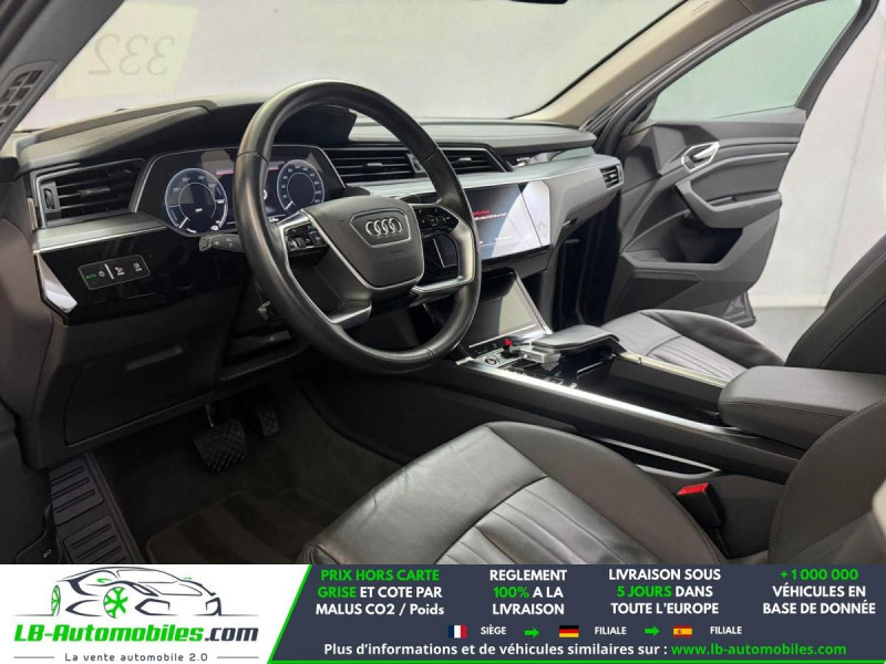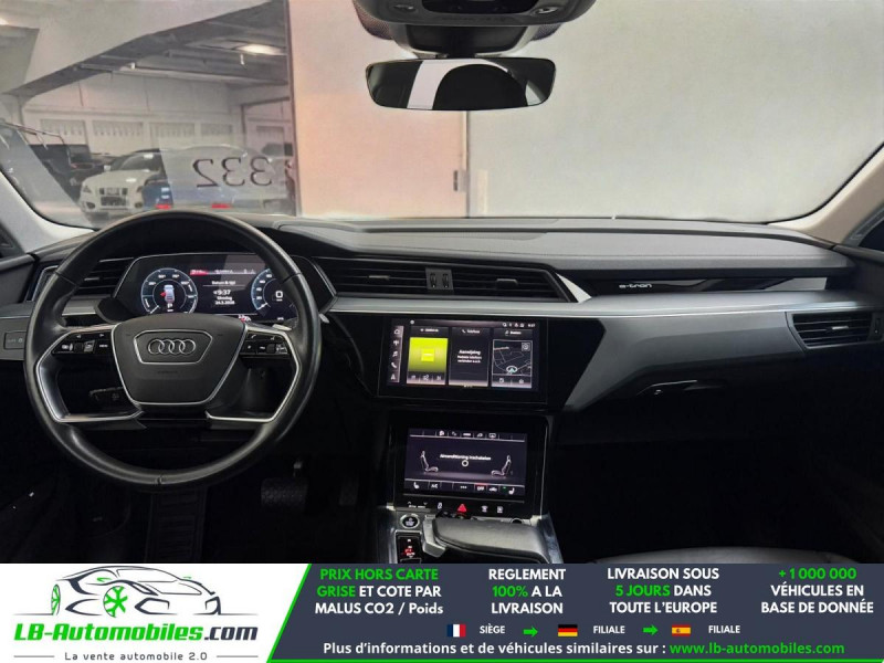 Référence : 1213569 Vos Avantages chez LB-AUTOMOBILES.com / Prix affiché TTC Livré hors carte grise / Livraison sous 10 jours dans toute la France hors 31 / Pas d?avance de frais paiement du véhicule 100% à la livraison par virement. Audi E-tron Neuf remisée, Audi E-tron Occasion Toulouse Beaupuy 31850, Audi E-tron Véhicule sorti de réseau collaborateur, Audi E-tron import, Audi E-tron importateur, Audi E-tron Livraison possible dans toute la France sous 5 jours, Audi E-tron, Audi E-tron Location Option Achat, Audi E-tron LLD, Audi E-tron Longue Durée, Audi E-tron TVA récupérable. Possibilité d'extension de garantie 12, 24,36 mois, Pour tout autres voitures import neufs ou occasions collaborateur fortement remisée, Mandataire Audi, Mandataire BMW, Mandataire Volkswagen, Mandataire Mercedes, Mandataire Peugeot Espagne, Mandataire Renault Espagne, Porsche import, Mandataire Citroën Espagne, Mandataire Seat Espagne, n'hésitez pas à nous contacter. « Sous réserve de vente préalable et erreur de saisie » Principaux équipements : - 4x4 - ABS - Accoudoir - Antidémarrage - Assistance au freinage d'urgence - Assistance de démarrage en côte - Assistant de sortie de stationnement - Avertisseur de franchissement de ligne - Bluetooth - Boîte de vitesses robotisée - Capteur de lumière - Capteur de pluie - Carnet d'entretien - Chargement par induction pour smartphones - Chauffage auxiliaire - Cockpit numérique - Commande vocale - Contrôle de la pression des pneus - Direction assistée - Éclairage adaptatif - Éclairage d'ambiance - Écran tactile - ESP - Fermeture centralisée - Feux de jour LED - Garantie - GPS - Hayon électrique - Isofix - Jantes alliage - Kit de préparation pour système de navigation - Kit de réparation d'urgence des pneus - Kit mains libres - Lecteur CD - Ordinateur de bord - Package hiver - Phare antibrouillard - Phares LED - Pompe à chaleur - Port USB - Radio DAB - Réglage électrique des sièges - Réglage électrique des sièges avec fonction mémoire - Régulateur de vitesse - Rétroviseur extérieur électrique - Rétroviseur intérieur anti-éblouissement automatique - Rétroviseurs extérieurs rabattables électriquement - Sièges chauffants - Streaming musical intégré - Support lombaire - Suspension adaptative - Suspension pneumatique - Suspension sport - Système antipatinage - Système d'appel d'urgence - Système d'avertissement de la distance - Système de détection de la fatigue - Système de limitation de la vitesse - Système de nettoyage des phares - Système de reconnaissance des panneaux de signalisation - Système de sonorisation - Tuner/radio - Véhicule non-fumeur - Verrouillage centralisé sans clé - Vitres électriques - Volant en cuir - Volant multifonction