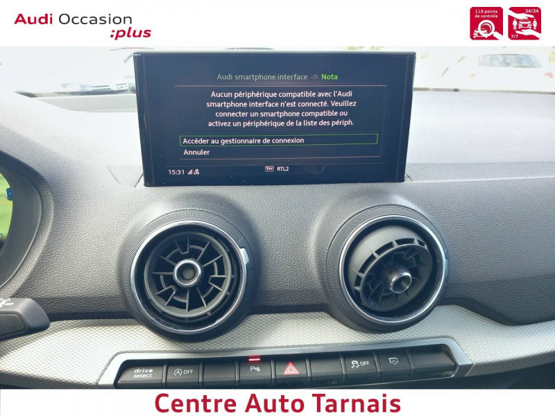Audi connect navigation et divertissement / Audi Virtual Cockpit / Feux AR rouges, avec feux de recul blancs et feu de brouillard AR intégréà ampoules ; feux de plaque AR à LED / Jante en aluminium, 5 double branches, 7J x 17" avec pneus 215/55 R17 / MMI navigation avec MMI touch / Moulures de seuils de portes en aluminium / Pack connectivity / Phares entièrement à LED / Volant en cuir style 3 branches avec multifonctions / 4HP àà l'AV (passifs) / Affichage de perte de pression des pneus / Airbags latéraux AV avec système d'airbags de tête / Applications décoratives Laqué Argent / Audi connect sécurité et assistance en ligne / Audi Drive Select / Audi Hold Assist / Audi Music Interface / Audi Parking System Plus / Audi pre sense front / Audi Smartphone Interface / Blade Gris Manhattan / Ciel de pavillon en tissu Gris Titane / Cléà fréquence radio / Coques de rétroviseurs extérieurs couleur carrosserie / Dossier de banquette AR rabattable en deux parties 40 : 60 ou entièrement / Désactivation de l'airbag passager AV / Détecteur d'occupation de sièges / Détecteur de pluie et de luminosité / Eclairage intérieur AV et AR / Eléments de contrastes en gris mat grainé / Fixation pour sièges enfants ISOFIX pour le siège passager AV / Interface Bluetooth / Kit de réparation de pneus / Pare-brise acoustique avec bande grise / Régulateur de vitesse incluant limiteur de vitesse / Rétroviseur intérieur jour/nuit manuel / Rétroviseurs extérieurs réglables électriquement, dégivrants des deux côtés et buses de lave-glaces dégivrantes / Sièges standard à l'AV avec réglage manuel du positionnement en longueur et en hauteur, de l'inclinaison de dossier, de la hauteur des appuie-tête et des ceintures / Sécurité enfants sur les portières AR / Tapis AV et AR / Trousse de secours et triangle de présignalisation
