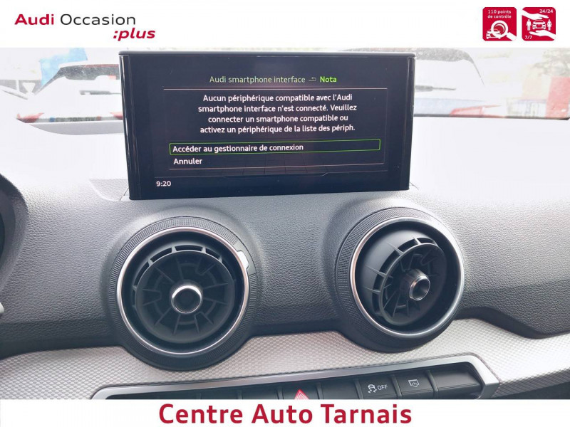 Audi Parking System : signal acoustique d'aide au stationnement AR / Feux AR rouges, avec feux de recul blancs et feu de brouillard AR intégréà ampoules ; feux de plaque AR à LED / Jante en aluminium, 5 double branches, 7J x 17" avec pneus 215/55 R17 / Moulures de seuils de portes en aluminium / Pack connectivity / Pack Sécurité / Phares AV à LED / Préparation à la navigation avec MMI touch / Volant en cuir style 3 branches avec multifonctions / 4HP àà l'AV (passifs) / Affichage de perte de pression des pneus / Airbags latéraux AV avec système d'airbags de tête / Applications décoratives Laqué Argent / Audi connect sécurité et assistance en ligne / Audi Drive Select / Audi Hold Assist / Audi Music Interface / Audi Phone Box avec charge du téléphone par induction (standard Qi) / Audi pre sense front / Audi Smartphone Interface / Blade Gris Manhattan / Ciel de pavillon en tissu Gris Titane / Cléà fréquence radio / Coques de rétroviseurs extérieurs couleur carrosserie / Dossier de banquette AR rabattable en deux parties 40 : 60 ou entièrement / Désactivation de l'airbag passager AV / Détecteur d'occupation de sièges / Détecteur de pluie et de luminosité / Eclairage intérieur / Eléments de contrastes en gris mat grainé / Interface Bluetooth / Kit de réparation de pneus / MMI Radio Plus / Pare-brise avec bandeau pare-soleil gris / Régulateur de vitesse incluant limiteur de vitesse / Rétroviseur intérieur jour/nuit manuel / Rétroviseurs extérieurs réglables électriquement, dégivrants des deux côtés et buses de lave-glaces dégivrantes / Sièges standard à l'AV avec réglage manuel du positionnement en longueur et en hauteur, de l'inclinaison de dossier, de la hauteur des appuie-tête et des ceintures / Système d'information du conducteur avec écran couleur / Tapis AV et AR / Trousse de secours et triangle de présignalisation