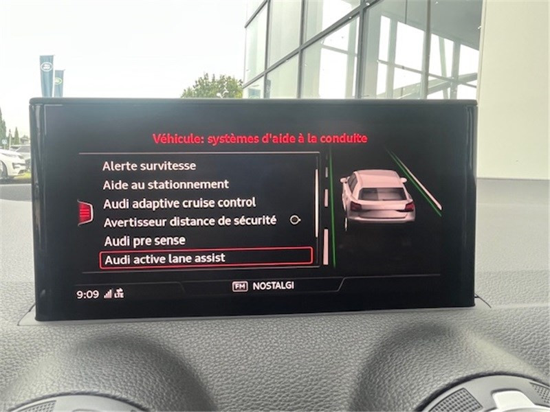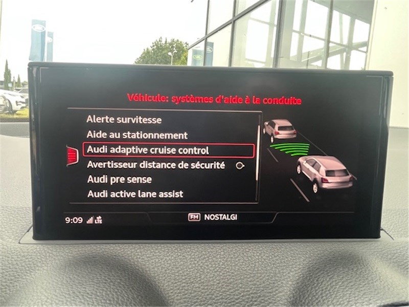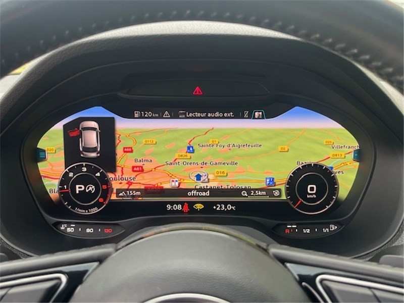 Airbags latéraux AV et système d'airbags de tête / Applications décoratives Rouge / Audi Drive Select / Audi Hold Assist / Audi Music Interface / Audi Parking System : signal acoustique d'aide au stationnement AR / Audi Pre-Sense Front avec détection des piétons / Audi Smartphone Interface / Blade Argent Glacier / Blocage électronique de différentiel EDS / Boîte de vitrese S tronic à 7 rapports / Câbles de recharge pour téléphone portable, compatibles iPhone et Android / Ceintures de sécurité: Ceintures 3 points à enrouleur pour tous les sièges, avec contrôle de port à l'AV, assorties à la couleur de l'habitacle / Châssis dynamique pour un excellent dynamisme et un grand confort / Ciel de pavillon en Tissu Gris Titane / Colonne de direction de sécurité / Contrôle électronique de stabilisation ESC / Cric et outillage de bord / Désactivation de l'airbag passager / Détecteur de pluie et de luminosité / Déverrouillage du coffre avec touche douce (déverrouillage avec assistance électrique) / Direction progressive à assistance électromécanique / Dispositif anti-erreur de carburant / Dossier de banquette AR rabattable en deux parties, 1/3, 2/3 ou complètement / Eclairage intérieur à temporisation avec contacteurs sur toutes les portières et éclairage du coffre / Ecrous de roues antivol / Eléments extérieurs spécifiques Sport / Embout(s) de sortie(s) d'échappement chromé(s) / Feux AR rouges avec feux de recul blancs et feux AR de brouillard intégrés, feux de plaque AR à LED et 3ème feu de stop surélevé / Fixation pour sièges enfants ISOFIX aux places extérieures AR avec Top Tether / Frein de stationnement électromécanique / Identification du modèle et de la technologie sur le capot de coffre / Interface Bluetooth / MMI Radio Plus / Moulures de seuils de portes en aluminium / Pack Connectivity / Pare-brise avec bande grise / Pare-soleil avec miroirs de courtoisie / Peinture intégrale / Phares halogènes à surfaces libres sous vitre transparente, réglage électrique du site des phares et commande de feu de stationnement, feux diurnes / Protection antidémarrage électronique, intégrée à la gestion du moteur, activation automatique par la clé du véhicule / Récupération d'énergie au freinage / Régulateur de vitesse incluant limiteur de vitesse / Repose-genoux et diffuseurs d'air laqués / Réservoir d'AdBlue de 12 litres / Rétroviseurs extérieurs avec clignotants à LED intégrés / Rétroviseurs extérieurs couleur carrosserie / Rétroviseurs extérieurs réglables électriquement et dégivrants incluant buses de lave-glaces dégivrantes / Sécurité enfants / Sellerie tissu Index / Set de réparation pour pneus, avec compresseur 12 volts et produit de colmatage. Vitesse maximale autorisée 80 km/h / Sièges AV réglables manuellement en hauteur et en profondeur, réglage manuel des appuie-tête en hauter / Sortie d'échappement monoflux avec 1 sortie à gauche / Système de freinage avec freins à disque à l'AV et à l'AR / Système d'information du conducteur avec écran monochrome / Tapis complémentaires AV et AR / Triangle de présignalisation / Vide-poches / Vitres latérales et AR athermique