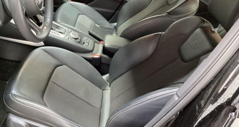 Cylindrée : 1498 cm3 EQUIPEMENTS Blocage électronique de différentiel EDS, Colonne de direction de sécurité, Protection antidémarrage électronique intégrée à la gestion du moteur activation automatique par la clé du véhicule, Inscription S line sur les ailes AV, Récupération d'énergie au freinage, Rétroviseurs extérieurs electriques dégivrants, Système Start/Stop, Interface Bluetooth, Audi Parking System : signal acoustique d'aide au stationnement AR, Frein de stationnement électromécanique, Volant réglable manuellement en hauteur et en profondeur, Climatisation automatique, Suspension Sport, Ciel de pavillon noir, Sièges AV Sport, Volant en cuir style 3 branches avec multifonctions, Audi Smartphone Interface, Audi Sound System avec 10 HP, MMI Navigation, Système d'information du conducteur avec écran couleur, Contrôle électronique de stabilisation ESC, Désactivation de l'airbag passager, Feux AR rouges avec feux de recul blancs et feux AR de brouillard intégrés feux de plaque AR à LED et 3ème feu de stop surélevé, Système de freinage avec freins à disque à l'AV et à l'AR, Vitres AV et AR électriques, MMI Radio Plus, Pare/brise avec bande grise, Vide/poches, Vitres latérales et AR athermique, Eclairage intérieur à temporisation avec contacteurs sur toutes les portières et éclairage du coffre, Identification du modèle et de la technologie sur le capot de coffre, Rétroviseurs extérieurs avec clignotants à LED intégrés, Rétroviseurs extérieurs couleur carrosserie, Sortie d'échappement monoflux avec 2 sorties à gauche, Embout(s) de sortie(s) d'échappement chromé(s), Châssis Sport, Repose/pied et pédalier en acier inoxydable, Volant Sport S line en cuir style 3 branches multifonctions avec emblème S, Audi Hold Assist, Direction progressive à assistance électromécanique, Fixation pour sièges enfants ISOFIX aux places extérieures AR avec Top Tether, Pommeau de levier/sélecteur de vitesses en cuir perforé noir, Lave/phares, Phares à LED avec clignotants AR à LED dynamiques, Sécurité enfants, Sellerie S line en Tissu Pulse/Cuir Noir, Moulures de seuils avec insert en aluminium et emblème S éclairées, Audi Pre/Sense Front avec détection des piétons, Dossier de banquette AR rabattable en deux parties 1/3 2/3 ou complètement, Pare/soleil avec miroirs de courtoisie, Surpiqûres contrastées sur les selleries le volant le soufflet de levier/sélecteur de vitesses ainsi que tapis complémentaires, Régulateur de vitesse incluant limiteur de vitesse, Boîte de vitesse S tronic à 7 rapports, Sièges AV réglables manuellement en hauteur et en profondeur réglage manuel des appuie/tête en hauteur, Airbags frontaux conducteur et passager grand volume, Anti/patinage (ASR), Applications décoratives en Aluminium brossé mat, Pack Extérieur S line, Blade dans la teinte de la carrosserie, Peinture métallisée Noir Mythic, Audi Connect, Affichage du contrôle de la pression des pneus, Airbags latéraux AV et système d'airbags de tête, Accoudoir central AV,