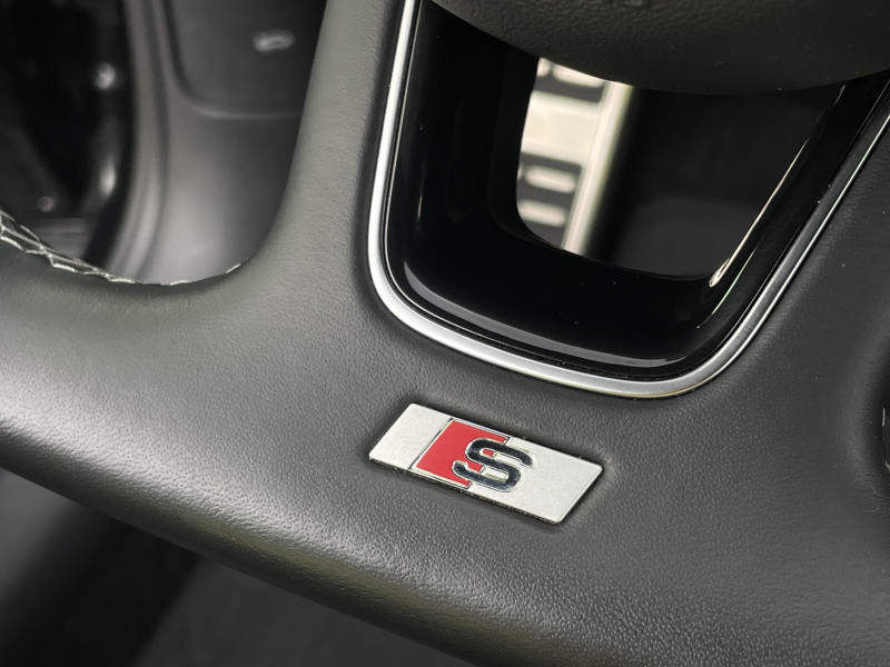 Applications décoratives en Aluminium brossé mat / Audi connect navigation et divertissement / Audi Virtual Cockpit / Feux AR rouges, avec feux de recul blancs et feu de brouillard AR intégréà ampoules ; feux de plaque AR à LED / Jantes en aluminium Audi Sport Gmbh, 5 doubles branches design trapèzoidale, 7J x 18" avec pneus 215/50 R18 / MMI navigation avec MMI touch / Moulures de seuil de portes éclairées avec insert en aluminium et inscription "S" / Phares Matrix LED avec clignotants dynamiques à l'AR / Préparation à la navigation avec MMI touch / Rétroviseur intérieur jour/nuit automatique / Rétroviseurs extérieurs réglables et escamotables électriquement, jour/nuit automatique, dégivrants des deux côtés et buses de lave-glaces dégivrantes / Volant Sport S line en cuir style 3 branches avec multifonction avec emblème S (poignées de volant en cuir perforé) / Affichage de perte de pression des pneus / Airbags latéraux AV avec système d'airbags de tête / Appuis lombaires / Assistant de feux de route / Audi connect sécurité et assistance en ligne / Audi Drive Select / Audi Hold Assist / Audi Music Interface / Audi Parking System Plus / Audi pre sense front / Audi Smartphone Interface / Audi Sound System avec 10 HP / Blade Argent Magnesium / Ciel de pavillon en Tissu Noir / Clé Confort (Keyless entry) / Coques de rétroviseurs extérieurs couleur carrosserie / Dossier de banquette AR rabattable en deux parties 40 : 60 ou entièrement / Désactivation de l?airbag passager AV / Détecteur de pluie et de luminosité / Détecteur d?occupation de sièges / Eclairage intérieur AV et AR / Eléments de contrastes en gris mat grainé / Fixation pour sièges enfants ISOFIX pour le siège passager AV / Inscription S line sur les ailes AV / Interface Bluetooth / Kit de réparation de pneus / Pare-brise avec bandeau pare-soleil gris / Repose-pied et pédalier en acier inoxydable / Régulateur de vitesse incluant limiteur de vitesse / Sécurité enfants sur les portières AR / Tapis AV et AR / Trousse de secours et triangle de présignalisation / Vitres surteintées (Privacy glass)