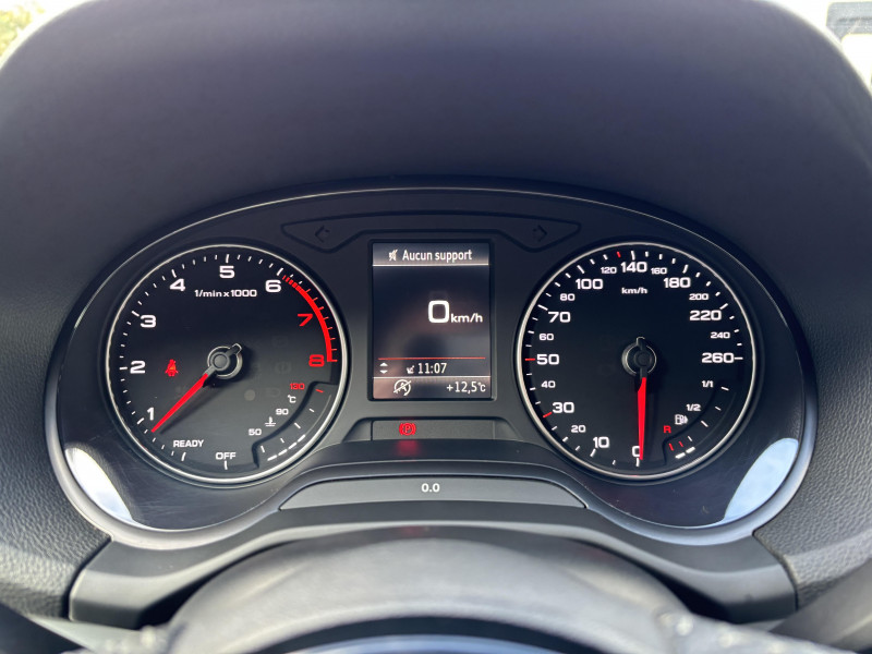 Applications décoratives en Aluminium brossé mat / Audi Parking System : signal acoustique d'aide au stationnement AR / Feux AR rouges avec feux de recul blancs et feux AR de brouillard intégrés, feux de plaque AR à LED et 3ème feu de stop surélevé / Frein de stationnement électromécanique / Jantes en aluminium coulé style 5 branches en Y 7Jx18" avec pneus 215/50 R18 / MMI Navigation / Moulures de seuils avec insert en aluminium et emblème S, éclairées / Phares à LED avec clignotants AR à LED dynamiques / Pommeau de levier/sélecteur de vitesses en cuir perforé noir / Protection antidémarrage électronique, intégrée à la gestion du moteur, activation automatique par la clé du véhicule / Rétroviseurs extérieurs avec clignotants à LED intégrés / Volant en cuir style 3 branches avec multifonctions / Volant Sport S line en cuir style 3 branches multifonctions avec emblème S / Airbags latéraux AV et système d'airbags de tête / Audi Connect / Audi Drive Select / Audi Music Interface / Audi Pre-Sense Front avec détection des piétons / Audi Smartphone Interface / Audi Sound System avec 10 HP / Blade Argent Glacier / Blocage électronique de différentiel EDS / Ceintures de sécurité: Ceintures 3 points à enrouleur pour tous les sièges, avec contrôle de port à l'AV, assorties à la couleur de l'habitacle / Ciel de pavillon noir / Colonne de direction de sécurité / Contrôle électronique de stabilisation ESC / Cric et outillage de bord / Direction progressive à assistance électromécanique / Dispositif anti-erreur de carburant / Dossier de banquette AR rabattable en deux parties, 1/3, 2/3 ou complètement / Désactivation de l'airbag passager / Détecteur de pluie et de luminosité / Déverrouillage du coffre avec touche douce (déverrouillage avec assistance électrique) / Eclairage intérieur à temporisation avec contacteurs sur toutes les portières et éclairage du coffre / Ecrous de roues antivol / Embout(s) de sortie(s) d'échappement chromé(s) / Fixation pour sièges enfants ISOFIX aux places extérieures AR avec Top Tether / Identification du modèle et de la technologie sur le capot de coffre / Inscription S line sur les ailes AV / Interface Bluetooth / MMI Radio Plus / Pare-brise avec bande grise / Pare-soleil avec miroirs de courtoisie / Repose-genoux et diffuseurs d'air laqués / Repose-pied et pédalier en acier inoxydable / Roue de secours à faible encombrement / Récupération d'énergie au freinage / Régulateur de vitesse, intègre la fonction limiteur de vitesse / Rétroviseurs extérieurs couleur carrosserie / Rétroviseurs extérieurs escamotables électriquement, dégivrants des deux côtés et buses de lave-glaces dégivrantes / Sièges AV réglables manuellement en hauteur et en profondeur, réglage manuel des appuie-tête en hauter / Sortie d'échappement monoflux avec 2 sorties à gauche / Suspension Sport / Système d'information du conducteur avec écran couleur / Système de freinage avec freins à disque à l'AV et à l'AR / Sécurité enfants sur les portières et les vitres électriques AR / Tapis complémentaires AV et AR / Triangle de présignalisation / Vide-poches / Vitres latérales et AR athermique