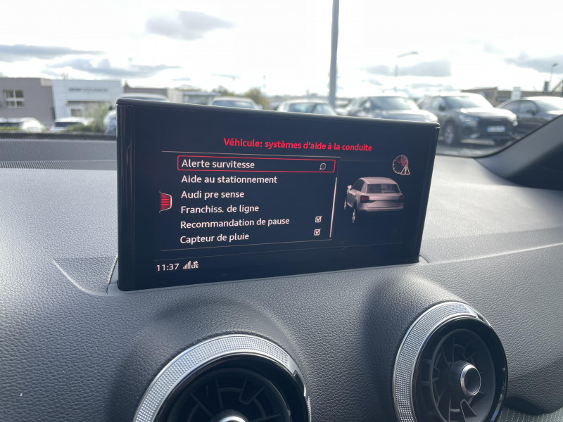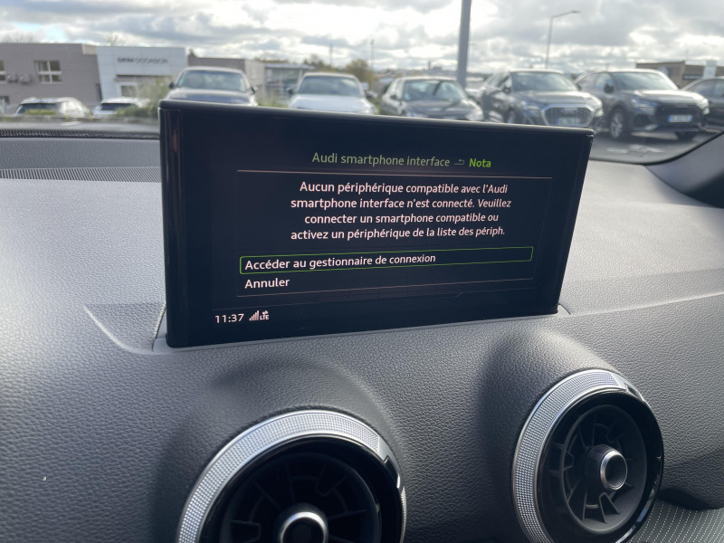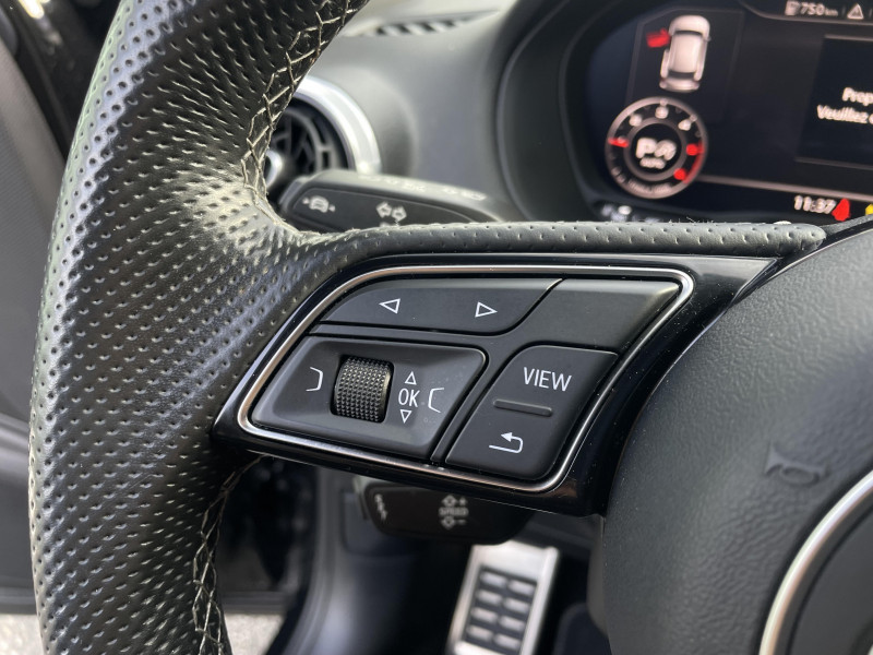 Applications décoratives en Aluminium brossé mat / Audi connect navigation et divertissement / Audi Virtual Cockpit / Feux AR rouges, avec feux de recul blancs et feu de brouillard AR intégréà ampoules ; feux de plaque AR à LED / Jantes en aluminium Audi Sport Gmbh, 5 doubles branches design trapèzoidale, 7J x 18" avec pneus 215/50 R18 / MMI navigation avec MMI touch / MMI navigation avec MMI touch / Moulures de seuil de portes éclairées avec insert en aluminium et inscription "S" / Phares Matrix LED avec clignotants dynamiques à l'AR / Rétroviseur intérieur jour/nuit automatique / Rétroviseurs extérieurs réglables et escamotables électriquement, jour/nuit automatique, dégivrants des deux côtés et buses de lave-glaces dégivrantes / Volant en cuir style 3 branches avec multifonctions / Affichage de perte de pression des pneus / Airbags latéraux AV avec système d'airbags de tête / Appuis lombaires à 4 axes pour les sièges AV / Assistant de feux de route / Audi connect sécurité et assistance en ligne / Audi Drive Select / Audi Hold Assist / Audi Music Interface / Audi Parking System Plus / Audi Phone Box avec charge du téléphone par induction (standard Qi) / Audi pre sense front / Audi Smartphone Interface / Audi Sound System avec 10 HP / Avertissement de sortie de voie / Blade Argent Magnesium / Ciel de pavillon en Tissu Noir / Clé Confort (Keyless entry) / Coques de rétroviseurs extérieurs couleur carrosserie / Câbles de recharge pour téléphone portable, compatibles iPhone et Android / Dossier de banquette AR rabattable en deux parties 40 : 60 ou entièrement / Désactivation de l?airbag passager AV / Détecteur de pluie et de luminosité / Détecteur d?occupation de sièges / Eclairage intérieur Module de pavillon à l?AV et à l?AR (à ampoules) incluant spots de lecture / Inscription S line sur les ailes AV / Pare-brise avec bandeau pare-soleil gris / Repose-pied et pédalier en acier inoxydable / Régulateur de vitesse incluant limiteur de vitesse / Set de réparation pour pneus / Système d'information du conducteur avec écran monochrome / Sécurité enfants électrique sur les portières AR / Tapis AV et AR / Trousse de secours et triangle de présignalisation / Vitres surteintées (Privacy glass)