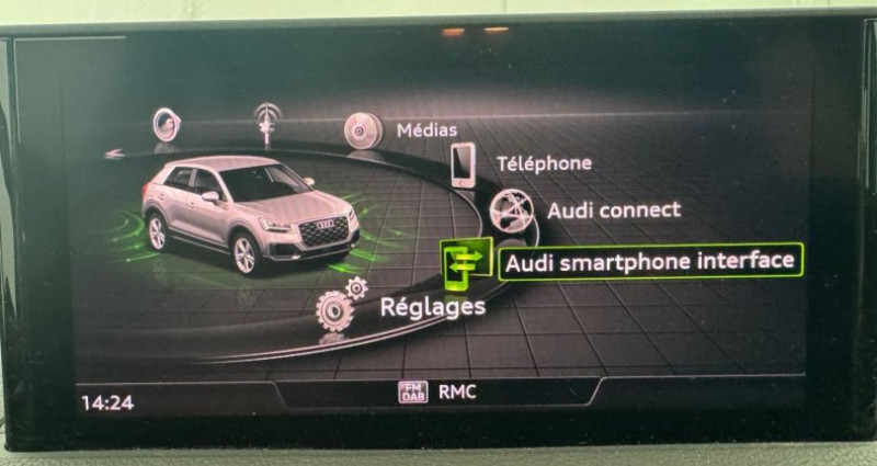 Cylindrée : 1968 cm3 EQUIPEMENTS Accoudoir central AV, Applications décoratives Laqué Argent, Airbags latéraux AV avec système d'airbags de tête, Affichage de perte de pression des pneus, Audi connect sécurité et assistance en ligne, Audi Hold Assist, Audi Smartphone Interface, Audi Parking System : signal acoustique d'aide au stationnement AR, Direction progressive, Audi pre sense front, Pack connectivity, Coques de rétroviseurs extérieurs couleur carrosserie, Rétroviseurs extérieurs réglables électriquement dégivrants des deux côtés et buses de lave/glaces dégivrantes, Volant en cuir style 3 branches avec multifonctions, Système d'information du conducteur avec écran couleur, Vitres athermiques, Siège conducteur et passager AV réglable en hauteur, Sièges standard à l'AV avec réglage manuel du positionnement en longueur et en hauteur de l'inclinaison de dossier de la hauteur des appuie/tête et des ceintures, Sellerie tissu Script pour sièges standard à l'AV, Rétroviseur intérieur jour/nuit manuel, Sécurité enfants électrique sur les portières AR, Réception radio numérique DAB, Régulateur de vitesse incluant limiteur de vitesse, Feux AR rouges avec feux de recul blancs et feu de brouillard AR intégré à ampoules feux de plaque AR à LED, Projecteurs AV à LED, Climatisation automatique 2 zones, Pare/chocs en peinture contrastée Gris Manhattan, Ciel de pavillon en tissu Gris Titane, Dossier de banquette AR rabattable en deux parties 40 : 60 ou entièrement, Détecteur de pluie et de luminosité, Clé à fréquence radio, Lève/vitres électriques AV et AR, Eclairage intérieur AV/AR, Désactivation de l'airbag passager AV, Pare/brise avec bandeau pare/soleil gris, Jantes alu 17, VOEU,