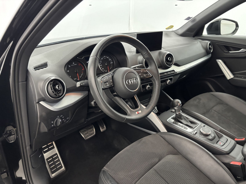 Applications décoratives en Aluminium brossé mat: / Audi Parking System : signal acoustique d'aide au stationnement AR: / Feux AR rouges avec feux de recul blancs et feux AR de brouillard intégrés, feux de plaque AR à LED et 3ème feu de stop surélevé: / Frein de stationnement électromécanique: / Jantes en aluminium coulé style 5 branches en Y 7Jx18" avec pneus 215/50 R18: / MMI Navigation: / Moulures de seuils avec insert en aluminium et emblème S, éclairées: / Phares à LED avec clignotants AR à LED dynamiques: / Pommeau de levier/sélecteur de vitesses en cuir perforé noir: / Protection antidémarrage électronique, intégrée à la gestion du moteur, activation automatique par la clé du véhicule: / Rétroviseurs extérieurs avec clignotants à LED intégrés: / Volant en cuir style 3 branches avec multifonctions: / Volant Sport S line en cuir style 3 branches multifonctions avec emblème S: / Airbags latéraux AV et système d'airbags de tête: / Audi Connect: / Audi Drive Select: / Audi Hold Assist: / Audi Music Interface: / Audi Pre-Sense Front avec détection des piétons: / Audi Smartphone Interface: / Audi Sound System avec 10 HP: / Blade Argent Glacier: / Blocage électronique de différentiel EDS: / Boîte de vitesse S tronic à 7 rapports: / Ceintures de sécurité: Ceintures 3 points à enrouleur pour tous les sièges, avec contrôle de port à l'AV, assorties à la couleur de l'habitacle: / Ciel de pavillon noir: / Colonne de direction de sécurité: / Contrôle électronique de stabilisation ESC: / Câbles de recharge pour téléphone portable, compatibles iPhone et Android: / Direction progressive à assistance électromécanique: / Dispositif anti-erreur de carburant: / Dossier de banquette AR rabattable en deux parties, 1/3, 2/3 ou complètement: / Désactivation de l'airbag passager: / Détecteur de pluie et de luminosité: / Déverrouillage du coffre avec touche douce (déverrouillage avec assistance électrique): / Eclairage intérieur à temporisation avec contacteurs sur toutes les portières et éclairage du coffre: / Ecrous de roues antivol: / Embout(s) de sortie(s) d'échappement chromé(s): / Fixation pour sièges enfants ISOFIX aux places extérieures AR avec Top Tether: / Identification du modèle et de la technologie sur le capot de coffre: / Inscription S line sur les ailes AV: / Interface Bluetooth: / MMI Radio Plus: / Pare-brise avec bande grise: / Pare-soleil avec miroirs de courtoisie: / Repose-genoux et diffuseurs d'air laqués: / Repose-pied et pédalier en acier inoxydable: / Récupération d'énergie au freinage: / Régulateur de vitesse incluant limiteur de vitesse: / Réservoir d'AdBlue de 12 litres: / Rétroviseurs extérieurs couleur carrosserie: / Rétroviseurs extérieurs escamotables électriquement, dégivrants des deux côtés et buses de lave-glaces dégivrantes: / Rétroviseurs extérieurs réglables électriquement et dégivrants incluant buses de lave-glaces dégivrantes: / Set de réparation pour pneus, avec compresseur 12 volts et produit de colmatage. Vitesse maximale autorisée 80 km/h: / Sièges AV réglables manuellement en hauteur et en profondeur, réglage manuel des appuie-tête en hauteur: / Sortie d'échappement monoflux avec 2 sorties à gauche: / Suspension Sport: / Système d'information du conducteur avec écran couleur: / Système de freinage avec freins à disque à l'AV et à l'AR: / Sécurité enfants: / Tapis complémentaires AV et AR: / Triangle de présignalisation: / Vide-poches: / Vitres latérales et AR athermique: / Peinture intégrale: / Sellerie S line en Tissu Pulse/Cuir Noir: / Surpiqûres contrastées sur les selleries, le volant, le soufflet de levier/sélecteur de vitesses ainsi que tapis complémentaires: /