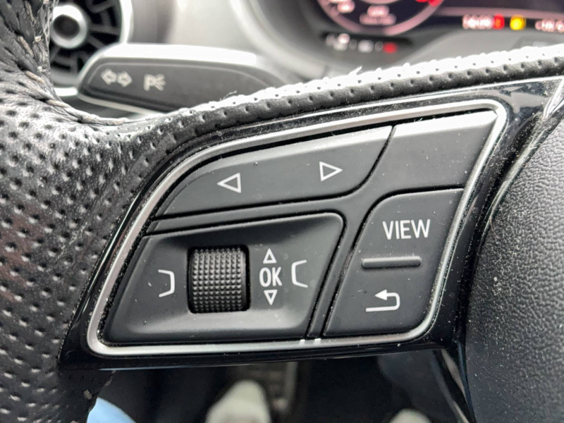 Airbags latéraux AV et système d'airbags de tête / Applications décoratives en Aluminium brossé mat / Audi Connect / Audi Drive Select / Audi Hold Assist / Audi Parking System Plus: Système accoustique et visuel d'aide au stationnement AV et AR / Audi Pre-Sense Front avec détection des piétons / Audi Smartphone Interface / Audi Sound System / Audi Virtual Cockpit / Blade Gris Titane mat / Blocage électronique de différentiel EDS / Boîte de vitrese S tronic à 7 rapports / Ceintures de sécurité: Ceintures 3 points à enrouleur pour tous les sièges, avec contrôle de port à l'AV, assorties à la couleur de l'habitacle / Ciel de pavillon en tissu noir / Clé Confort (Keyless entry) / Colonne de direction de sécurité / Contrôle électronique de stabilisation ESC / Désactivation de l'airbag passager / Détecteur de pluie et de luminosité / Direction progressive à assistance électromécanique / Dispositif anti-erreur de carburant / Dossier de banquette AR rabattable en deux parties, 1/3, 2/3 ou complètement / Ecrous de roues antivol / Embout(s) de sortie(s) d'échappement chromé(s) / Fixation pour sièges enfants ISOFIX aux places extérieures AR avec Top Tether / Frein de stationnement électromécanique / Identification du modèle et de la technologie sur le capot de coffre / Inscription S line sur les ailes AV / Interface Bluetooth / Jantes Audi Sport en aluminium coulé style 5 branches offroad design titanium mat et look polies brillant 7Jx18" avec pneus 215/50 R18 / MMI Navigation Plus avec MMI touch / Pack Aluminium Intérieur / Pack Brillance Audi exclusive / Pack Eclairage / Peinture intégrale / Phares à LED avec clignotants dynamiques à l'AR / Pommeau de levier/sélecteur de vitesses en cuir perforé noir / Protection antidémarrage électronique, intégrée à la gestion du moteur, activation automatique par la clé du véhicule / Récupération d'énergie au freinage / Repose-genoux et diffuseurs d'air laqués / Repose-pied et pédalier en acier inoxydable / Rétroviseur intérieur jour/nuit automatique / Rétroviseurs extérieurs avec clignotants à LED intégrés / Rétroviseurs extérieurs couleur carrosserie / Rétroviseurs extérieurs réglables, dégivrants et rabattables électriquement, incluant fonction rabat automatique / Sécurité enfants / Sellerie S line en Tissu Pulse/Cuir Noir / Set de réparation pour pneus, avec compresseur 12 volts et produit de colmatage. Vitesse maximale autorisée 80 km/h / Sièges AV réglables manuellement en hauteur et en profondeur, réglage manuel des appuie-tête en hauter / Sortie d'échappement monoflux avec 2 sorties à gauche / Stickers "Anneaux Audi" sur les Blades / Surpiqûres contrastées sur les selleries, volant Sport en cuir, le soufflet de levier/sélecteur de vitesses ainsi que tapis complémentaires / Système de freinage avec freins à disque à l'AV et à l'AR / Tapis complémentaires AV et AR / Tapis de coffre à bagages / Toit ouvrant coulissant/relevable électriquement en verre de sécurité simple vitrage teinté et pare-soleil manuel / Triangle de présignalisation / Vide-poches / Vitres latérales et AR athermique / Volant 3 branches multifonctions en cuir avec méplat