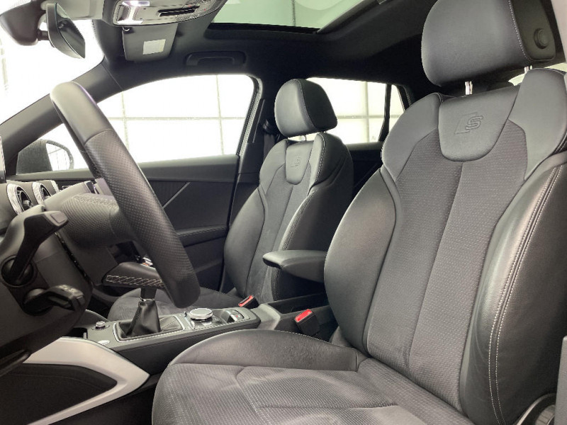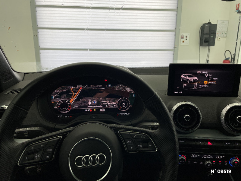 Colonne de direction de sécurité / Triangle de présignalisation / Frein de stationnement électromécanique / Audi Virtual Cockpit combiné d¿instruments entièrement numérique de 12.3" avec affichage haute résolution / Pack Aluminium Intérieur / Volant 3 branches multifonctions en cuir avec méplat / Audi Hold Assist / Audi Drive Select / Rétroviseur intérieur jour/nuit automatique / Rétroviseurs extérieurs réglables, dégivrants et rabattables électriquement, incluant fonction rabat automatique / Déverrouillage du coffre avec touche douce (déverrouillage avec assistance électrique) / Ceintures de sécurité: Ceintures 3 points à enrouleur pour tous les sièges, avec contrôle de port à l'AV, assorties à la couleur de l'habitacle / Applications décoratives en Aluminium brossé mat / MMI Navigation Plus avec MMI touch / Cric et outillage de bord / Repose-genoux et diffuseurs d'air laqués / Direction progressive à assistance électromécanique / Sellerie S line en Tissu Pulse/Cuir Noir / Dossier de banquette AR rabattable en deux parties, 1/3, 2/3 ou complètement / Pack Brillance Audi exclusive / Câbles de recharge pour téléphone portable, compatibles iPhone et Android / Peinture intégrale / Rétroviseurs extérieurs escamotables électriquement, dégivrants des deux côtés et buses de lave-glaces dégivrantes / Feux AR rouges avec feux de recul blancs et feux AR de brouillard intégrés, feux de plaque AR à LED et 3ème feu de stop surélevé / Dispositif anti-erreur de carburant / Ecrous de roues antivol / Détecteur de pluie et de luminosité / Audi Smartphone Interface / Volant en cuir style 3 branches avec multifonctions / Jantes Audi Sport en aluminium coulé style 5 branches offroad design titanium mat et look polies brillant 7Jx18" avec pneus 215/50 R18 / Vide-poches / Repose-pied et pédalier en acier inoxydable / Toit ouvrant coulissant/relevable électriquement en verre de sécurité simple vitrage teinté et pare-soleil manuel / Sièges AV réglables manuellement en hauteur et en profondeur, réglage manuel des appuie-tête en hauter / Sécurité enfants / Pare-soleil avec miroirs de courtoisie / Embout(s) de sortie(s) d'échappement chromé(s) / Stickers "Anneaux Audi" sur les Blades / Identification du modèle et de la technologie sur le capot de coffre / Pack Eclairage / Inscription S line sur les ailes AV / Récupération d'énergie au freinage / Audi Parking System Plus: Système accoustique et visuel d'aide au stationnement AV et AR / Airbags latéraux AV et système d'airbags de tête / Contrôle électronique de stabilisation ESC / Tapis complémentaires AV et AR / Vitres latérales et AR athermique / Eclairage intérieur à temporisation avec contacteurs sur toutes les portières et éclairage du coffre / Blade Gris Titane mat / Tapis de coffre à bagages / Surpiqûres contrastées sur les selleries, le volant, le soufflet de levier/sélecteur de vitesses ainsi que tapis complémentaires / Blocage électronique de différentiel EDS / Interface Bluetooth / Audi Sound System / Ciel de pavillon en tissu noir / Clé Confort (Keyless entry) / Audi Music Interface / Sortie d'échappement monoflux avec 2 sorties à gauche / Phares à LED avec clignotants dynamiques à l'AR / Pommeau de levier/sélecteur de vitesses en cuir perforé noir / Audi Connect / Désactivation de l'airbag passager / MMI Radio Plus / Rétroviseurs extérieurs couleur carrosserie / Fixation pour sièges enfants ISOFIX aux places extérieures AR avec Top Tether / Rétroviseurs extérieurs réglables électriquement et dégivrants incluant buses de lave-glaces dégivrantes / Audi Pre-Sense Front avec détection des piétons / Audi Virtual Cockpit / Protection antidémarrage électronique, intégrée à la gestion du moteur, activation automatique par la clé du véhicule / Système de freinage avec freins à disque à l'AV et à l'AR / Rétroviseurs extérieurs avec clignotants à LED intégrés / Set de réparation pour pneus, avec compresseur 12 volts et produit de colmatage. Vitesse maximale autorisée 80 km/h / Surpiqûres contrastées sur les selleries, volant Sport en cuir, le soufflet de levier/sélecteur de vitesses ainsi que tapis complémentaires / Rétroviseur intérieur jour/nuit automatique / Châssis dynamique pour un excellent dynamisme et un grand confort / Audi Drive Select