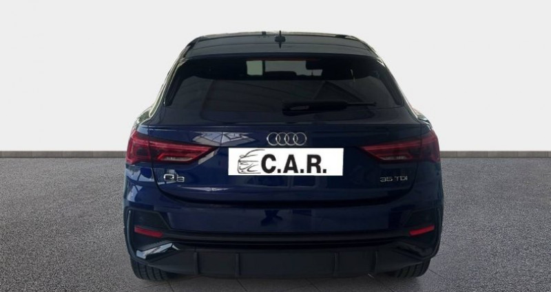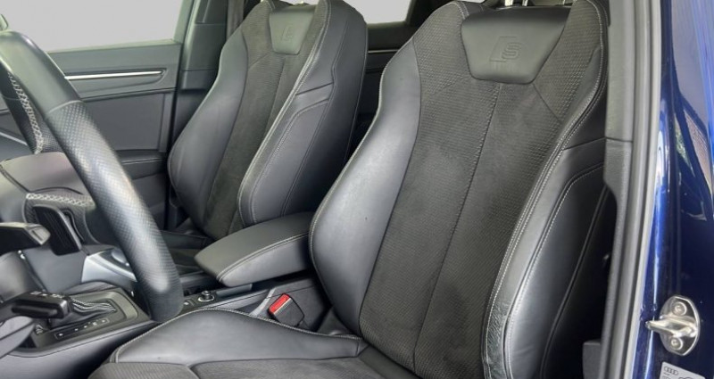 Cylindrée : 1968 cm3 Nb. Vitesse : 7 - 2 prises USB à l'AR et prise 12 V dans la console centrale AR - Accoudoir central coulissant en longueur, avec inclinaison réglable et vide-poches relevable - Accoudoirs des contre-portes en similicuir Monopur 550 - Affichage de contrôle de pression des pneus - Appel d'urgence Audi connect - Applications décoratives en aluminium mat Brossé Foncé - Appui lombaire à 4 axes pour les sièges AV: réglages électrique, horizontal et vertical - Assise et dossier de banquette AR, divisée, rabattable 40/20/40, Assise coulissante en longueur, Dossier avec inclinaison réglable - Audi Connect Navigation et Divertissement - Audi Connect Navigation et Divertissement Plus - Audi connect sécurité et assistance en ligne - Audi Drive Select - Audi Hold Assist - Audi Parking System Plus - Audi Pre Sense Basic - Audi Pre Sense front - Audi Smartphone Interface - Audi Virtual cockpit plus - Avertisseur de franchissement de ligne et avertisseur de changement de voie - Boîtiers de rétroviseurs extérieurs en Noir - Caméra de recul - Ciel de pavillon en tissu Noir - Clé confort incluant déverrouillage du coffre par capteur - Climatisation automatique confort 2 zones - Détecteur de pluie et de luminosité - Direction progressive - Eclairage intérieur - Ecrous de roues antivol - Fixation pour sièges enfants ISOFIX et Top Tether pour les sièges extérieurs AR - Hayon de coffre à ouverture et fermeture électrique - Interface Bluetooth - Interface USB pour chargement d'appareils externes - Jantes en aluminium coulé 19 20 branches en V, gris contrasté, partiellement polies 7Jx19, pneus 235/50 R19 - Jantes en aluminium coulé 19 Audi Sport 5 branches doubles, finition titane mat, polies brillant 8.5Jx19, pneus 255/45 R19 - Kit réparation - MMI Radio Plus avec MMI Touch - Navigation MMI plus avec MMI touch response - Outillage de bord - Pack Aluminium Intérieur - Pack Esthétique Noir - Pack Extérieur - Pack intérieur estéhtique S line - Pack S line extérieur - Pare-brise en verre acoustique avec verre feuilleté athermique Cet équipement empêche une bonne réception des appareils en présence de Waze ou pour le Coyotte - Pare-chocs S line dans une peinture contrastée (Gris Manhattan) - Pare-chocs S line dans une peinture intégrale (couleur de la carrosserie) - Peinture métallisée Bleu Navarre - Phares à LED avec clignotants dynamiques - Porte-gobelet dans l'accoudoir de la place centrale (banquette AR) - Réception radio numérique (DAB) - Régulateur de vitesse - Rétroviseur intérieur sans encadrement jour/nuit automatique - Rétroviseurs extérieurs réglables, dégivrants et rabattables électriquement avec fonction rabat automatique - Sellerie Cuir/Similicuir Monopur 550/Dinamica - Sièges AV chauffants - Sièges AV réglables électriquement - Sièges AV sport - Suspensions Sport - Tapis de sol AV/AR - Trousse de secours, triangle de présignalisation et 2 vestes de sécurité - Vitrage Privacy (vitres surteintées) - Volant cuir multifonctions Plus 3 branches - Volant cuir Sport multifonctions Plus 3 branches avec méplat et palettes de commande au volant