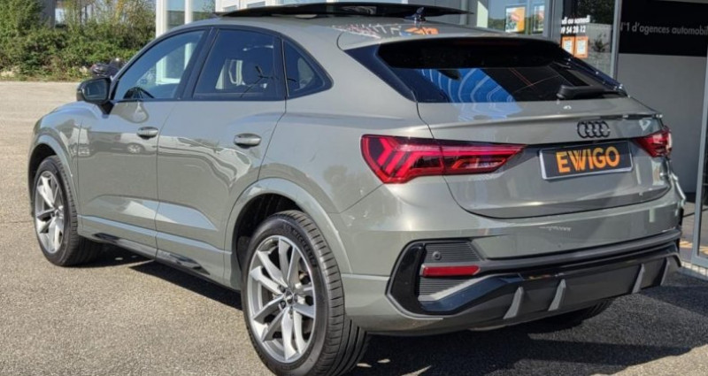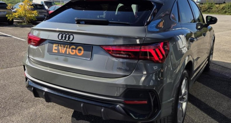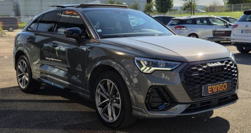Audi Q3 SPORTBACK II 45 TFSI 230ch S-LINE QUATTRO ATTELAGE ELECTRIQUE/IMMAT FR crossover, suv, gris, 14 cv, 5 portes, première mise en circulation le 20/02/2020, garantie 6 mois. - NOS SERVICES ET PRESTATIONS COMPLÉMENTAIRES - - Visite virtuelle : avant de vous déplacer, visualisez votre futur véhicule sous toutes ses coutures . Contactez-nous pour en voir plus ! - Extension de garantie jusqu'à 60 mois. - Solutions de Financement de 12 à 84 mois. - Livraison dans toute la France métropolitaine (sur devis). - Reprise possible de votre ancien véhicule. - Les informations délivrées par cette annonce sont non contractuelles et données à titre indicatif. Packs disponibles (véhicules éligibles au Label) - Pack Clés en Main - 691 € TTC(¹)(²) Démarches (hors carte grise) | 1/4 de carburant | Nettoyage First | Garantie 6 mois | Label inclus? - Pack Sérénité - 891 € TTC(¹)(²)- Démarches (hors carte grise) | 1/2 de carburant | Nettoyage Confort | Garantie 12 mois | Label inclus? - Pack Prestige - 1.091 € TTC(¹)(²) Démarches (hors carte grise) | Plein complet | Nettoyage Prestige | Garantie 12 mois | Label inclus? + Surprise du chef - (¹) Les véhicules non éligibles au Label bénéficient de tarifs préférentiels. Veuillez contacter votre conseiller pour obtenir les conditions tarifaires applicables. (²) Tarif pour les véhicules deux roues motrices dont la valeur de vente est inférieure à 60 000 € TTC. - - Accès Aéroport de Bâle Mulhouse et gare de Mulhouse TGV - Véhicule visible sur rendez vous : - Du Lundi au Vendredi de 9h30 à 12h00 et de 14h à 19h - Le Samedi de 9h30 à 17h30 - Agence Ewigo Mulhouse 64 rue de l'ile Napoléon 68 170 Rixheim Tel [Coordonnées masquées] 5 places OPTIONS ET ÉQUIPEMENTS : Audio - Télécommunications : - Android auto - Apple CARPLAY - Bluetooth - GPS - Prise audio usb - radio numérique - système de navigation Conduite : - Choix du mode de conduite - Détecteur de pluie - Essuies glaces automatiques - Frein de parking électrique - Indicateur de limitation de vitesse - Stop & Start - allumage automatique des feux - détecteur de pluie - palettes au volant - régulateur de vitesse - sièges sport Extérieur : - Capteurs d'aide au stationnement arrière - Capteurs d'aide au stationnement avant - Pack extérieur S line - Phares AR à led - Phares AV de jour à LED - Rétroviseurs latéraux électriques - Rétroviseurs électriques et dégivrants - attelage - caméra de recul - jantes : aluminium - jantes alliage - rétroviseurs électriques - système d'aide au stationnement - toit ouvrant - toit ouvrant électrique Intérieur : - Pédalier sport - Sièges AV électriques - Porte gobelet avant - accoudoir central - banquette 1/3 - 2/3 - climatisation : automatique - climatisation multi zone - direction assistée - fermeture centralisée - non fumeur - ordinateur de bord - pare-brise chauffant - sièges chauffants - verrouillage à distance - vitres surteintées - vitres électriques - volant réglable hauteur - volant réglable profondeur - volant sport Pack : - Boîte de vitesse automatique - Mode sport - Pneus été - 4 roues motrices - Cockpit numérique - GPS couleur - volant multifonctions - volant réglable - Écran multifonction Sellerie : - Intérieur cuir alcantara Sécurité : - Airbags - Alerte franchissement de lignes - Lecture des panneaux - ABS - ESP - airbag coté passager - avertisseur d'angle mort - fixations ISOFIX - kit de dépannage pneumatique - phares antibrouillard Autres équipements et informations : - Carnet d'entretien - Double des clés - Entretien constructeur - Factures d'entretien - Mode normal - Classe Crit'air : 1 - GPS tactile - Puissance kilowatt : 169 kw - USB - dimension des jantes : 19 pouces - nombre de rapports : 7 vitesses - puissance réelle : 230 ch - émission CO2 : 172 g/km - état : bon Référence annonce : d147948