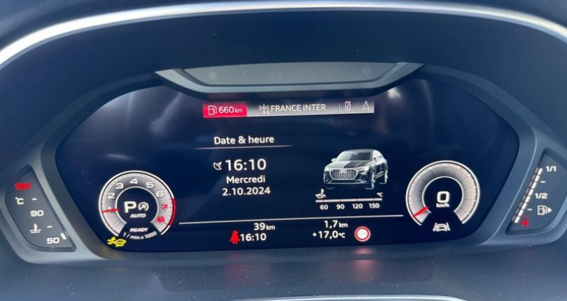 Cylindrée : 1498 cm3 Nb. Vitesse : 7 - Pack Esthétique Noir plus - Entourage des vitres latérales avec des baguettes enjoliveuses noir - Calandre Singleframe noire - Pare-chocs AV et AR noirs - Les lames intérieurs de la calandre Singleframe nid d'abeille deviennent noires *** Avec : Anneaux Audi et monogrammes en Noir Brillant *** Avec : Calandre Singleframe Noire *** Avec : Entourage des vitres latérales avec des baguettes enjoliveuses Noir *** Avec : Lames intérieurs de la calandre Singleframe nid d'abeille noires au lieu de grises *** Avec : Pare-chocs AV/AR Noirs - Jantes en aluminium coulé 19 Audi Sport 5 branches doubles, finition titane mat, polies brillant 8.5Jx19, pneus 255/45 R19 - Audi Smartphone Interface - Caméra de recul - Vitrage Privacy : lunette AR, vitres de portières AR et vitres latérales AR surteintées - Audi Virtual cockpit plus - Volant cuir Sport multifonctions Plus 3 branches avec méplat et palettes de commande au volant - Applications décoratives en aluminium mat Brossé Foncé - Audi Connect Navigation et Divertissement - Audi Pre Sense Basic Déploie automatiquement, lorsque nécessaire, des mesures préventives pour votre sécurité et celle de vos passagers, parmi lesquelles: Resserrement des ceintures de sécurité à l'avant afin de limiter tout déplacement des passagers vers l'avant ou les côtés, Activation des feux de détresse clignotants - Audi virtual cockpit - Climatisation automatique confort 2 zones - Jantes en aluminium coulé 18 5 branches en V 7Jx18, pneus 235/55 R18 - MMI Navigation plus avec MMI touch - Pack Aluminium Intérieur - Pack Brillance Extérieur - Phares AV à LED (feux de croisement, feux de route, feux diurnes et feux de position LED, clignotants à ampoule) - Phares à LED avec clignotants dynamiques AR - Rétroviseur intérieur jour/nuit automatique sans encadrement - Rétroviseurs extérieurs réglables, dégivrants et rabattables électriquement avec fonction rabat automatique - Volant cuir multifonctions Plus 3 branches - 2 prises USB AR (type-C) et prise 12V dans la console centrale AR - Accoudoir central coulissant en longueur, avec inclinaison réglable et vide-poches relevable - Accoudoirs des contre-portes en matériaux synthétiques monopur 550 - Affichage de contrôle de pression des pneus - Appel d'urgence Audi connect - Appui lombaire à 4 axes pour les sièges AV: réglages électrique, horizontal et vertical - Assise et dossier de banquette AR, divisée, rabattable 40/20/40, Assise coulissante en longueur, Dossier avec inclinaison réglable - Audi Connect sécurité et assistance en ligne - Audi Drive Select - Audi Hold Assist - Audi Parking System Plus - Audi Pre Sense front Détecte la zone située devant le véhicule et avertit le conducteur par des signaux visuels et sonores en cas de potentielle situation dangereuse avec des véhicules qui précèdent ou qui sont arrêtés. Le système avertit alors le conducteur par un signal sonore et visuel. Simultanément, le système prépare un éventuel freinage complet, et engage un freinage d'urgence automatisé, dans le cas où celui-ci s'avérerait nécessaire - Avertisseur de franchissement de ligne et avertisseur de changement de voie - Banquette AR avec porte-gobelet dans l'accoudoir de la place centrale - Boîtiers de rétroviseurs extérieurs couleur carrosserie - Ciel de pavillon en tissu Noir - Clé à fréquence radio - Câbles de recharge pour téléphone portable compatibles Apple et Android - Direction assistée électromécanique, asservie à la vitesse - Direction progressive - Détecteur de pluie et de luminosité - Eclairage intérieur - Ecrous de roues antivol - Fixation pour sièges enfants ISOFIX et Top Tether pour les sièges extérieurs AR - Hayon de coffre à ouverture et fermeture électrique - Interface Bluetooth - Interface USB pour chargement d'appareils externes - Kit réparation - MMI Radio Plus avec MMI Touch - Outillage de bord - Pare-brise en verre acoustique avec verre feuilleté athermique - Réception radio numérique (DAB) - Régulateur de vitesse - Rétroviseurs extérieurs réglables électriquement et dégivrants - Sièges AV réglables manuellement Hauteur et positionnement en longueur, Inclinaison de dossier, Hauteur des appuie-tête et des ceintures - Sièges AV sport - Suspensions Sport - Trousse de secours, triangle de présignalisation et 2 vestes de sécurité