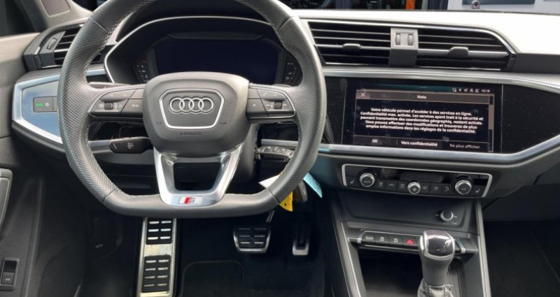 ======= OPTIONS ======= Volant cuir Sport multifonctions Plus 3 branches avec méplat et palettes de commande au volant Amortissement piloté avec Audi drive select Audi Smartphone Interface Audi Sound System Eclairage d'ambiance de la console centrale AV Eclairage dans la zone des pieds AV AR Eclairage des seuils de portes AV Eclairage du compartiment de rangement sous le tableau de bord Eclairage du porte-boissons AV Miroirs de courtoisie éclairés côté conducteur et passager AV Peinture métallisée Noir Mythic Rétroviseurs extérieurs réglables, dégivrants, rabattables électriquement avec fonction rabat automatique côté passager AV (manouvre de stationnement) et fonction jour nuit automatique des deux côtés clignotants a LED intégré Sièges AV chauffants Sièges AV réglables électriquement Affichage de contrôle de pression des pneus APPLE CARPLAY Audi Drive Select Audi Parking System Plus Audi Pre Sense Basic Audi virtual cockpit Avertisseur de franchissement de ligne Climatisation automatique confort 2 zones Combiné d'instruments entièrement numérique 10,25 Détecteur de pluie et de luminosité Interface Bluetooth Jantes en aluminium coulé 18 5 branches en V 7Jx18, pneus 235 55 R18 Phares à LED avec clignotants dynamiques AR Réception radio numérique (DAB) Régulateur de vitesse ======= EQUIPEMENTS DE SERIE ======= Affichage de contrôle de pression des pneus APPLE CARPLAY Audi Drive Select Audi Parking System Plus Audi Pre Sense Basic Audi virtual cockpit Avertisseur de franchissement de ligne Climatisation automatique confort 2 zones Combiné d'instruments entièrement numérique 10,25 Détecteur de pluie et de luminosité Interface Bluetooth Jantes en aluminium coulé 18 5 branches en V 7Jx18, pneus 235 55 R18 Phares à LED avec clignotants dynamiques AR Réception radio numérique (DAB) Régulateur de vitesse Nb. Vitesses : 7 Véhicule Importé : Non Conso Mixte : 6.00l/100